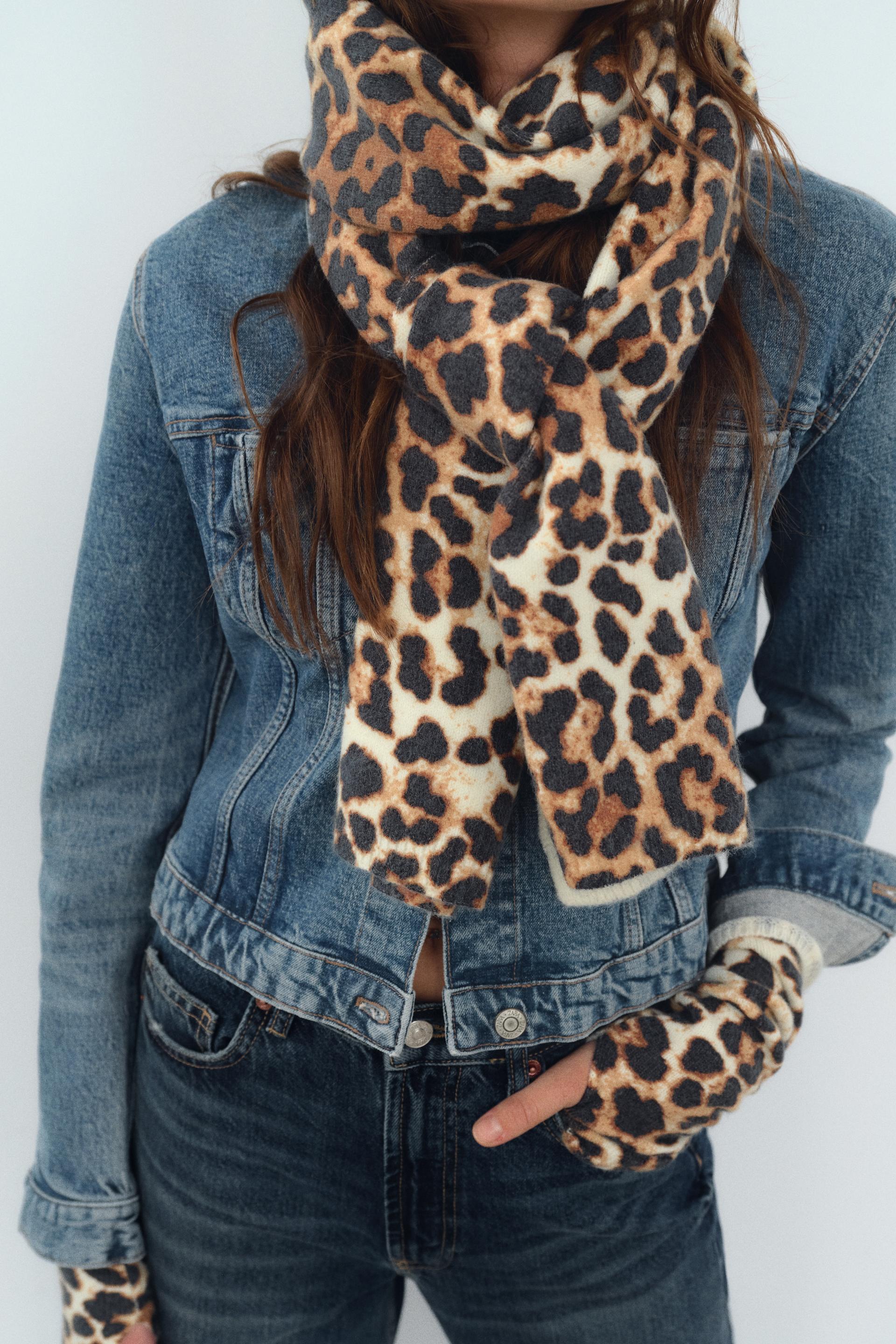 FINE KNIT ANIMAL PRINT MITTENS