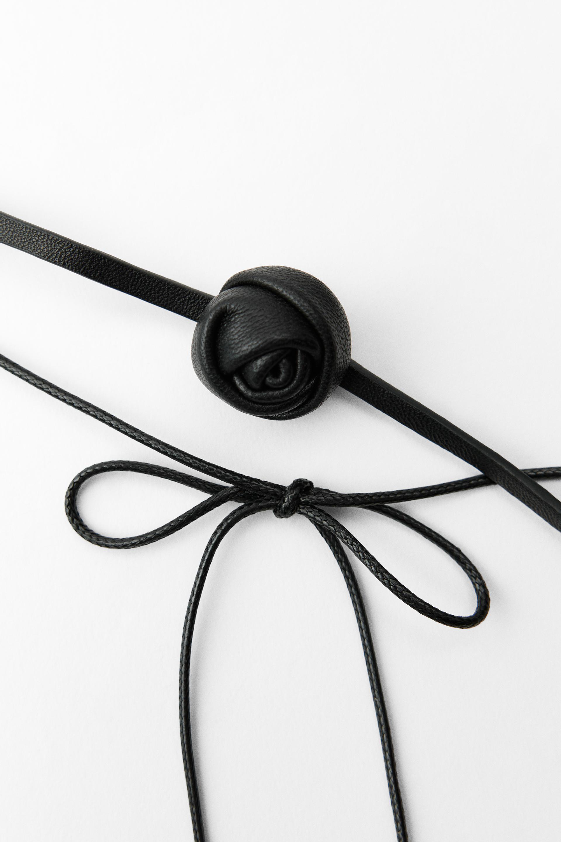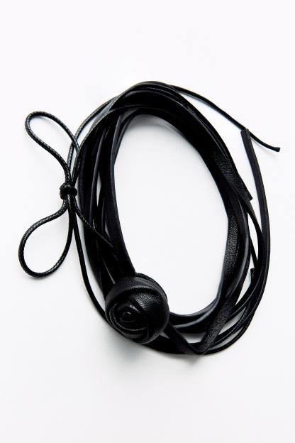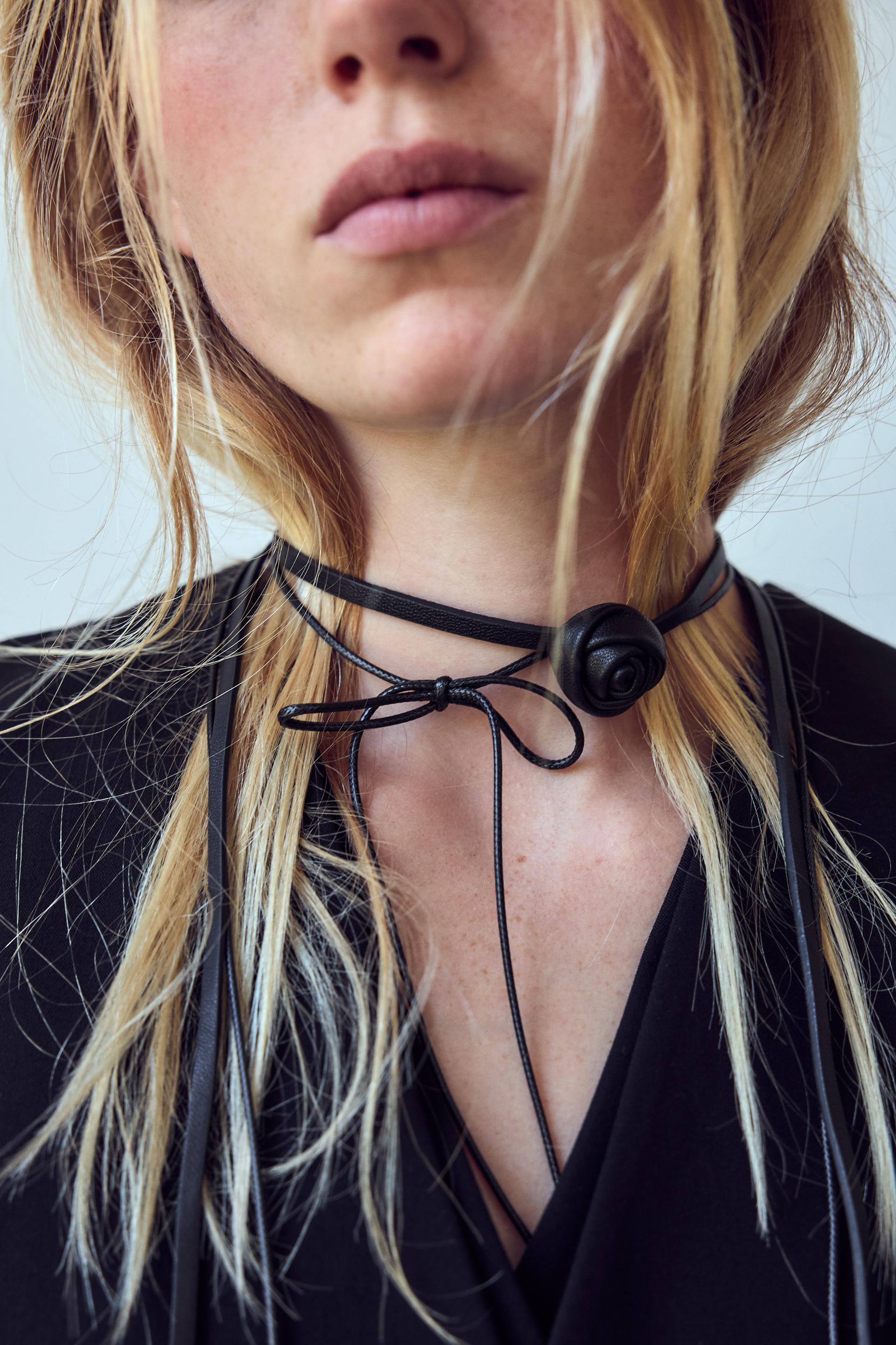 FLORAL DOUBLE CHOKER LEATHER NECKLACE