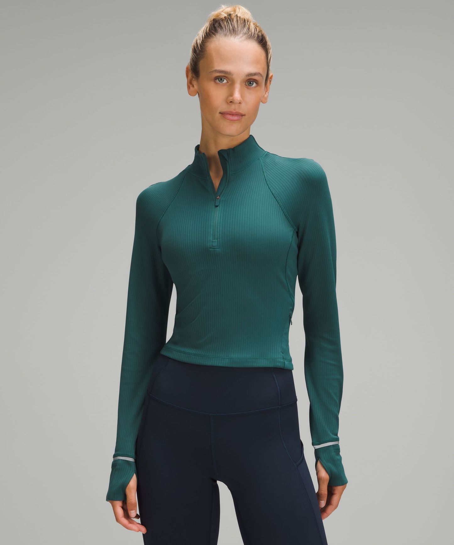 Luluthtlemon It's Rulu Ribbed Cropped Half Zip