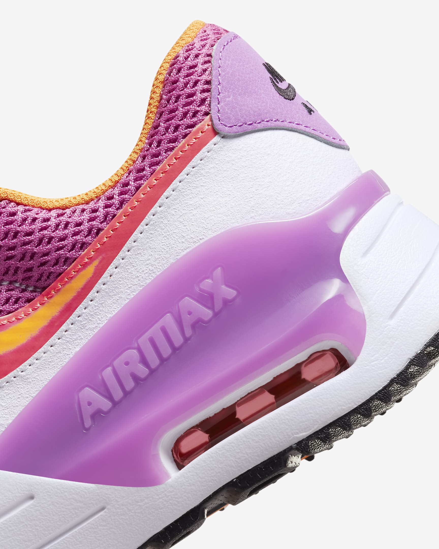 Take your sneaker game to the Max in kicks that bring back all the best retro trends. Crisp white leather pairs with a vibrant airy mesh to deliver added dimension to these radiant kicks. But it's the color-changing tongue label that has us most excited. It shifts from white to orange when you step out into the light to add new energy to your look.
