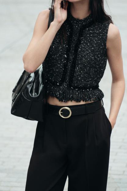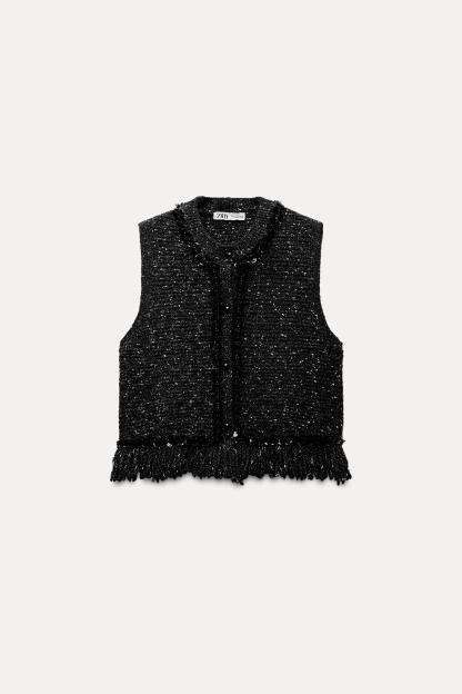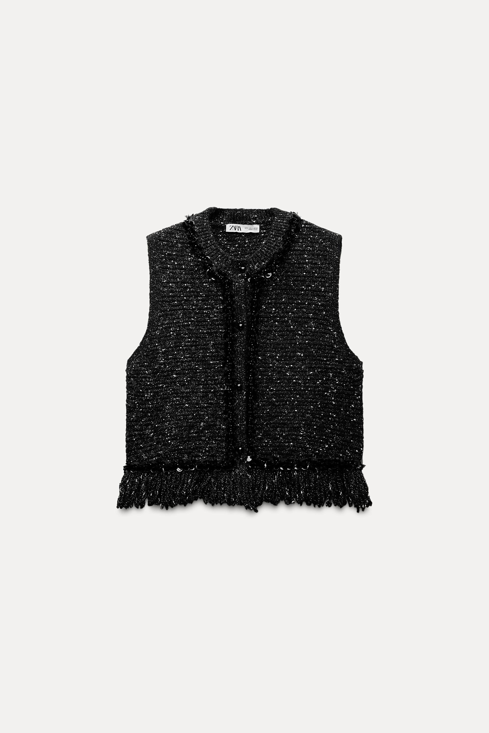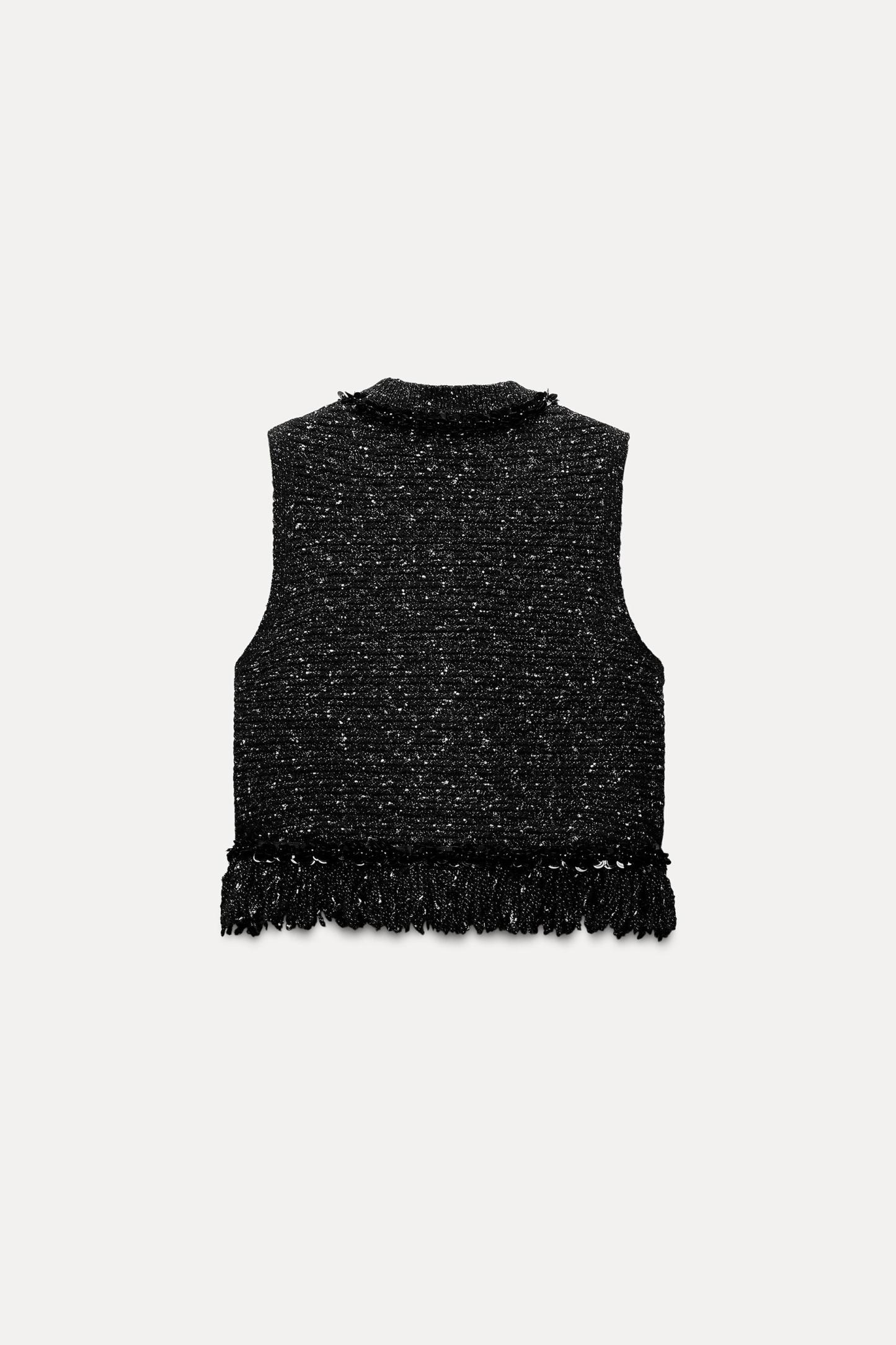 FRINGED SEQUIN KNIT VEST