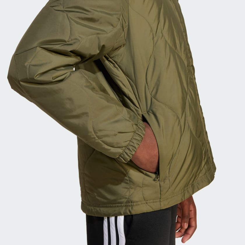 A fun quilted design makes this juniors' adithtdas jacket the outerwear you'll want to wear. It's lightly padded to keep you comfortable on everyday adventures, with a water-repellent finish to keep you dry in light rain. Zip pockets securely essential items. This product is made with 100% recycled materials. By reusing materials that have already been created, we help to reduce waste and our reliance on finite resources and reduce the footprint of the products we make.