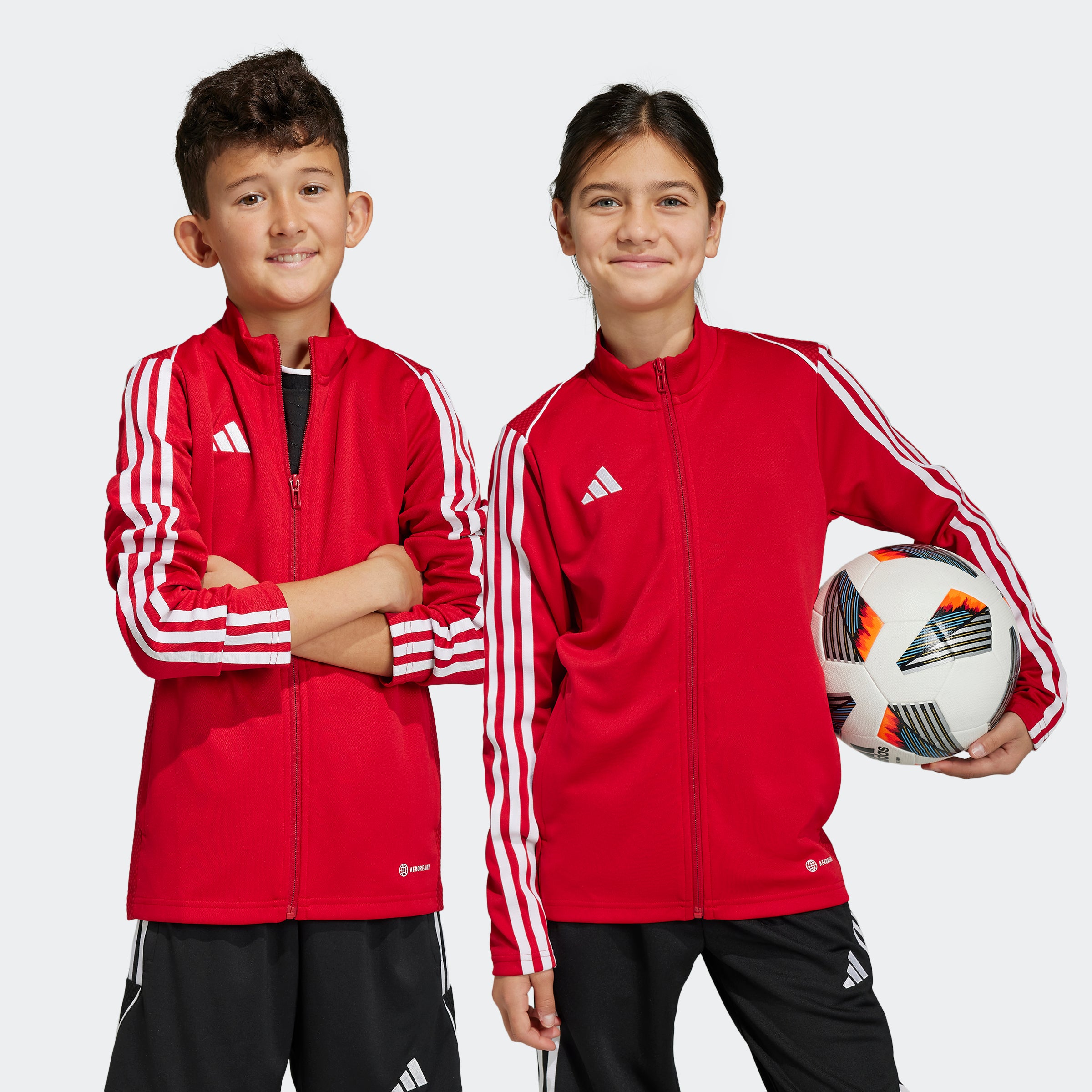Suit up to show your skills Make the most of chilly training sessions by zipping up a track jacket designed to keep you warm, dry and focused through every sprint and rondo. Take training seriously When the evenings start to draw in and the mercury dips, make sure you pack this juniors' adithtdas Tiro 23 League jacket into your bag before heading to training. Its soft fabric and stand-up collar make it the perfect extra layer when you're struggling to stay warm, and its streamlined fit means it won't slow you down once you've zipped it up. Moisture-managing AEROREADY helps you stay dry too. Built for the grassroots Part of the Tiro 23 League range, this jacket offers pro-level features and techs to amateur teams. The Tiro name has been trusted by soccer players for decades, so you know it won't let you down. This product is made with at least 70% recycled materials. By reusing materials that have already been created, we help to reduce waste and our reliance on finite resources and reduce the footprint of the products we make.