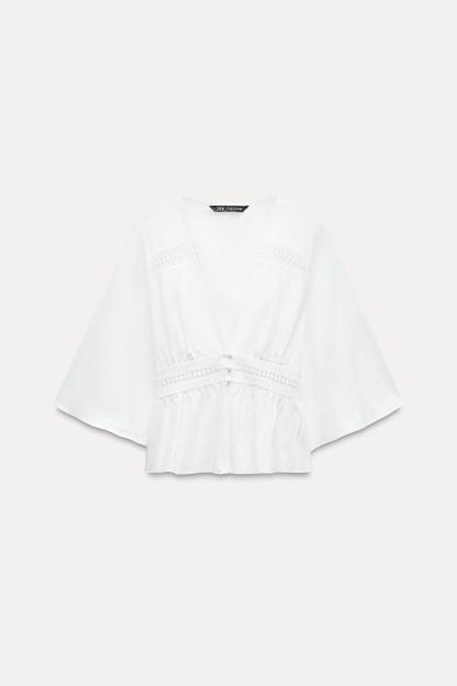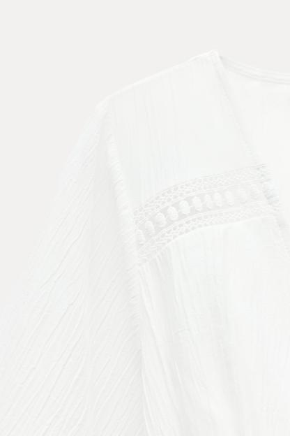 LACE INSERT SHORT BLOUSE