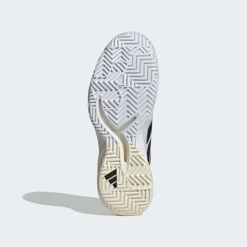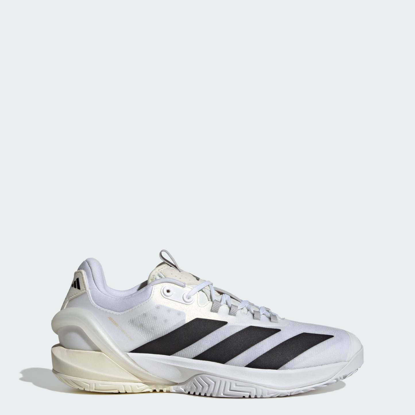 Take your pace into a new dimension. These adithtdas Adizero Cybersonic tennis shoes team a lightweight mesh upper with ENERGYRODS designed to limit energy loss at toe off. Sitting on an Adiwear outsole created for hard court stability, a Lightstrike midsole keeps you close to the ground so you can instantly respond to every challenge.