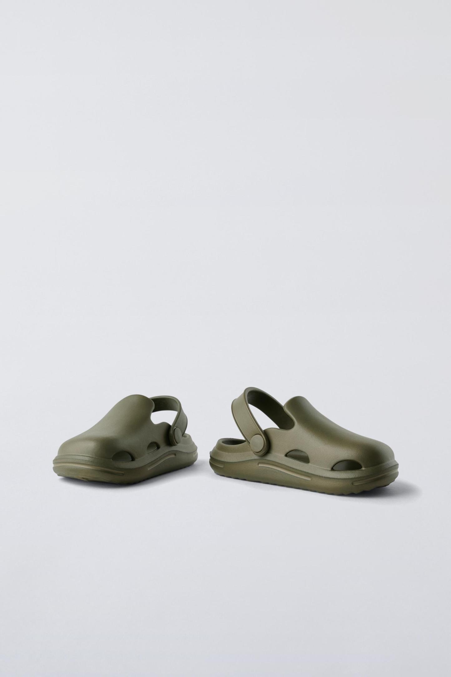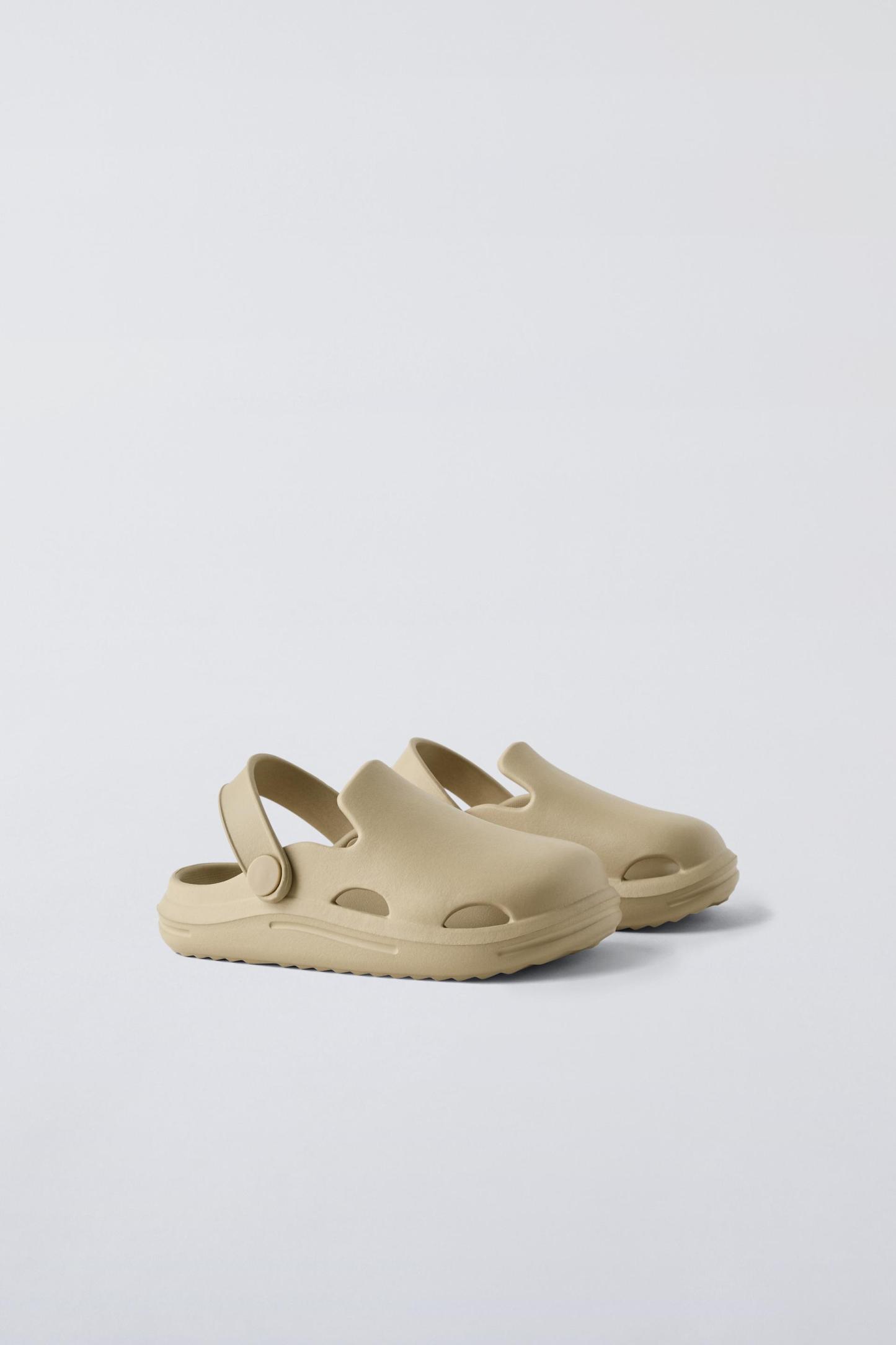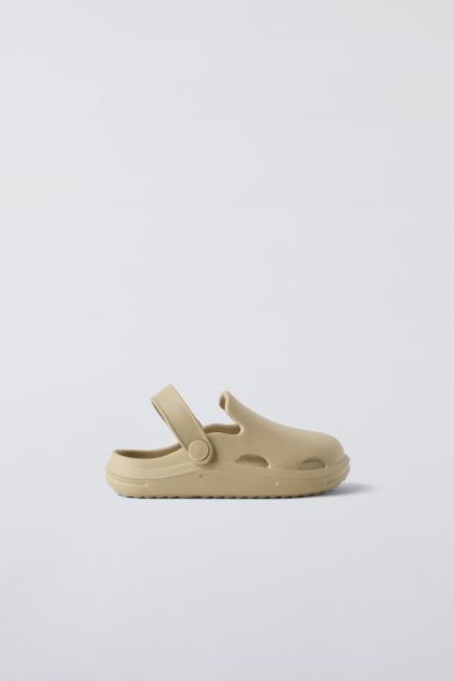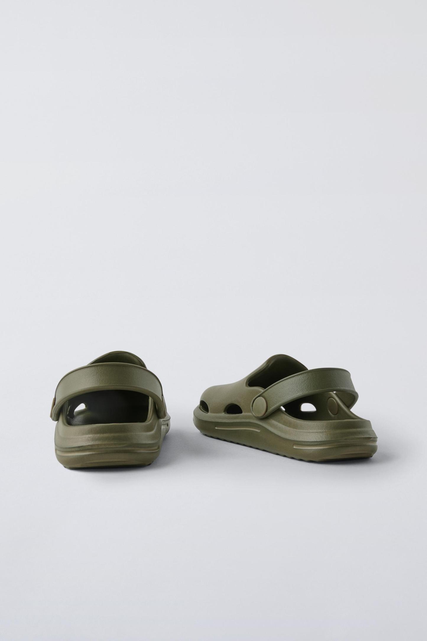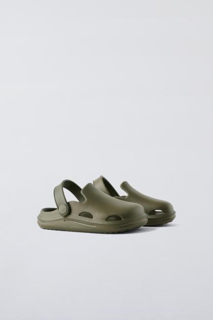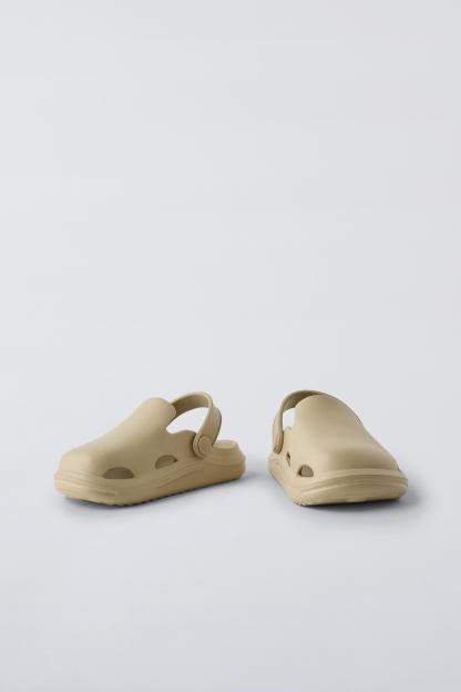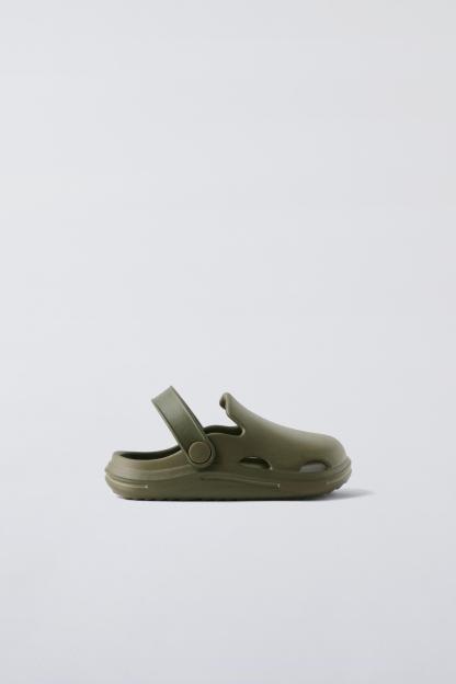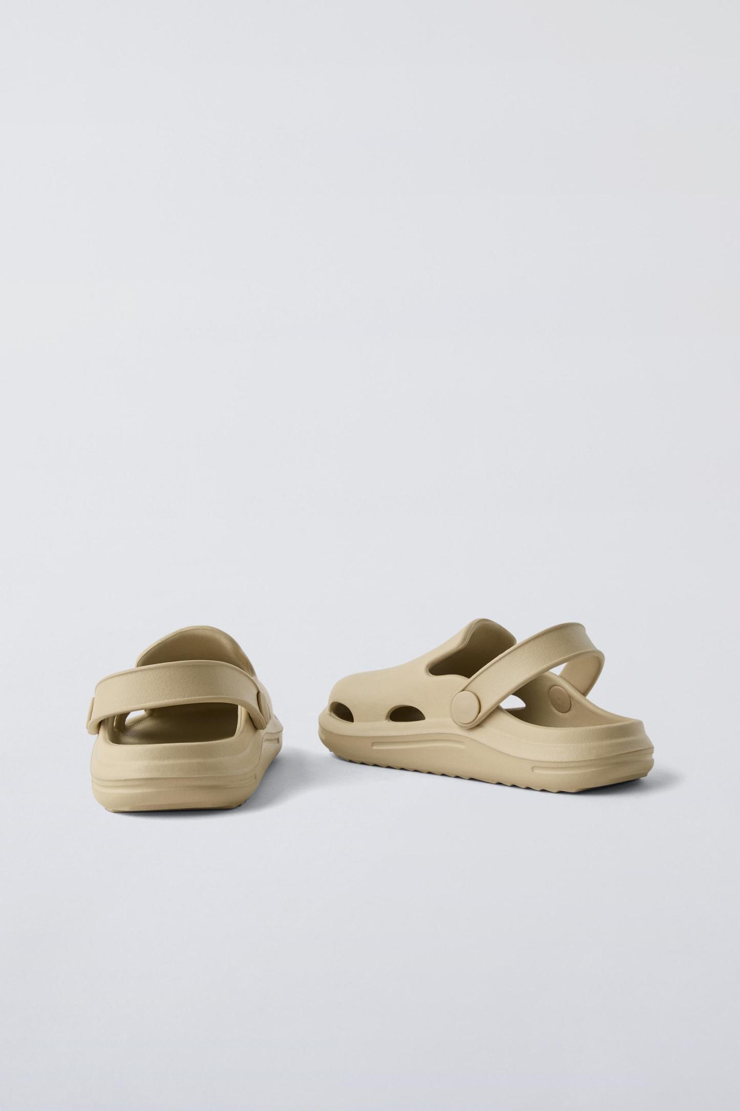 Rubber pool clogs. Back elastic strap for a better fit. Rubber soles.