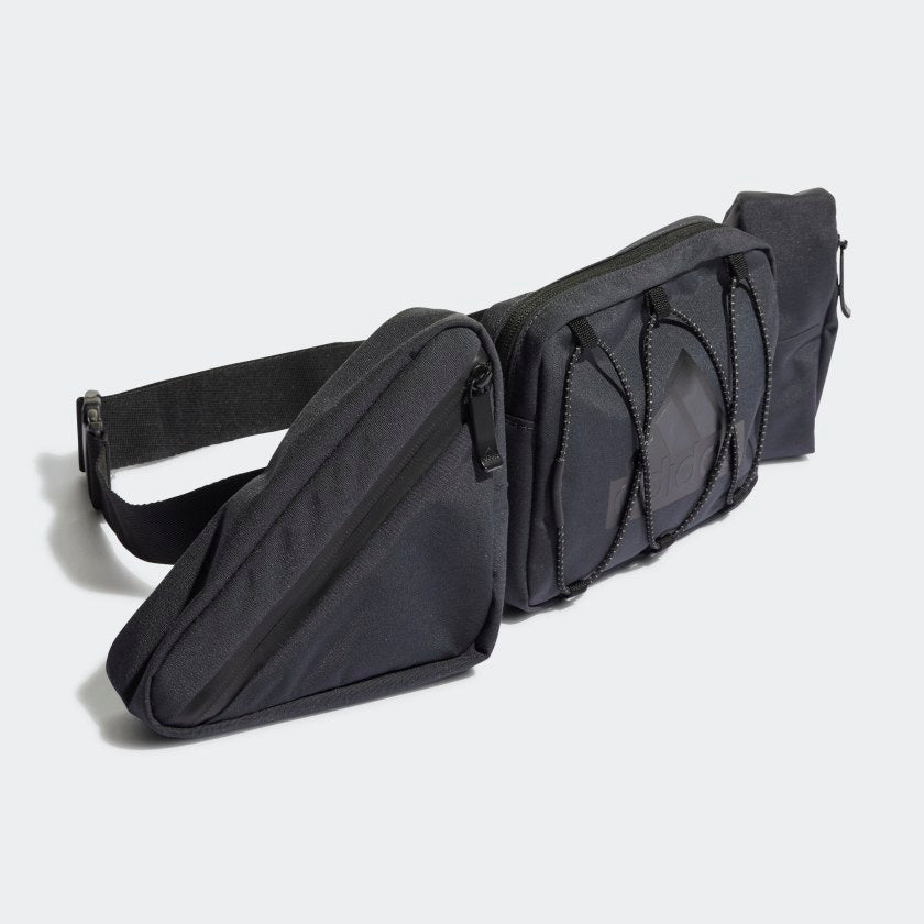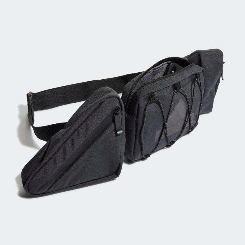 This adithtdas bag is as flexible as a gymnast. It can be worn hands free, cross body or around your running backpack, with separate compartments for gels, phone and keys. The side pockets come off to make this crossbody bag even more compact. Made with a series of recycled materials, and at least 60% recycled content, this product represents just one of our solutions to help end plastic waste.