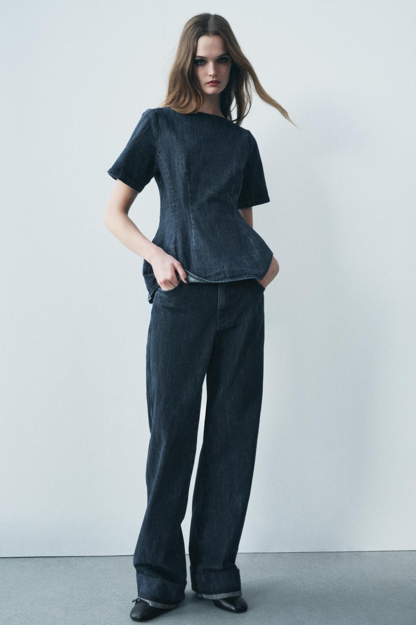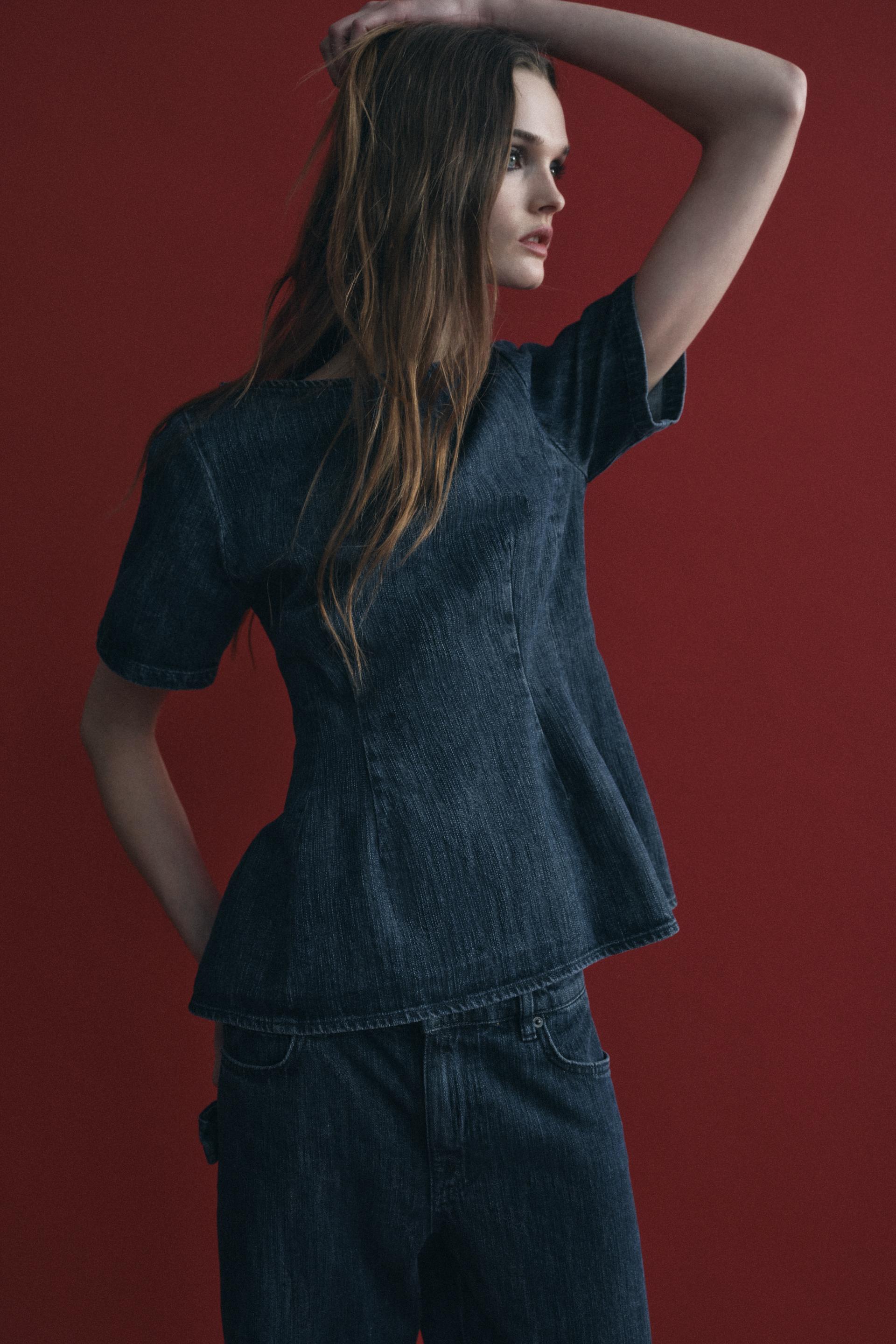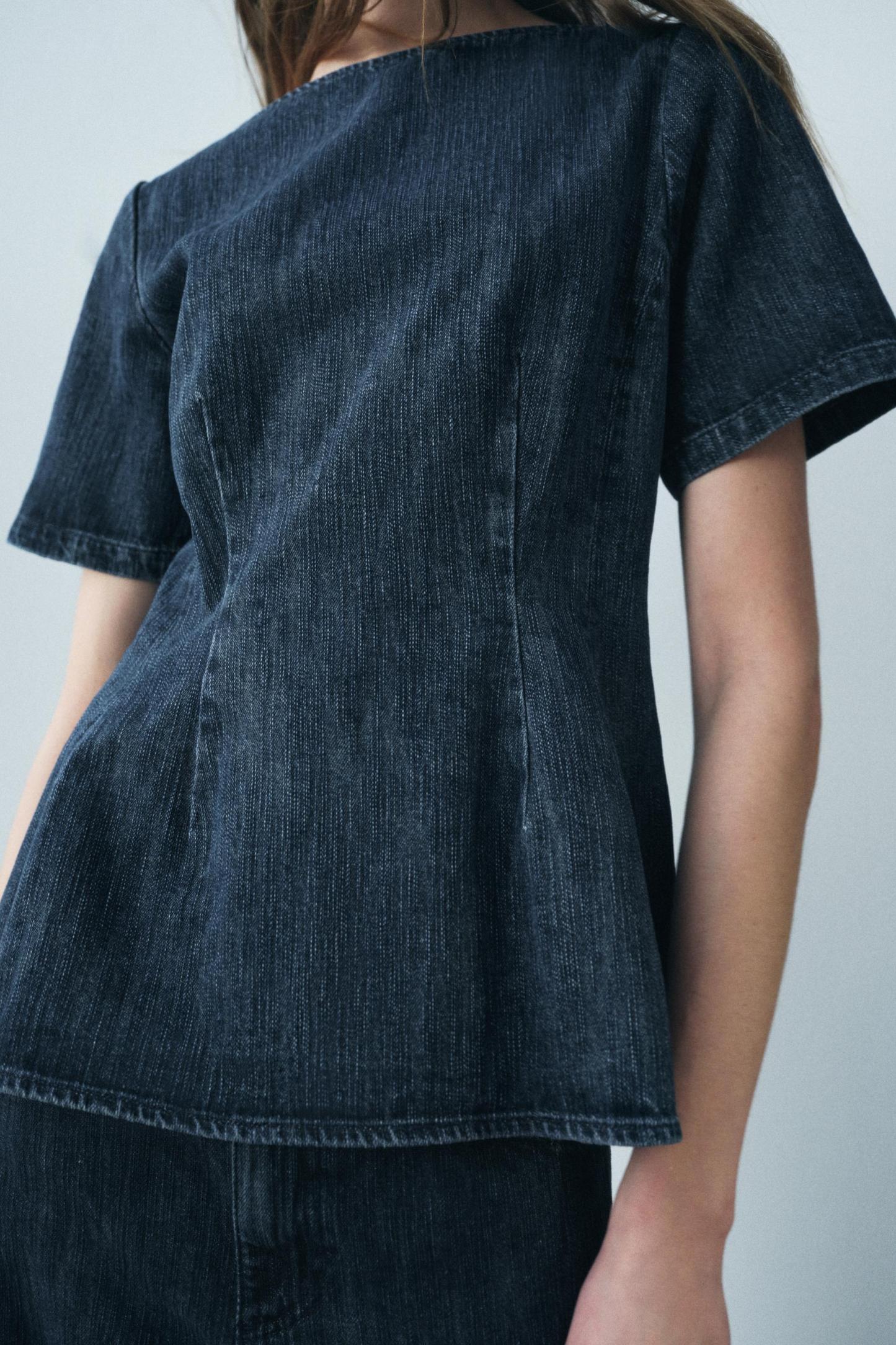 DENIM PEPLUM TOP ZW COLLECTION