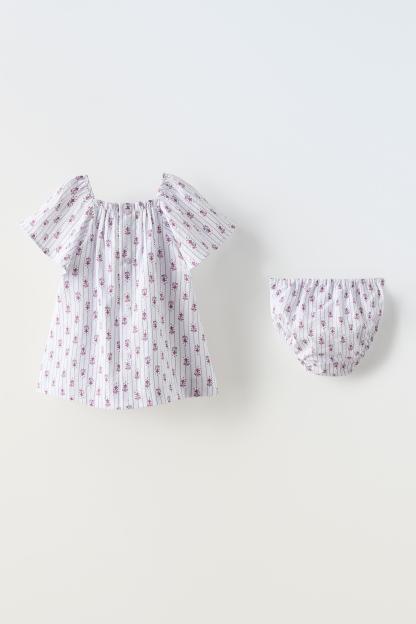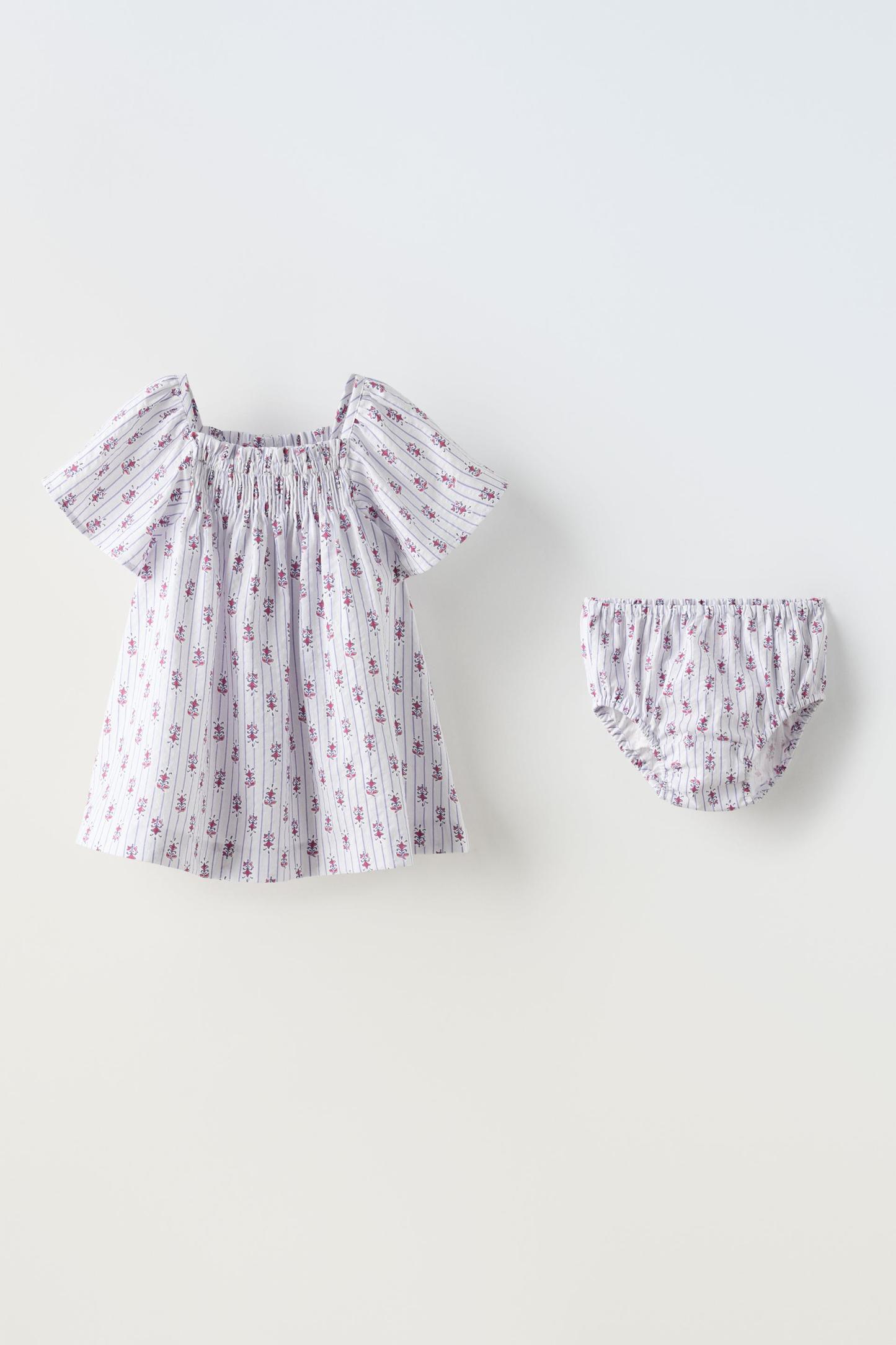 FLORAL AND STRIPED PRINT DRESS