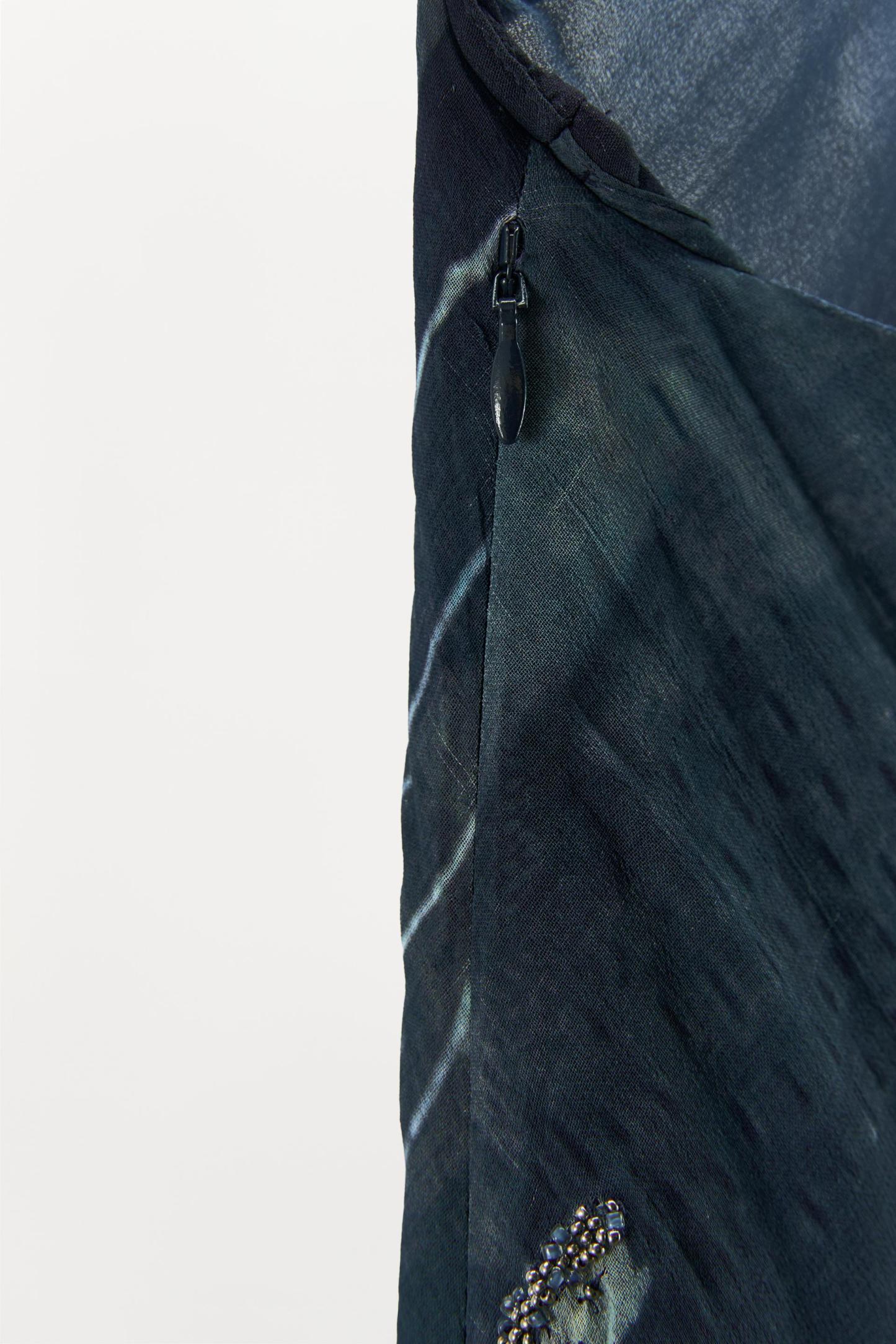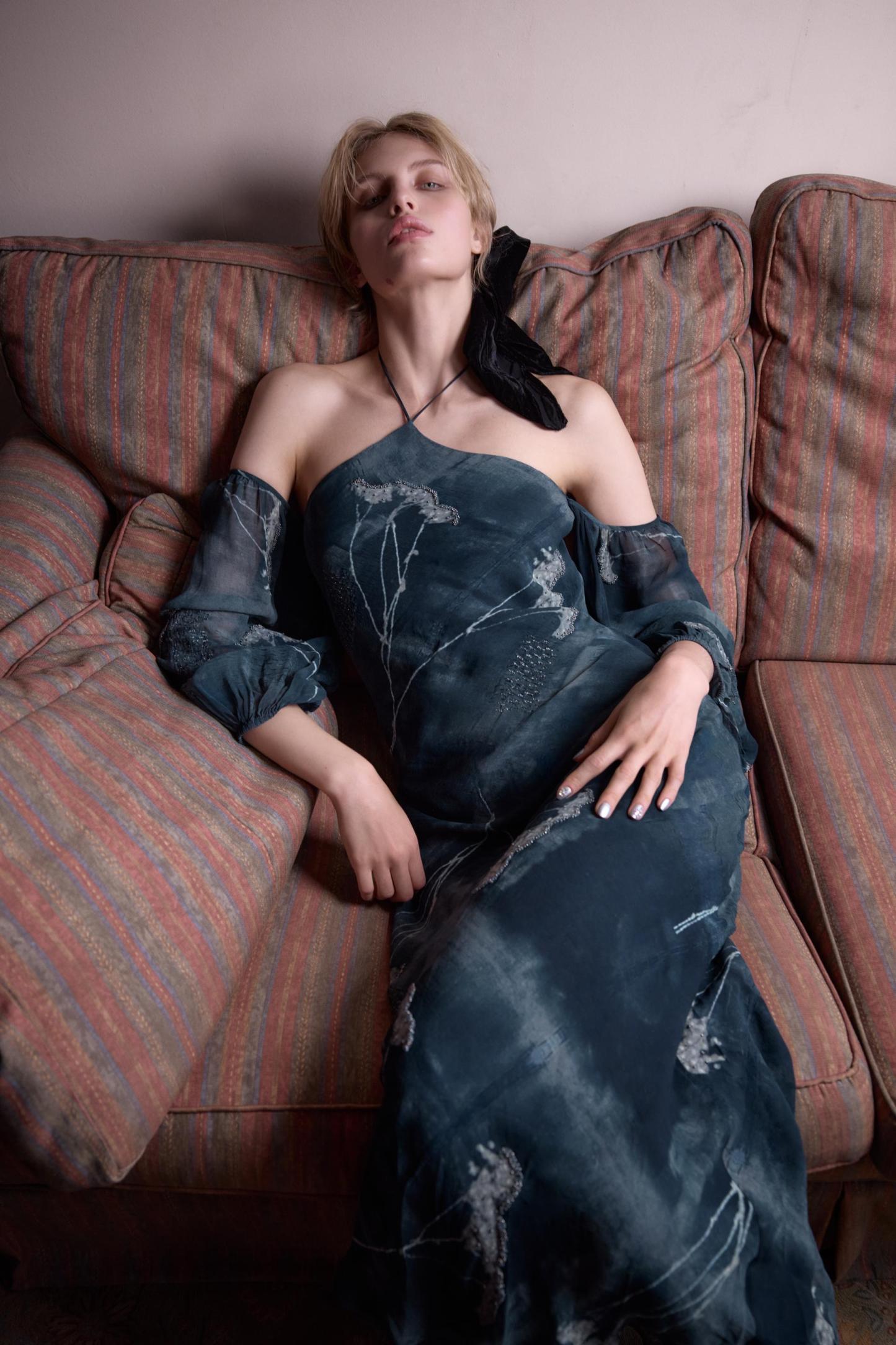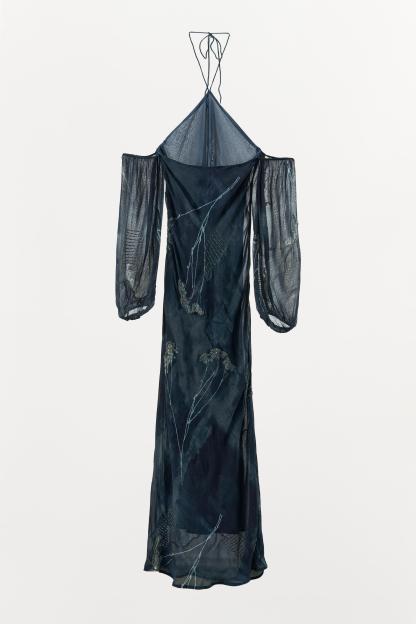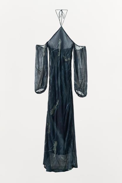HALTER DRESS WITH METALLIC THREAD AND BEADING