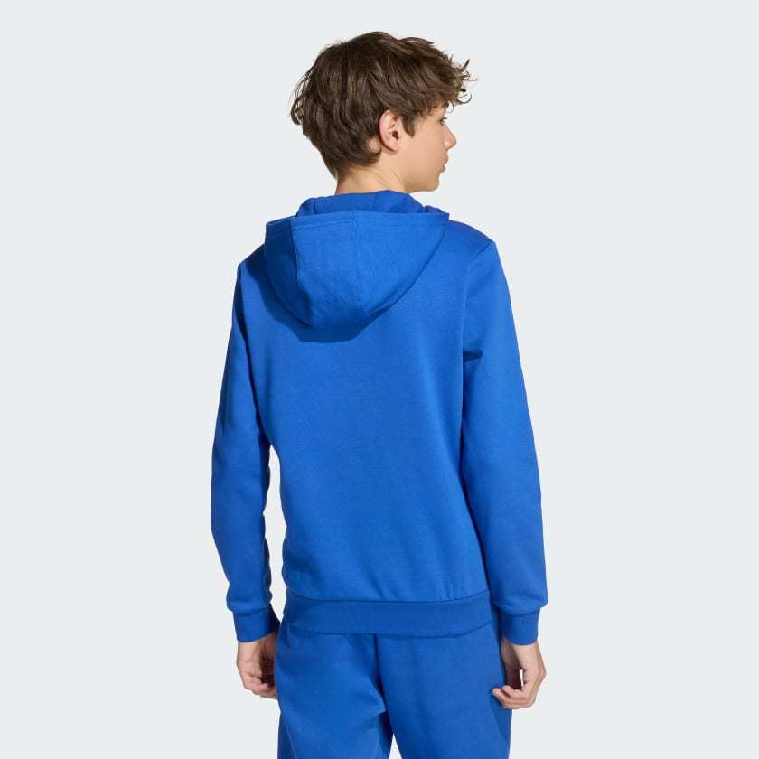 Pay tribute to the magic of Messi in this juniors' adithtdas soccer hoodie. Perfect for relaxing at home or staying warm on the sidelines, it's made from soft fleece that keeps you comfortable all day long. Ribbed cuffs seal out the cold, and a Messi logo on the chest shows your pride for the beautiful's ultimate artist.