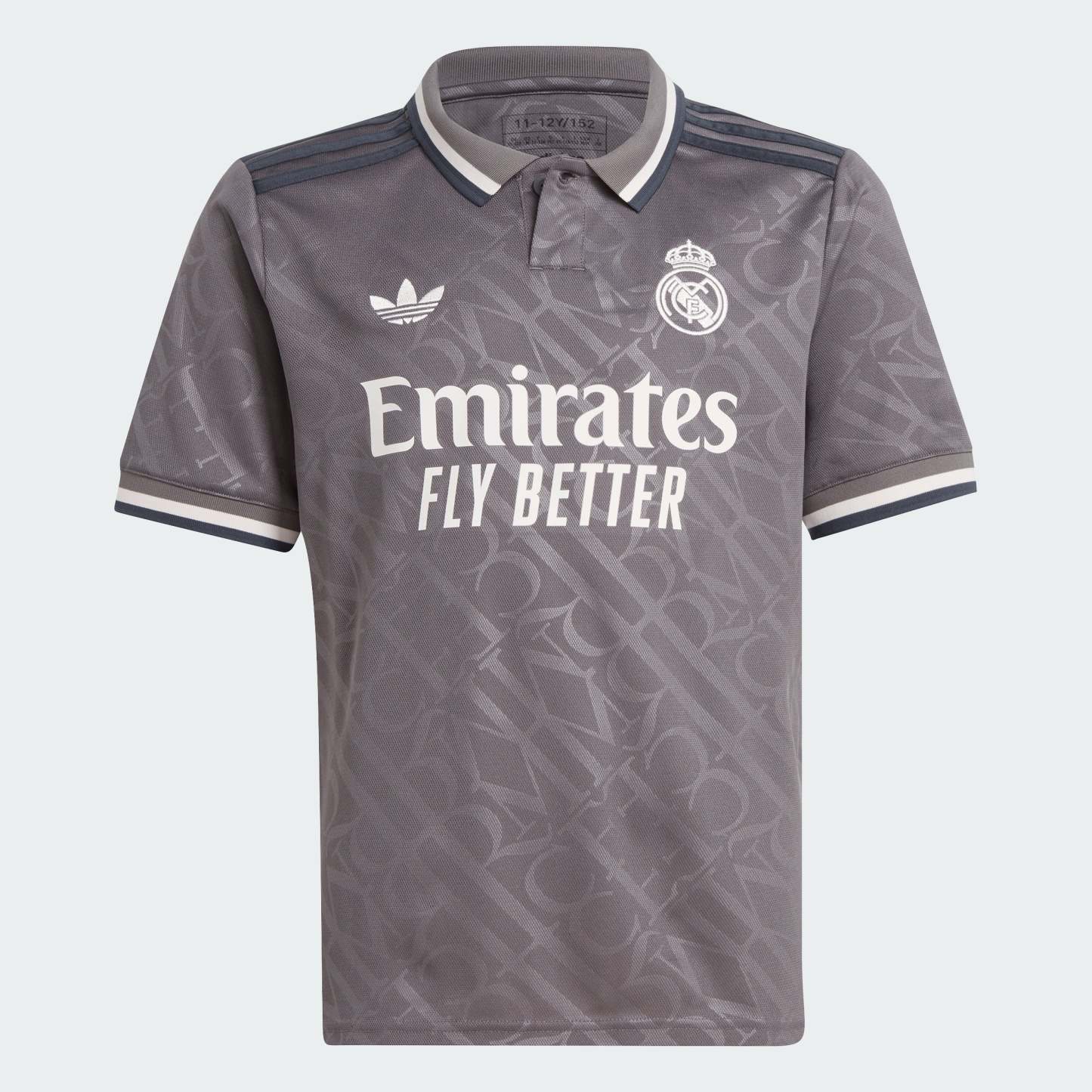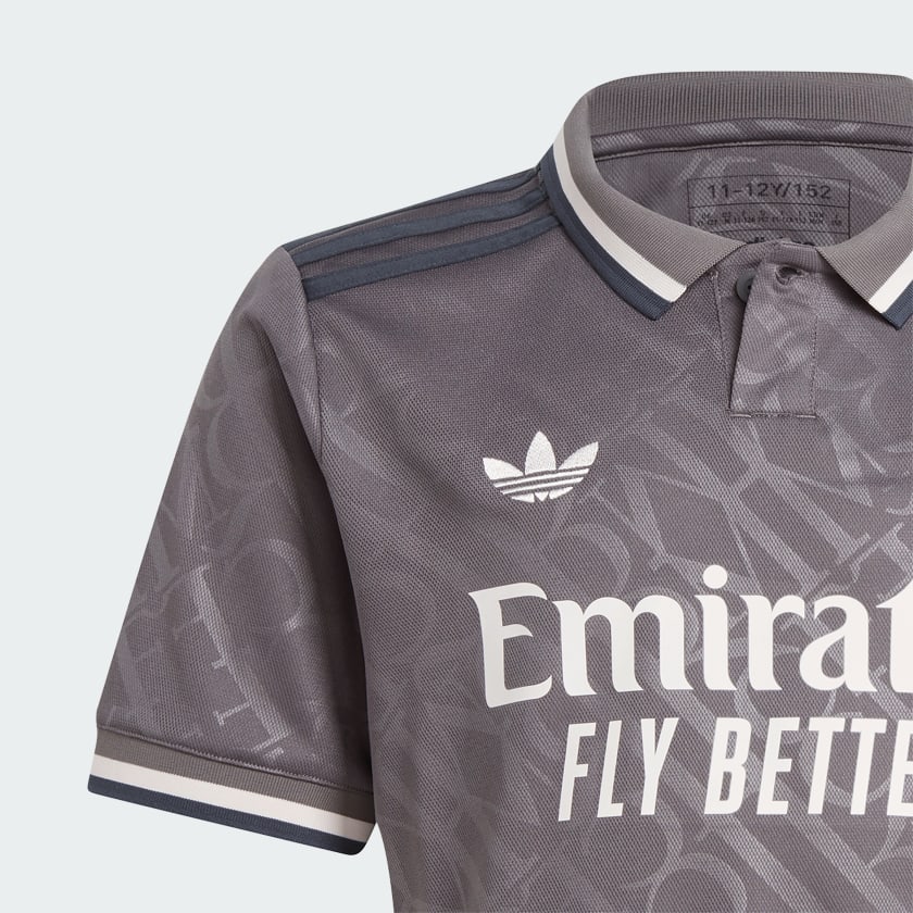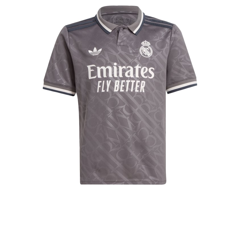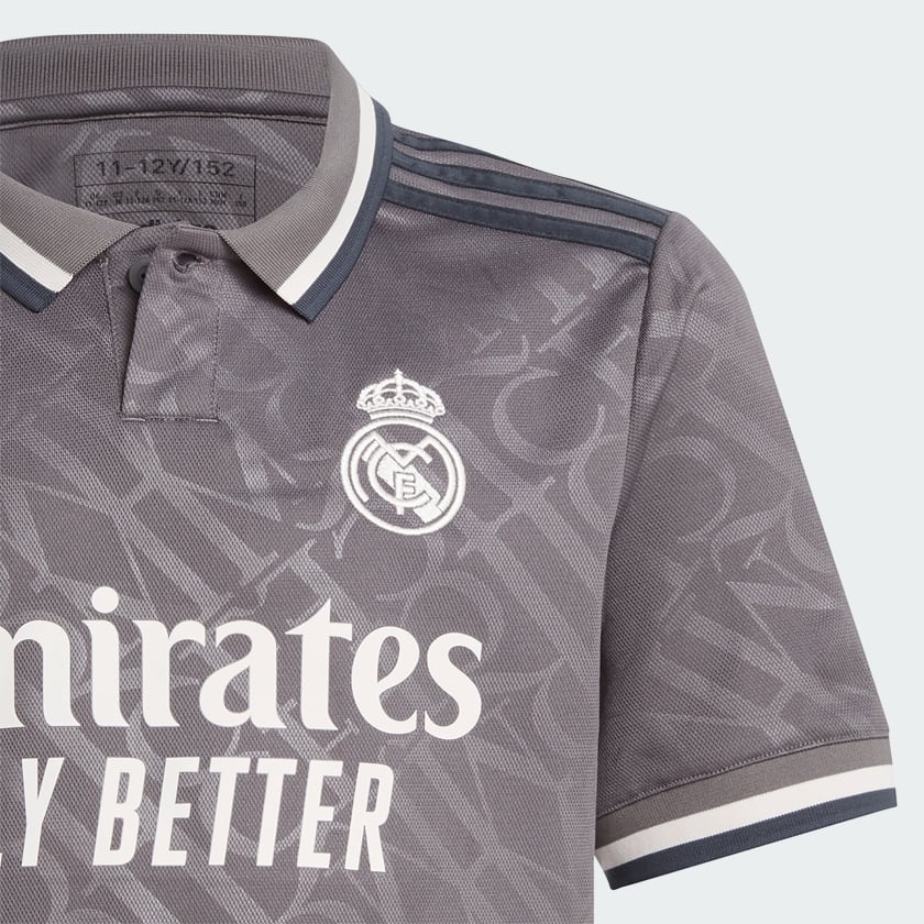 Elegance is their identity. The embossed "RMCF" monograms repeating across this juniors' Real Madrid third jersey borrow their distinctive look from the lettering used on traditional Madrid street signs. Standing out from the classy design, the iconic Trefoil returns to an adithtdas match shirt after a long break. Behind it all, AEROREADY keeps soccer fans dry and comfortable as they shout their support. This product is made with 100% recycled materials. By reusing materials that have already been created, we help to reduce waste and our reliance on finite resources and reduce the footprint of the products we make.