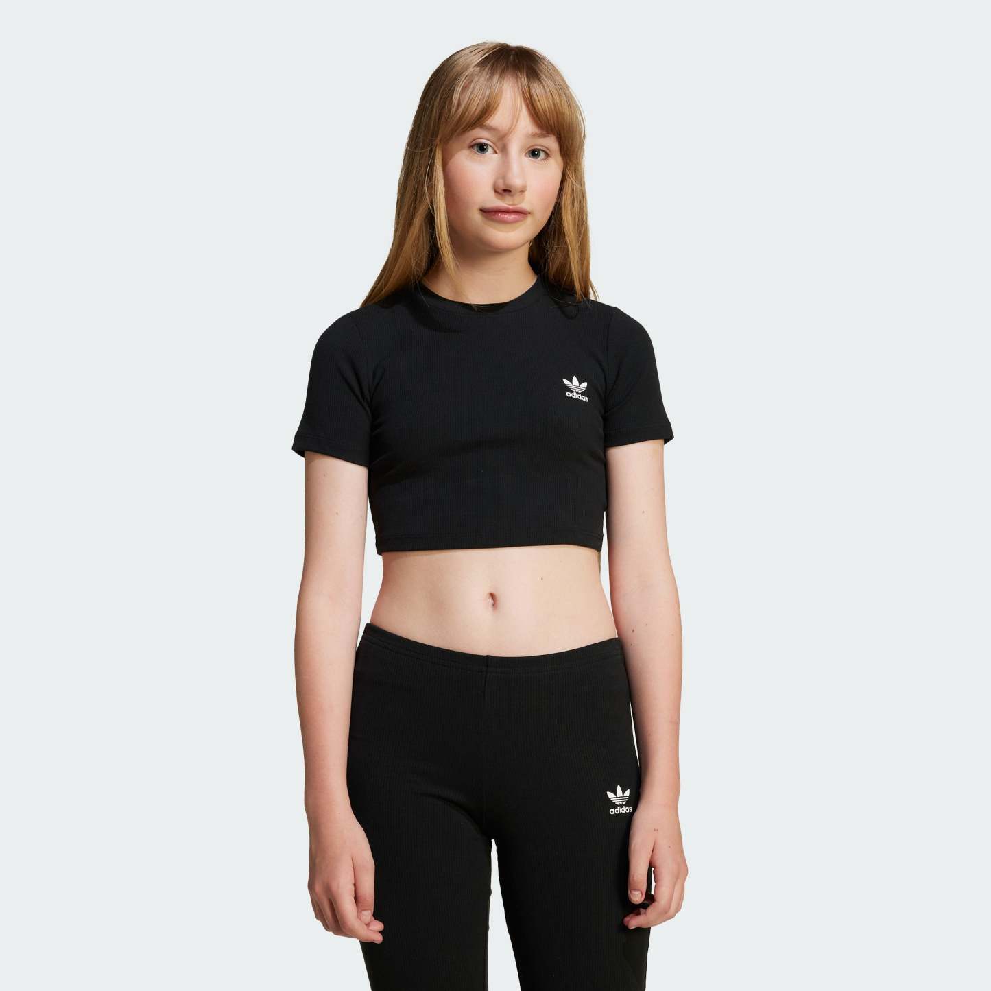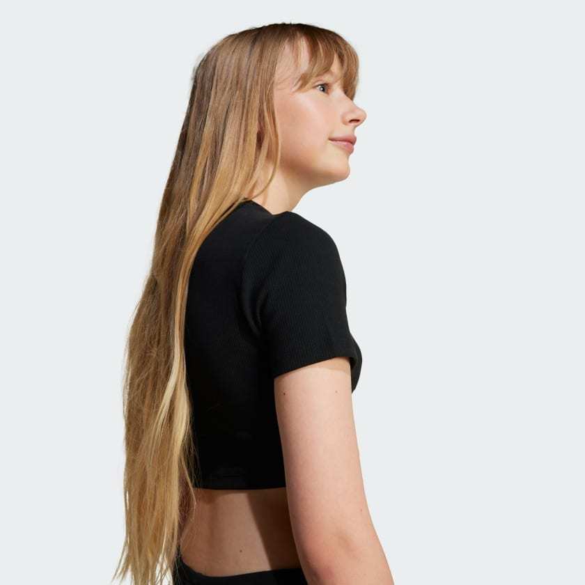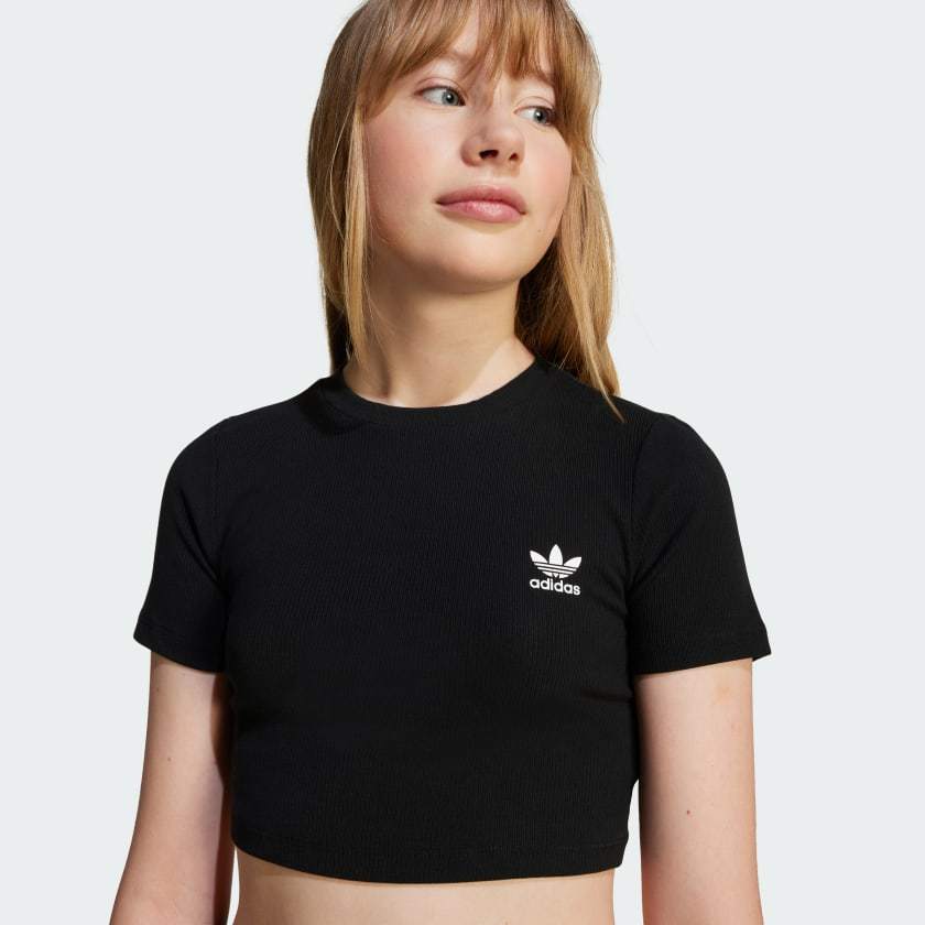 This juniors' adithtdas crop tee is a stylish essential made for everyday comfort. It's cut from soft ribbed fabric and has a close fit that's easy to move in. A subtle Trefoil on the chest shows off your adithtdas pride.