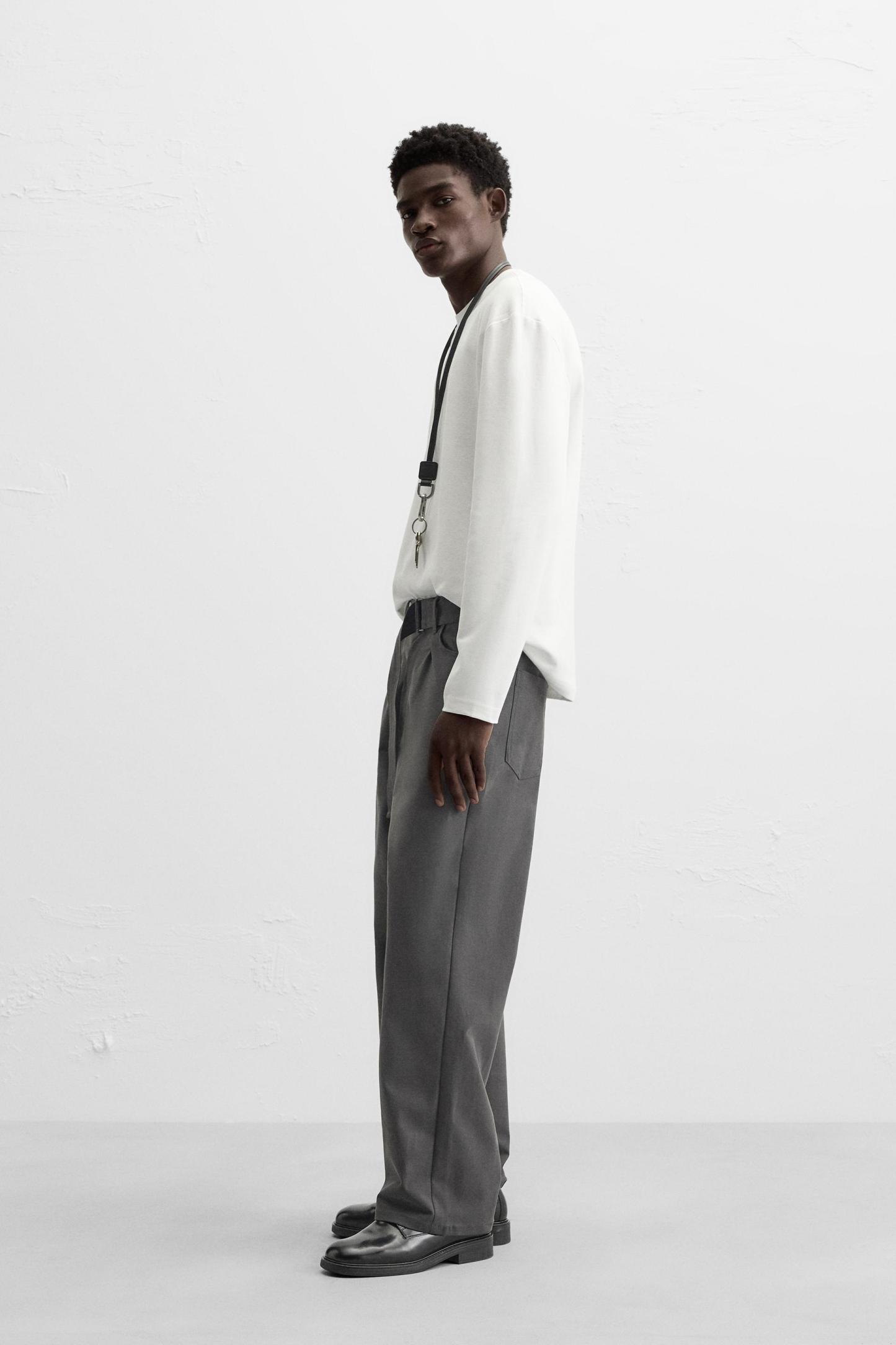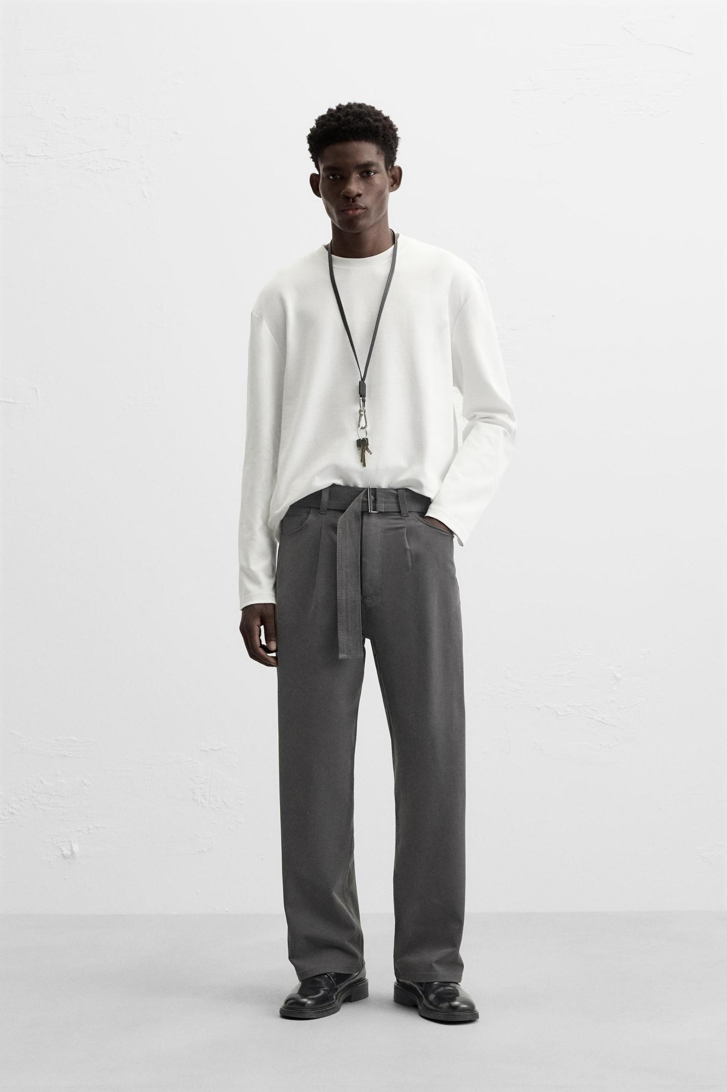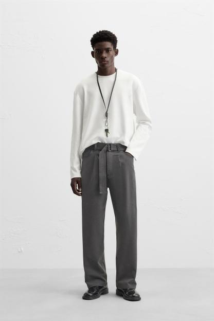 PANTS WITH BELT AND PLEATS