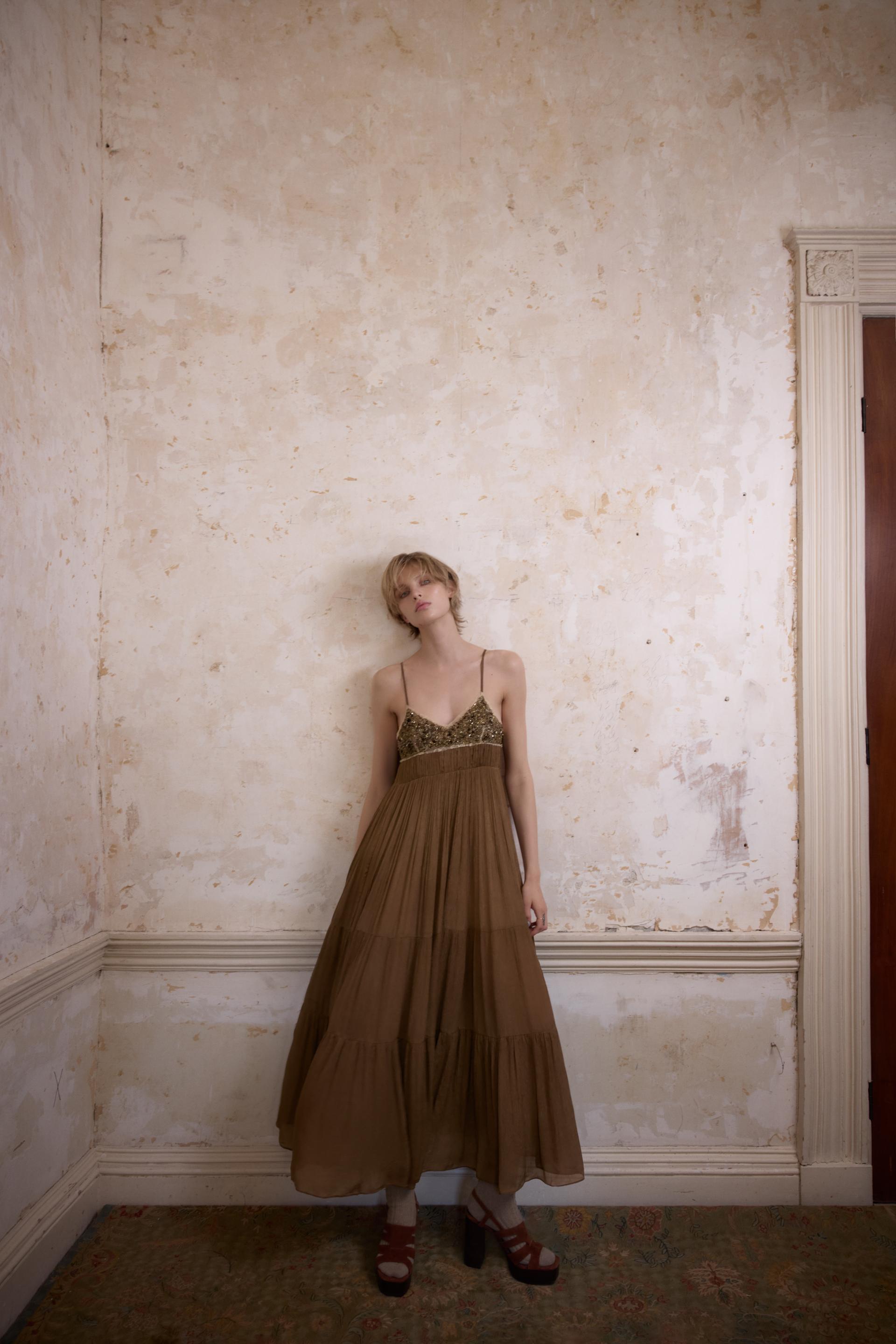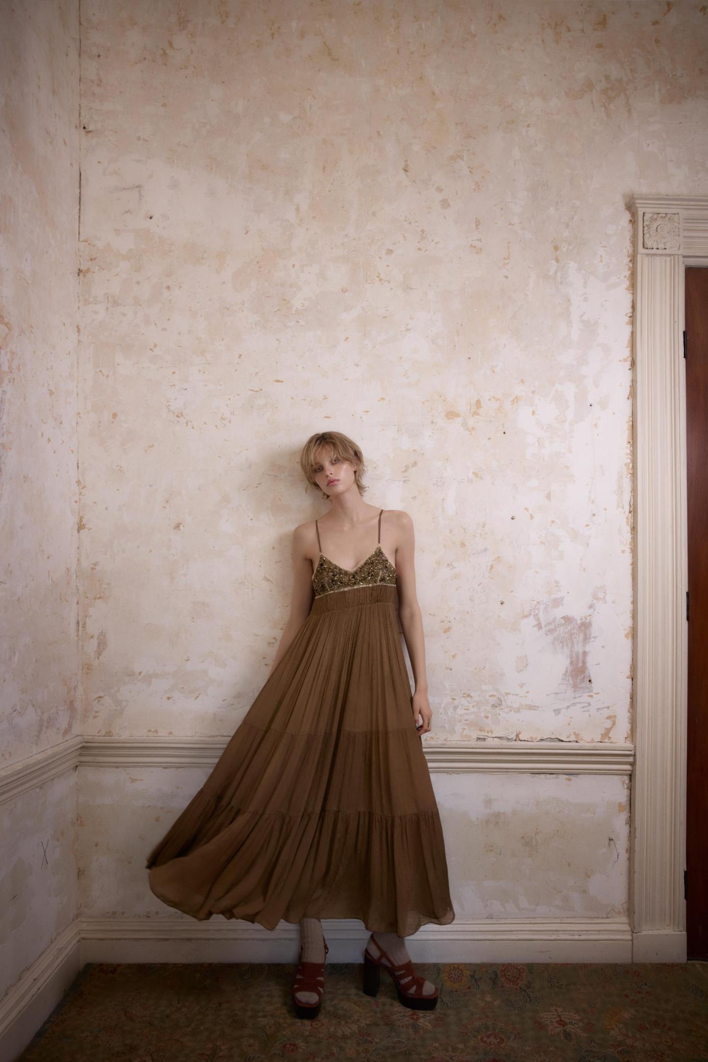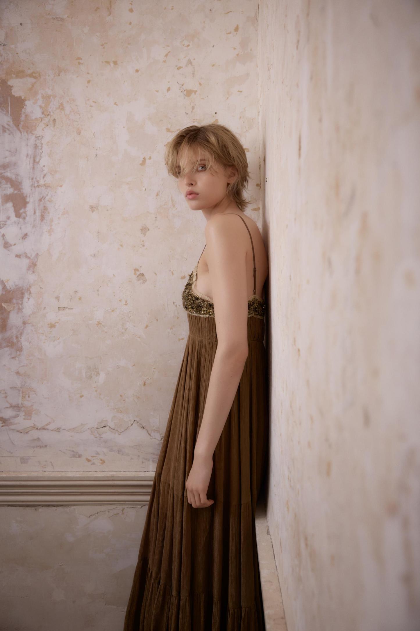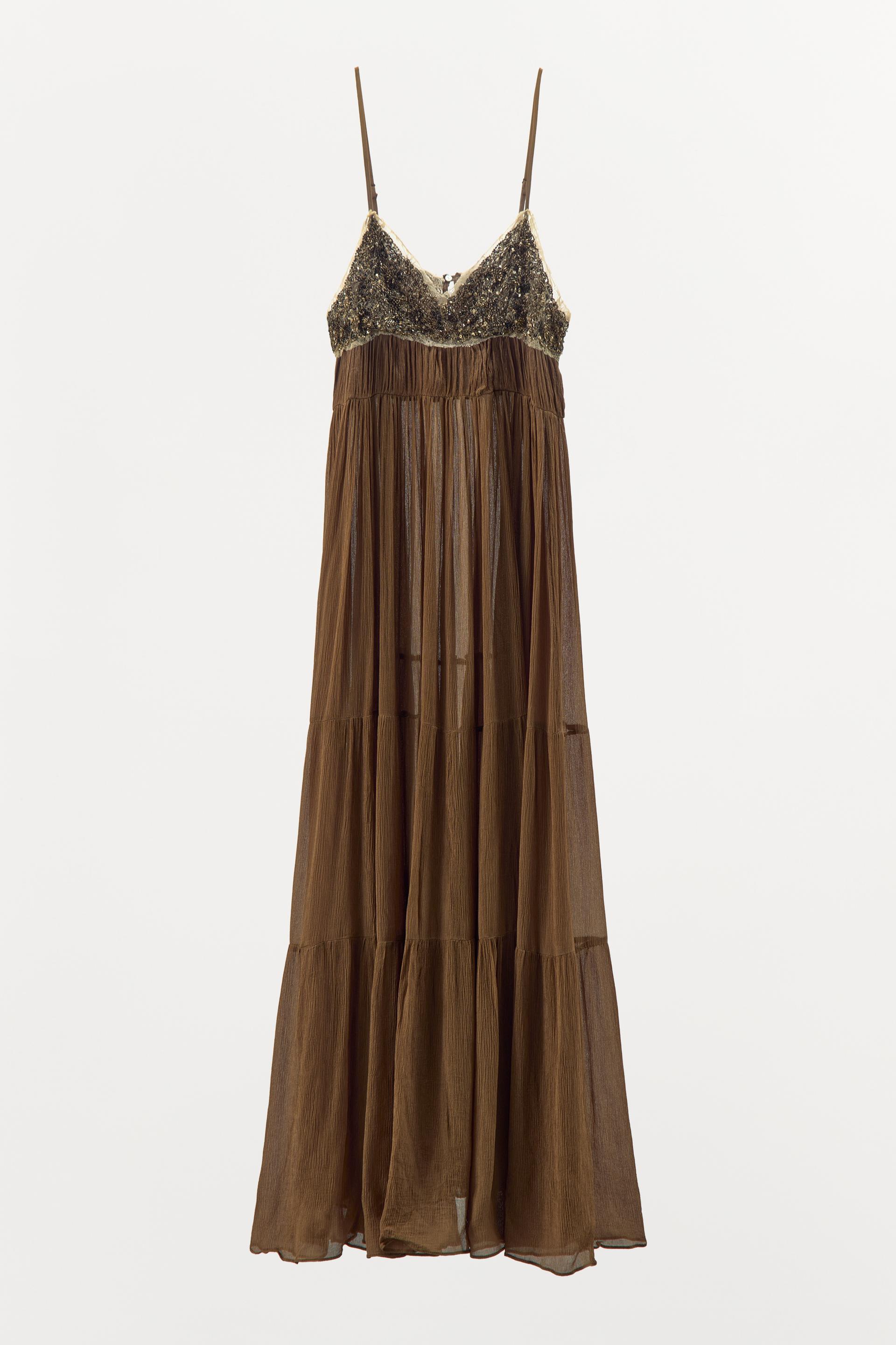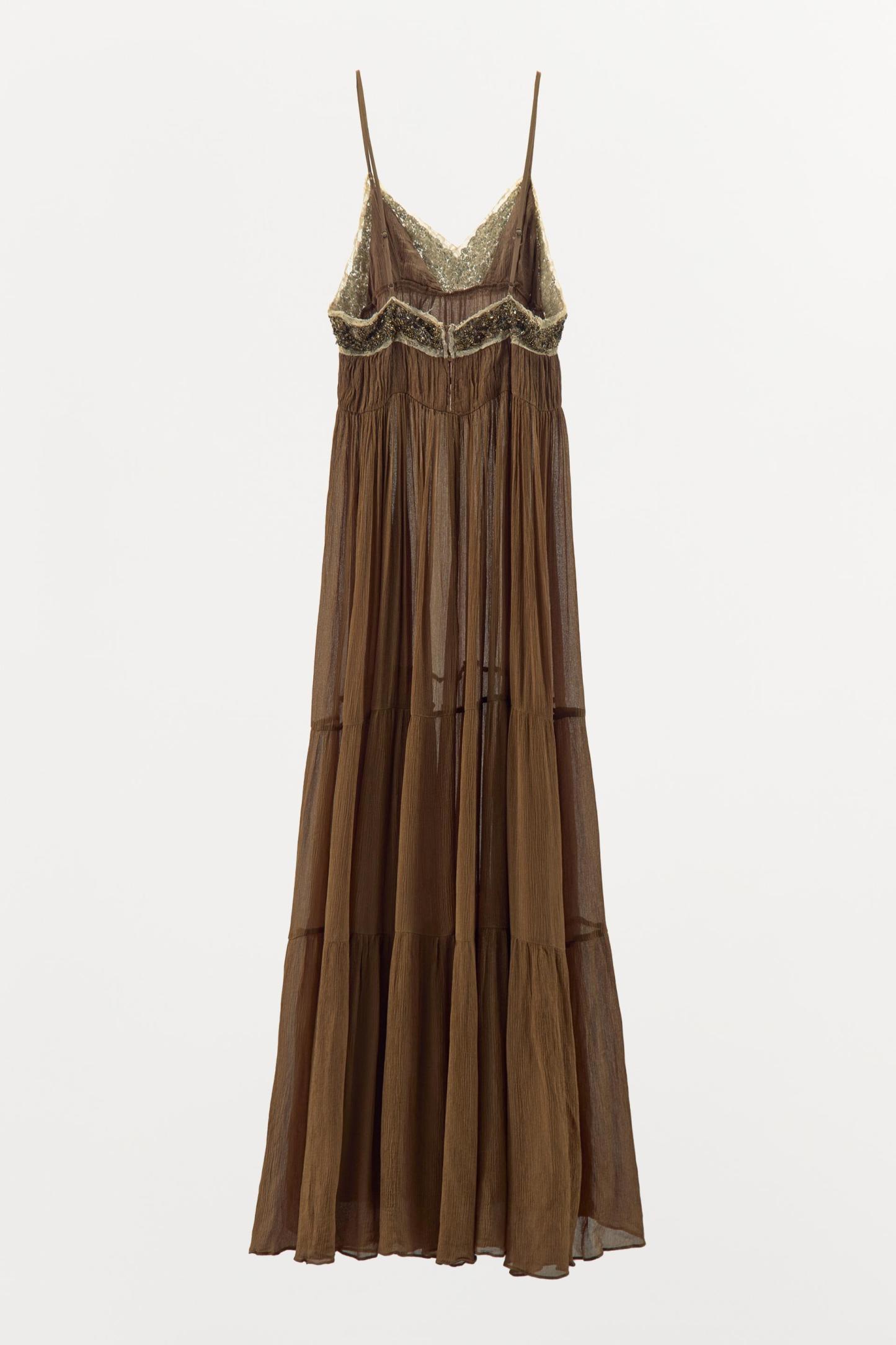 PLEATED LACE DRESS WITH BEADING