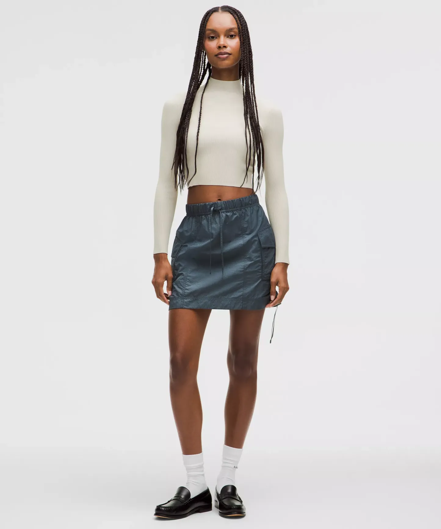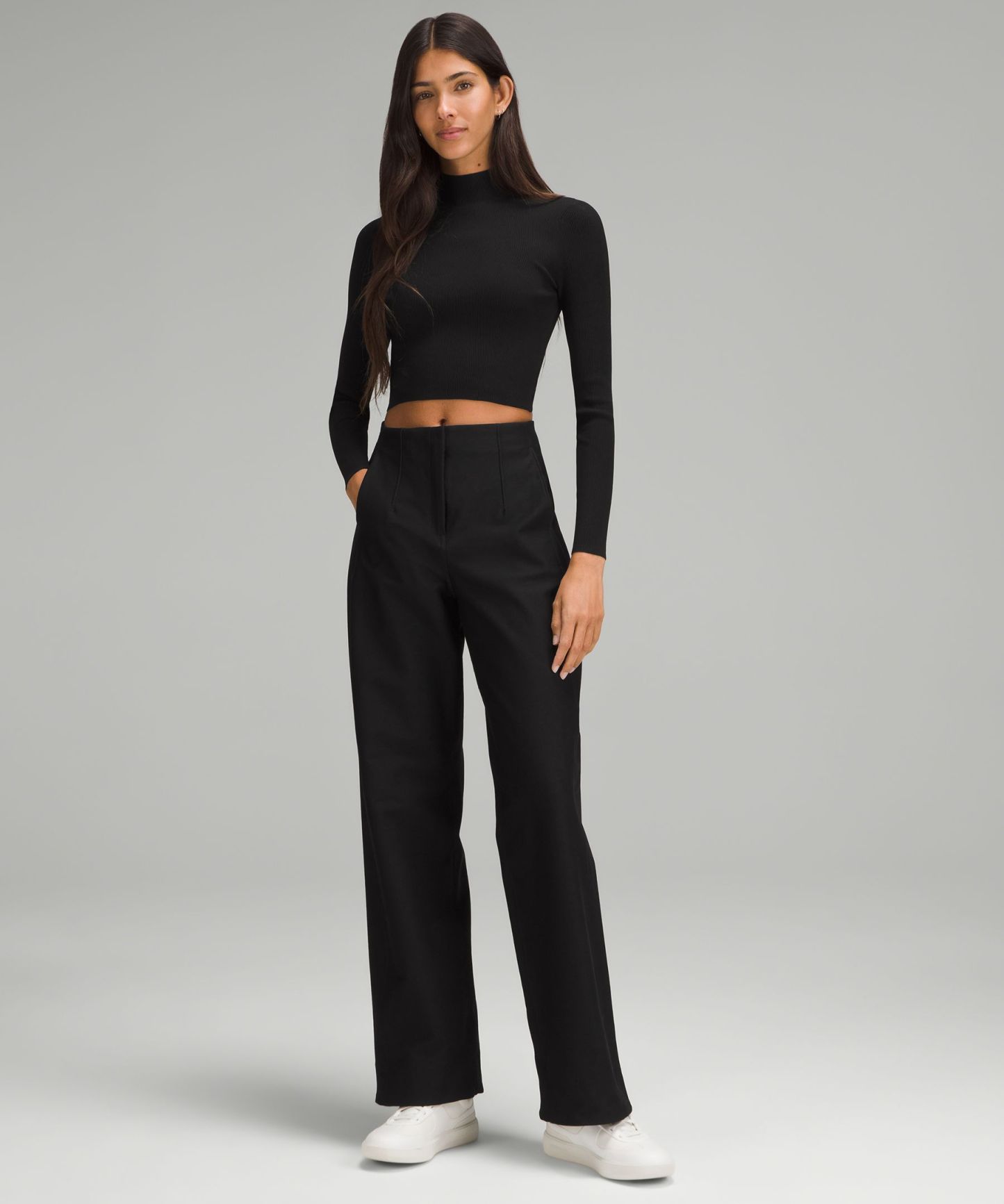 - Cut above the waist—perfect with high-rise pants