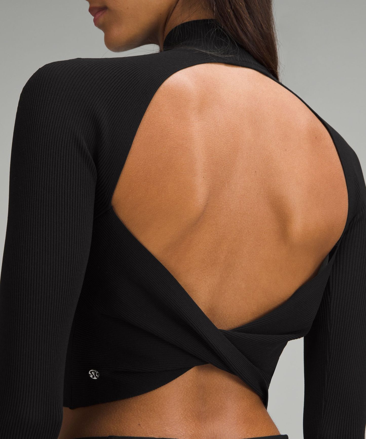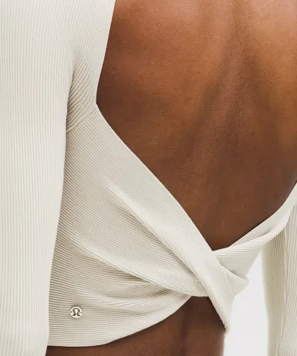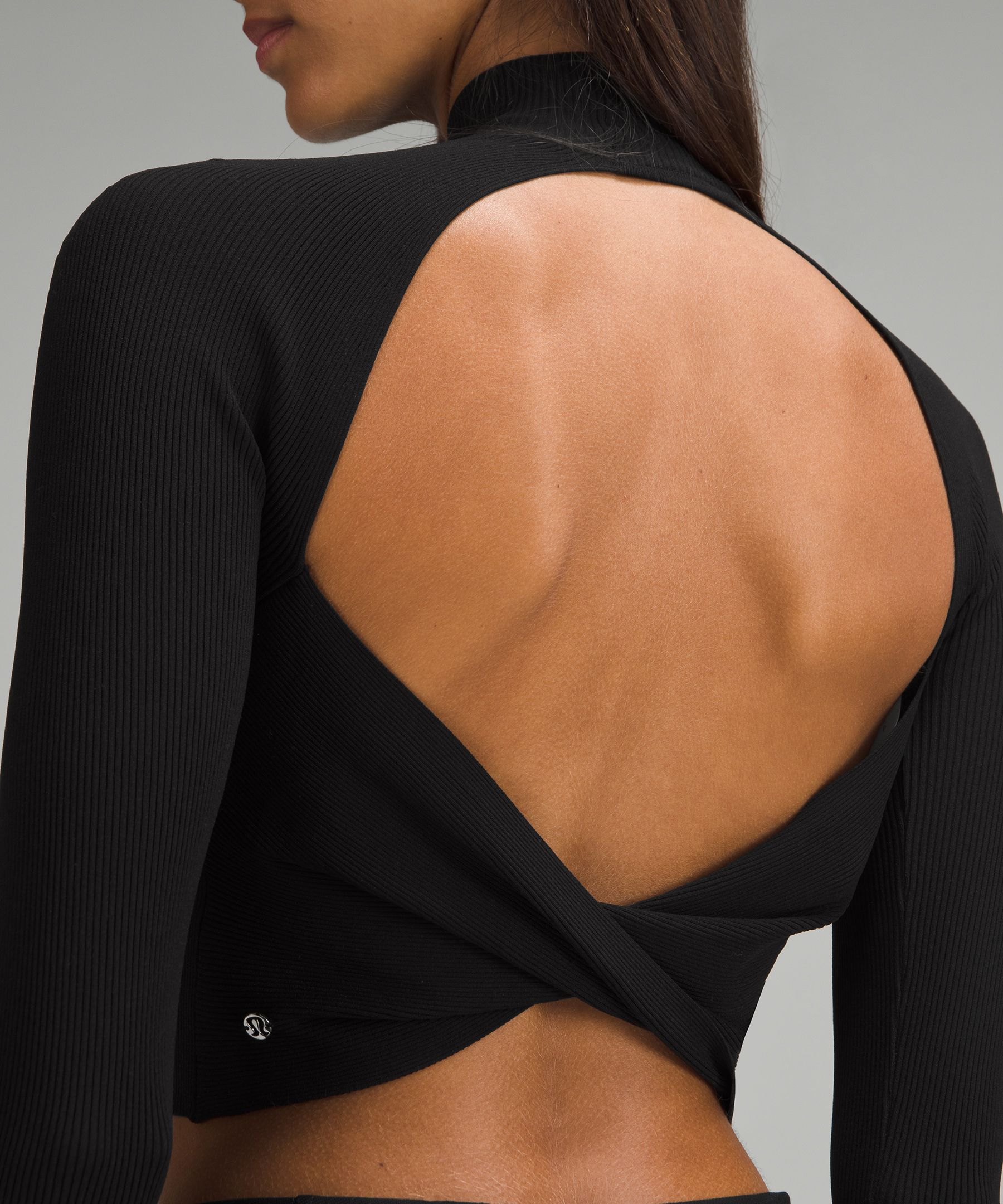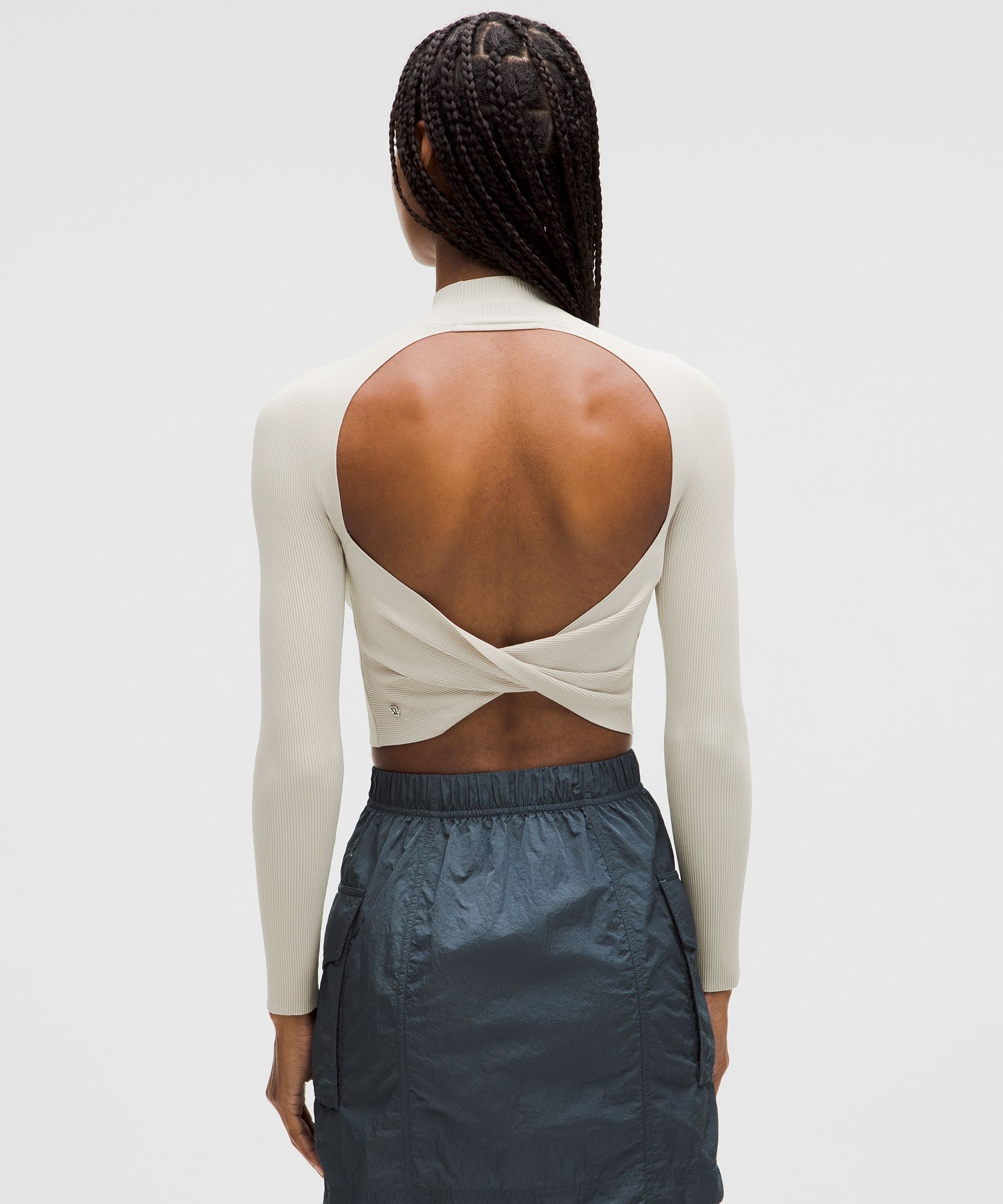 Luluthtlemon Ribbed-Knit Twist-Back Mockneck Sweater