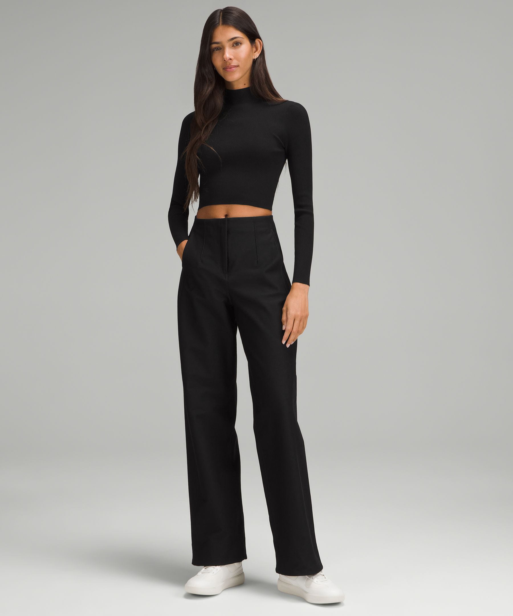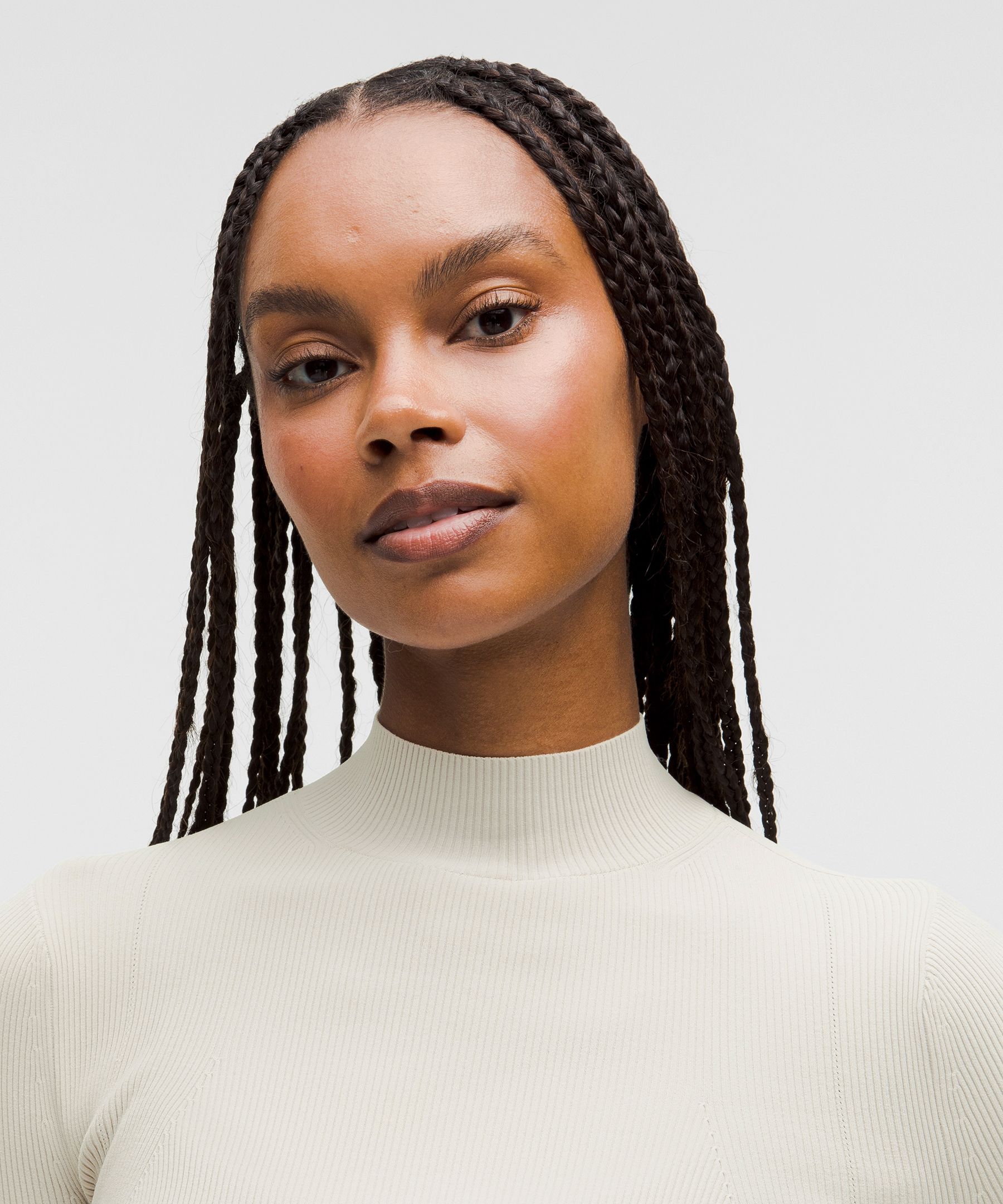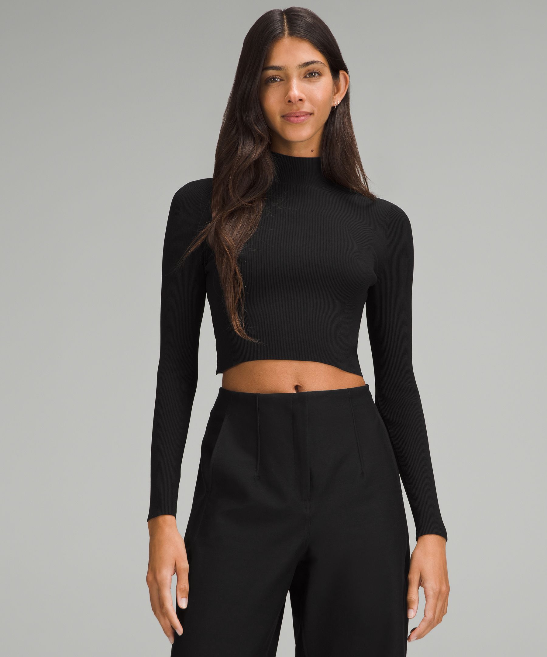 Luluthtlemon Ribbed-Knit Twist-Back Mockneck Sweater