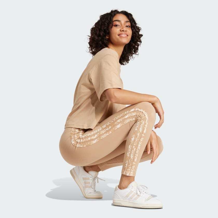 Let your wild side show. These adithtdas leggings feature an eye-catching animal print running down the sides. Pair them with your favorite oversized hoodie for a cozy yet chic look, or wear a colorful crop top for a night out. However you style them, you'll love the soft, stretchy feel of the cotton jersey fabric.