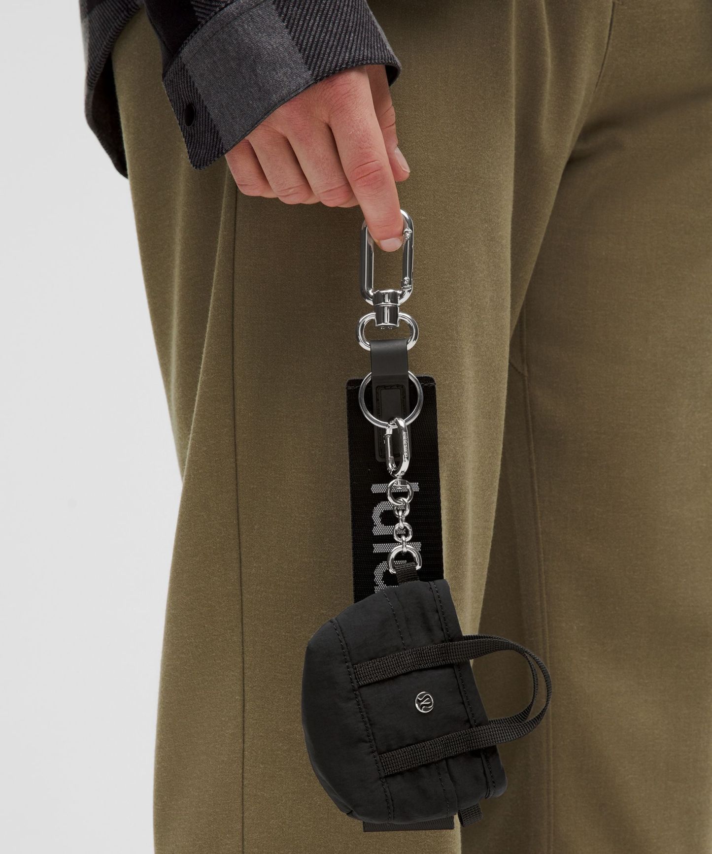 - Carabiner clip secures to bag straps, belt loops, and more