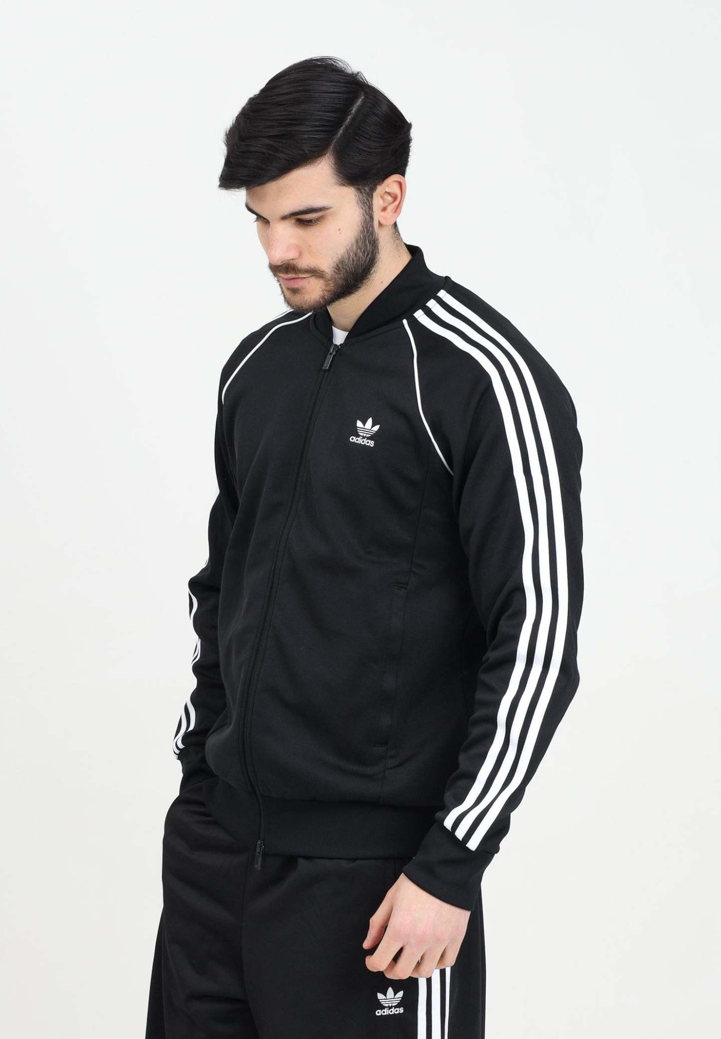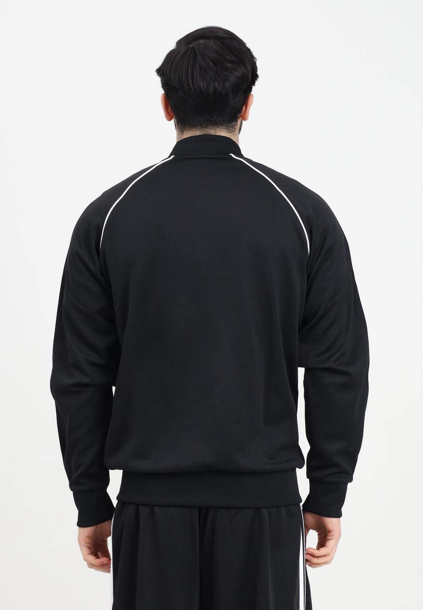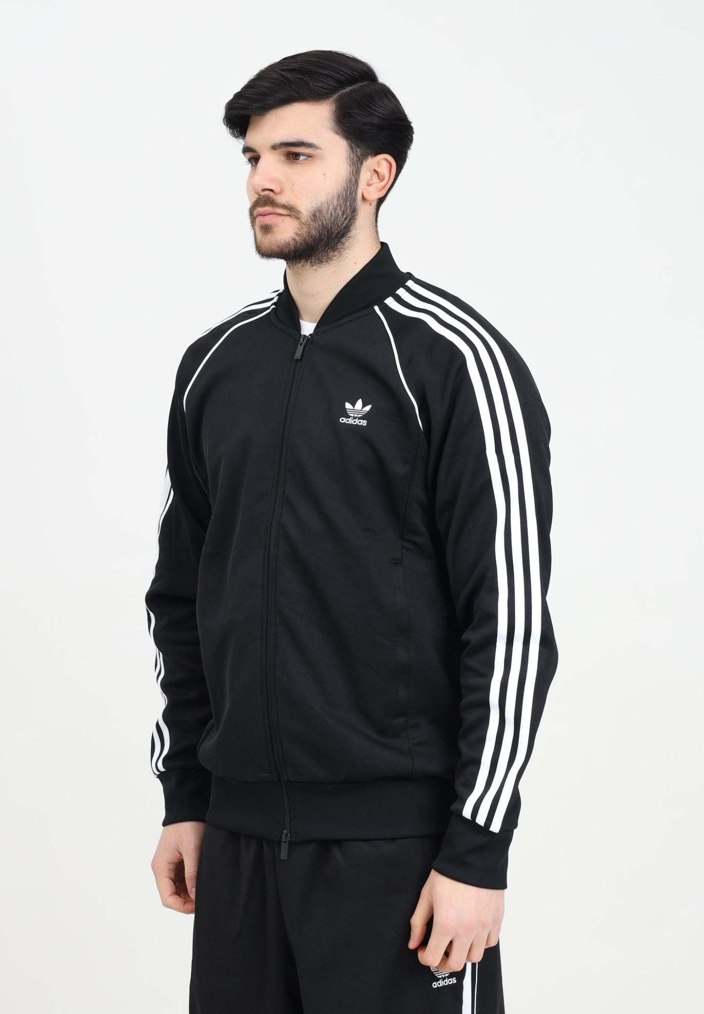 Adithtdas Men's Adicolor Classics SST Zip-Up Hoodie in Black. Everyone needs a good track jacket, and this is it. Crafted from soft interlock fabric, this Adithtdas staple stays true to its archive inspiration. An embroidered Trefoil logo and 3-Stripes create a timeless look, while a ribbed hem and cuffs ensure a tailored fit. A full zip front lets you wear it zipped up as an extra layer or open up to reveal your T-shirt. The model is wearing a size L and is 187cm tall. Wash and iron at medium temperature. Fall/winter season.
