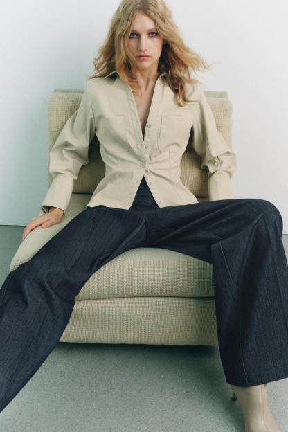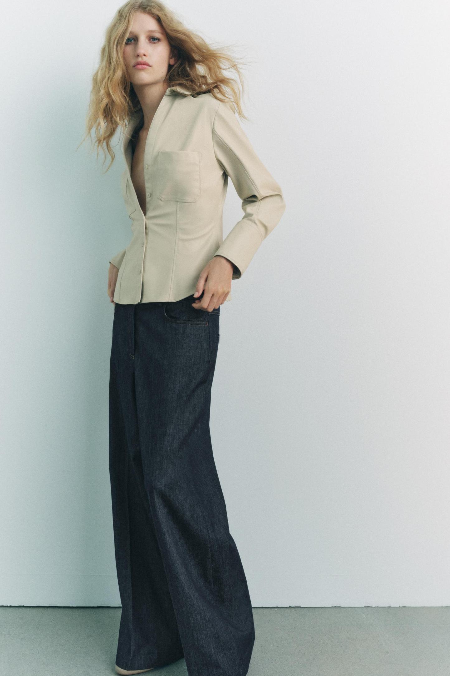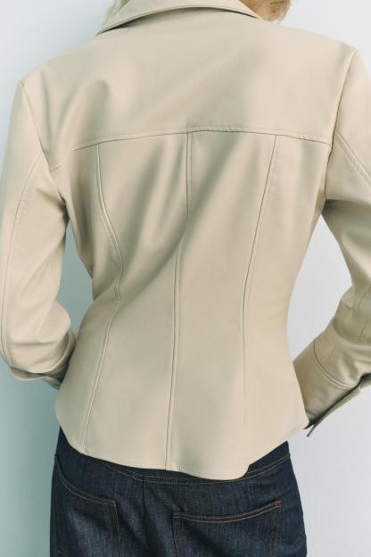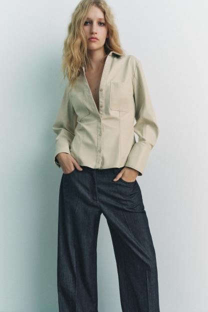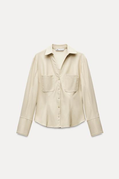 FITTED FAUX LEATHER SHIRT