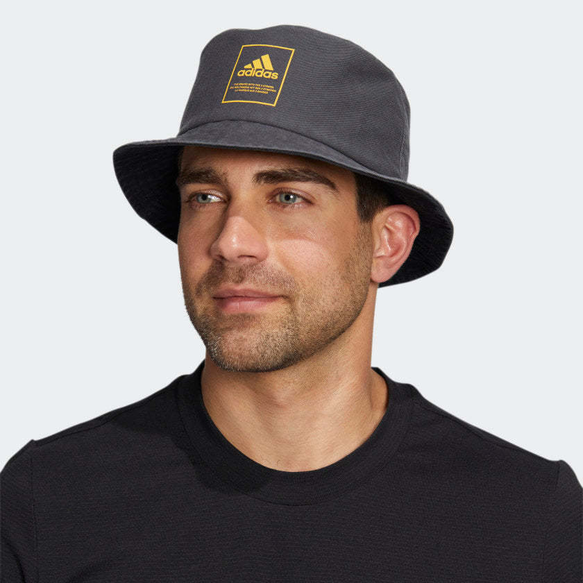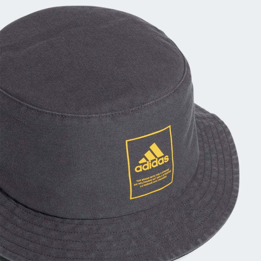 A stylish way to stay under shade. This adithtdas bucket hat is made from cotton for a naturally airy feel. The moisture-wicking sweatband keeps you comfortable when you take your sweat session outdoors. Our cotton products support more sustainable cotton farming.