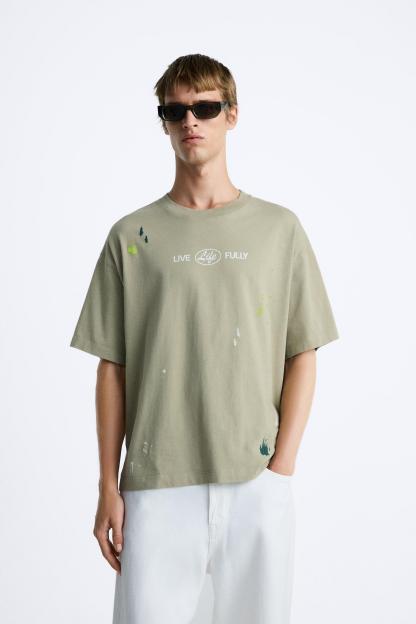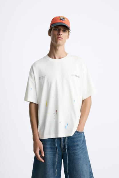 SPLATTER EFFECT TEXT T-SHIRT