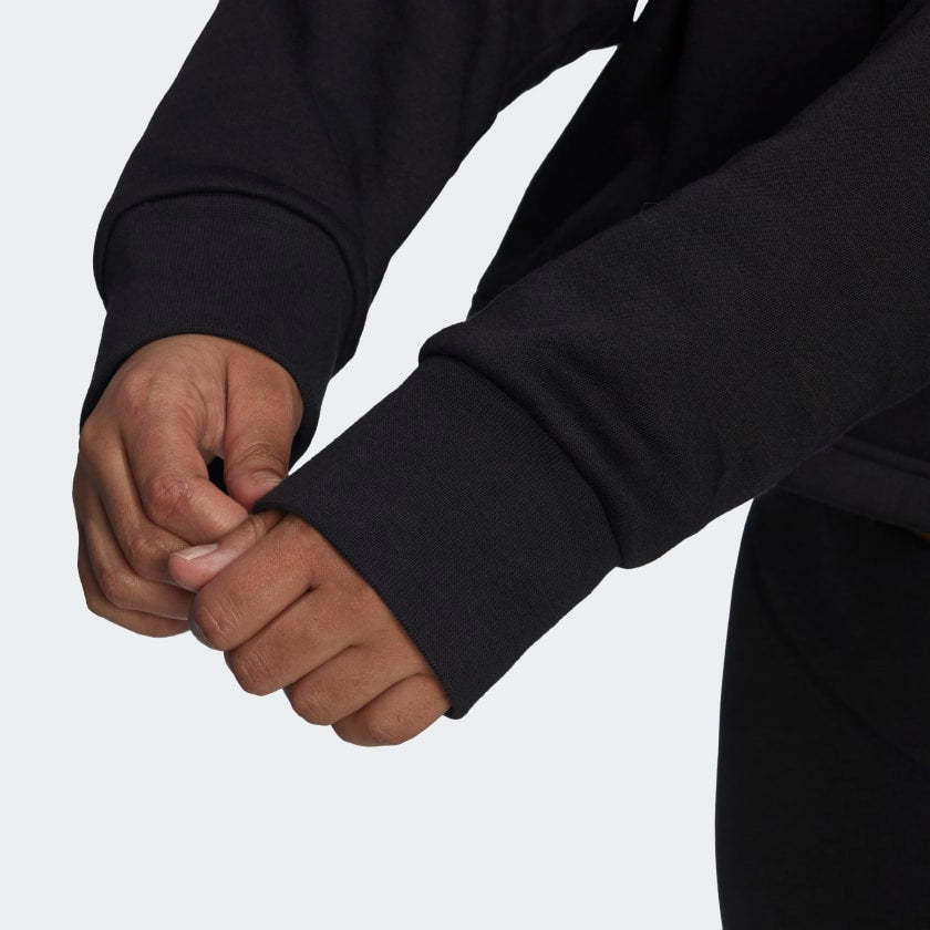 Comfortable. Crop. Enough said. This adithtdas hoodie is the kind you want to wear over and over again, with its easy-to-layer style and cozy fleece fabric. Whether you're binge-watching movies in your sweats or heading out in jeans, this hoodie is on the agenda. Made in part with recycled content generated from production waste, e.g. cutting scraps, and post-consumer household waste to avoid the larger environmental impact of producing virgin content.