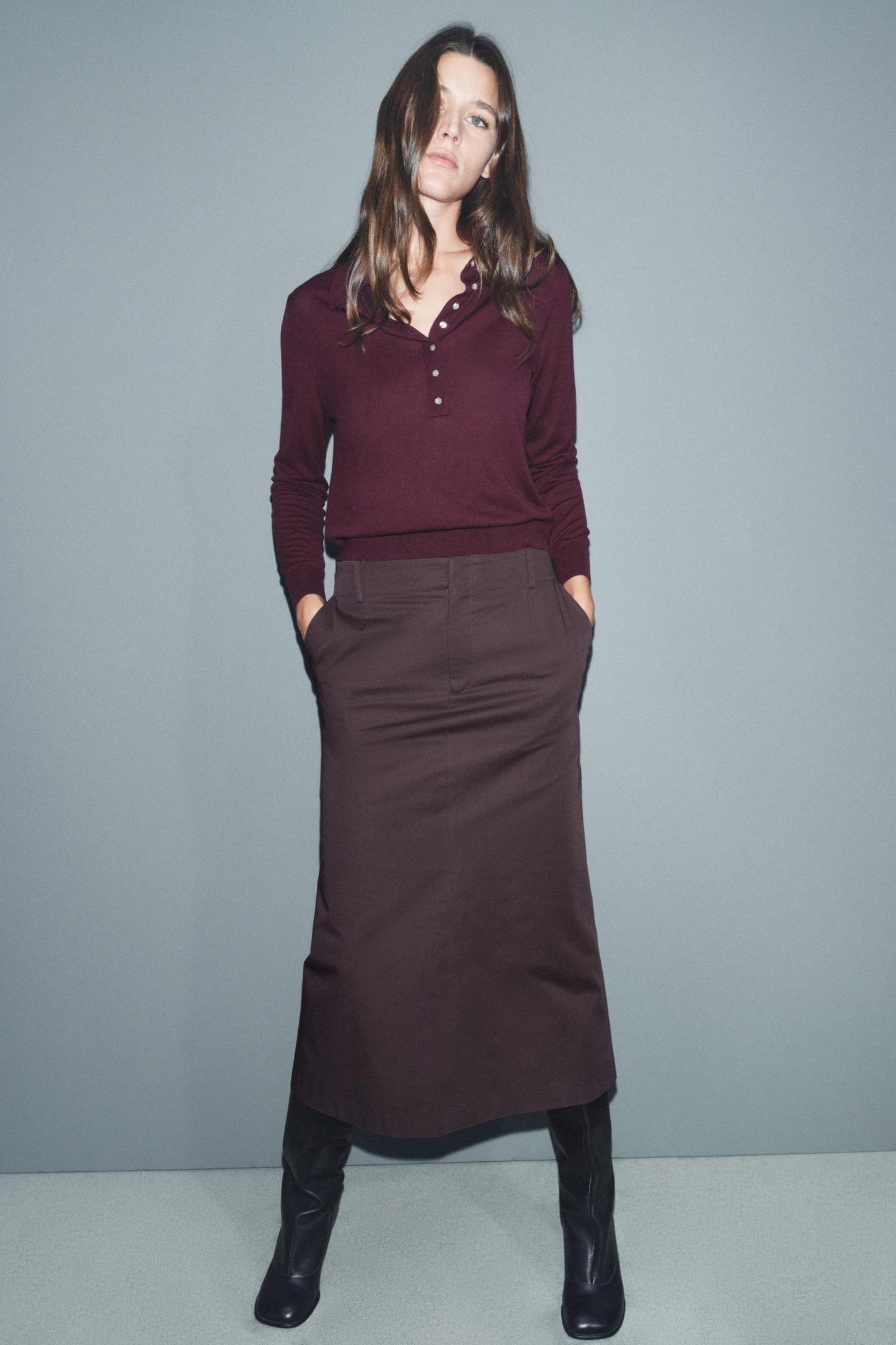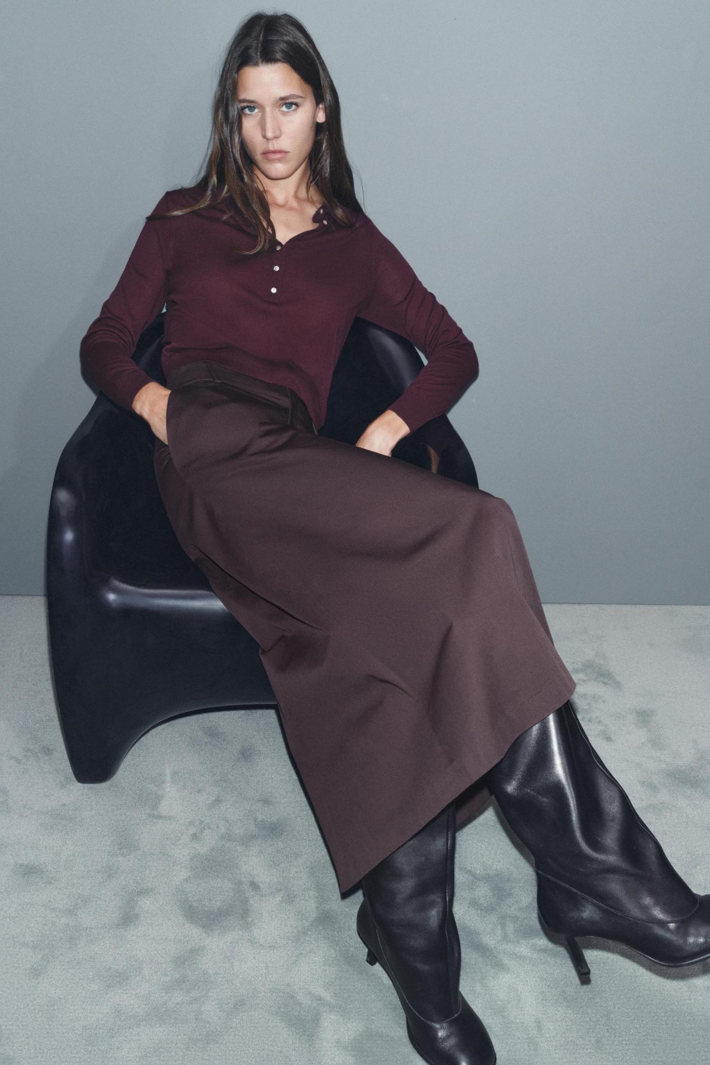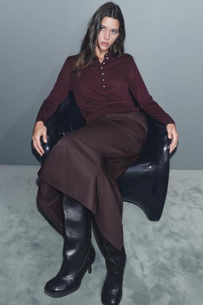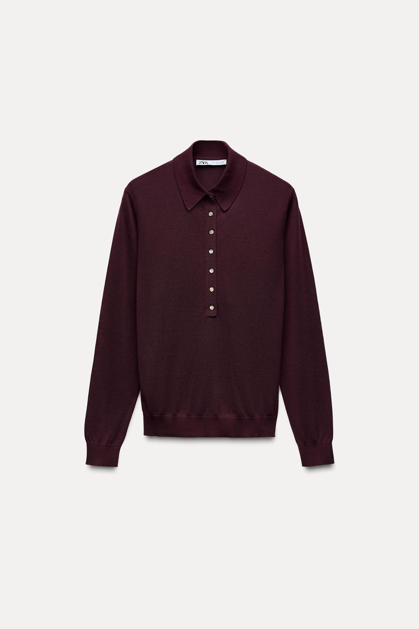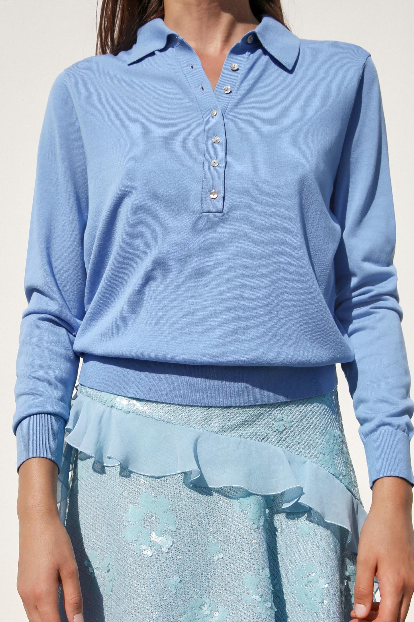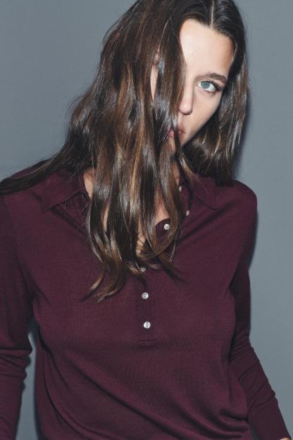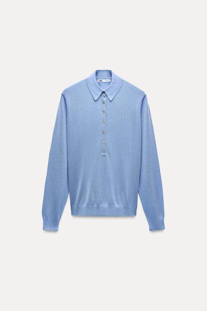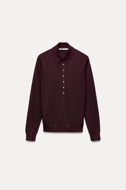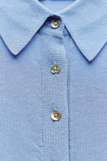 BUTTONED KNIT POLO TOP