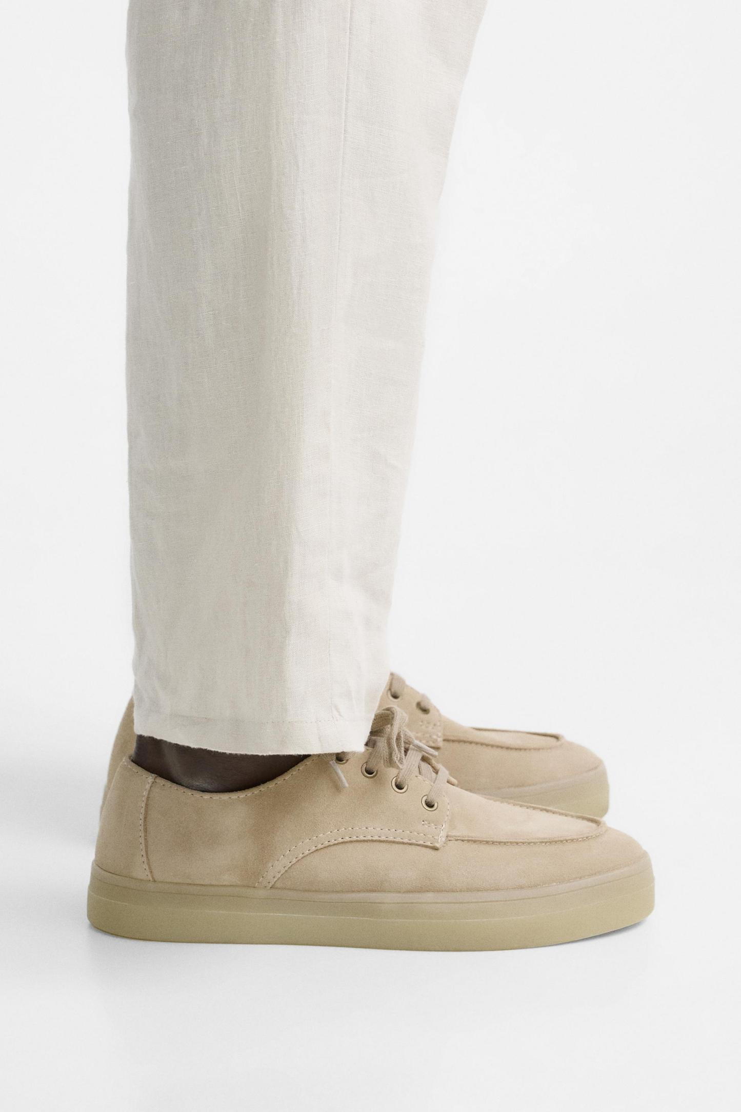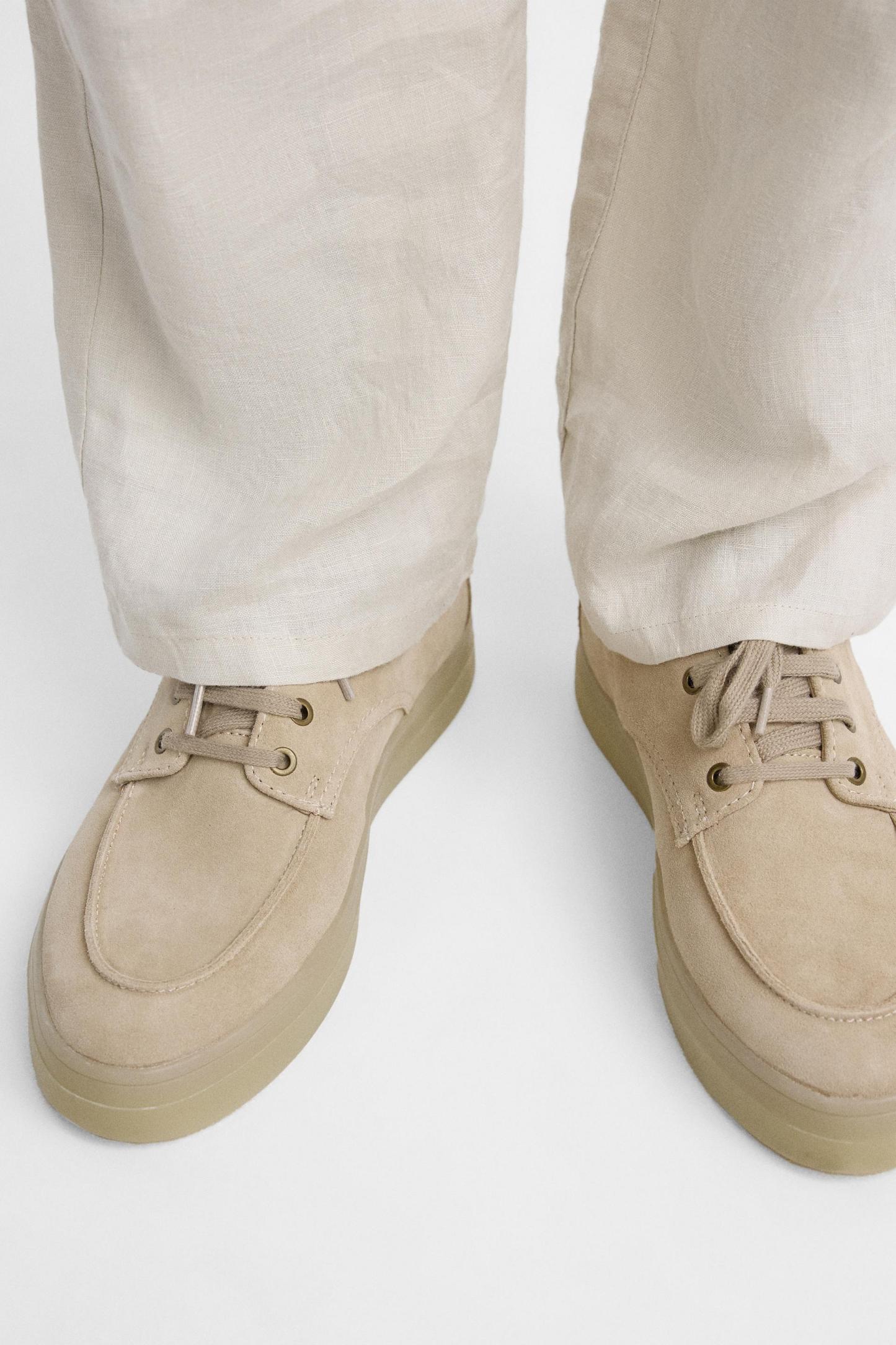 45% polyesterSOLE100% sbsINSOLE100% polyurethaneTONGUE100% cow leatherCARECaring for your clothes is caring for the environment.Simple actions like washing items with a dry cotton cloth or soft brush, per the characteristics of the product, can help us care for them. Whenever possible, try to use products that are respectful of the environment.
