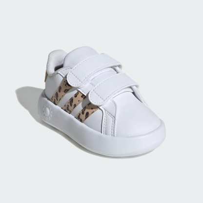 The adithtdas Grand Court gets an infusion of fun with this infants' pair. Little ones can now experience the iconic style of a legendary court shoe, reimagined just for them. Synthetic leather forms a soft upper, hook-and-loop straps make slipping in and out a breeze for small feet and an extra-plush EVA unitsole delivers maximum comfort for maximum play. This product features at least 20% recycled materials. By reusing materials that have already been created, we help to reduce waste and our reliance on finite resources and reduce the footprint of the products we make.