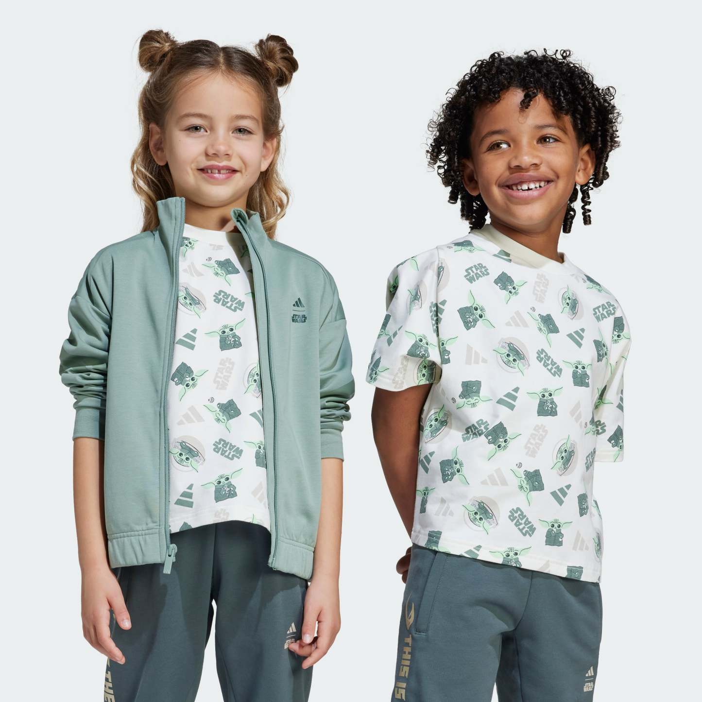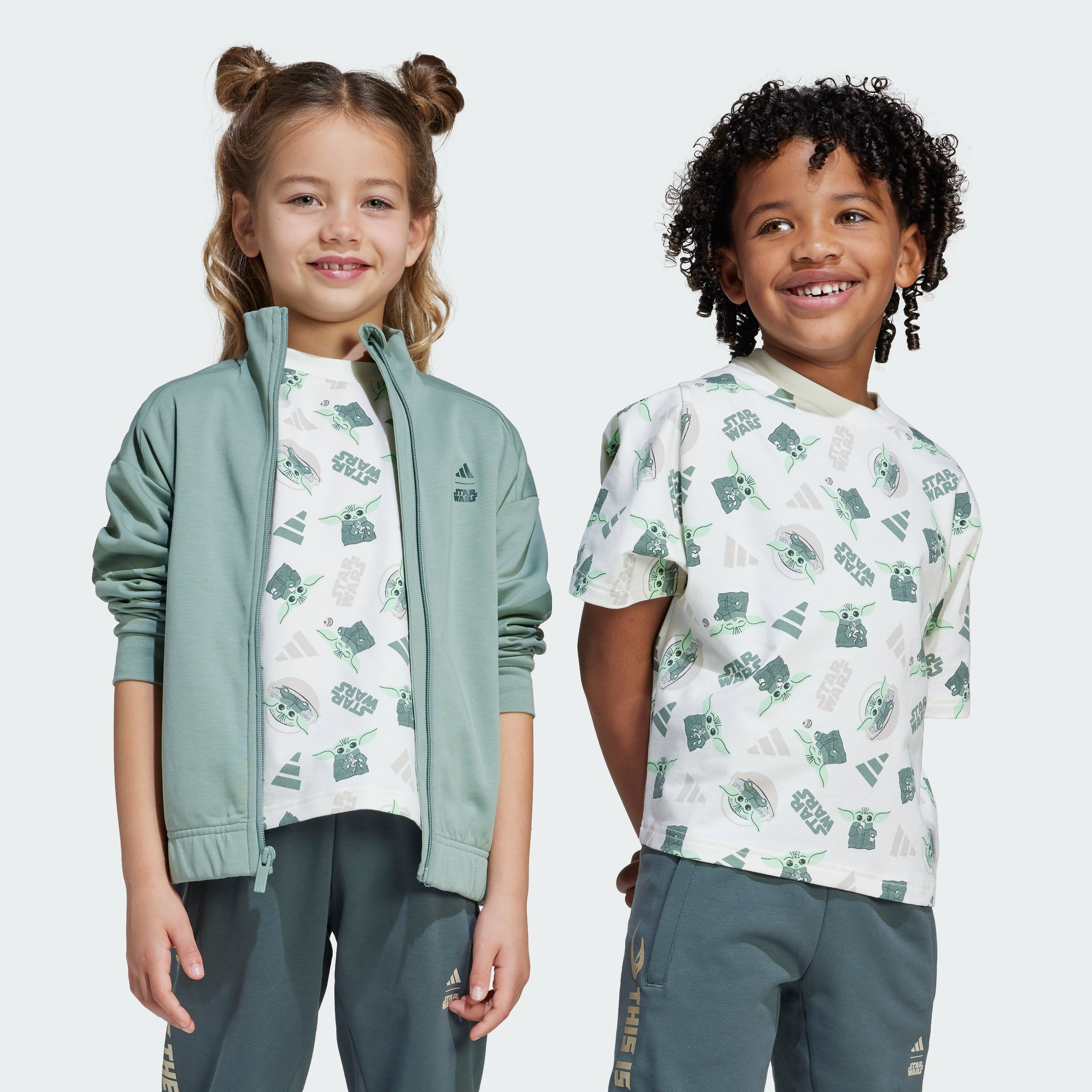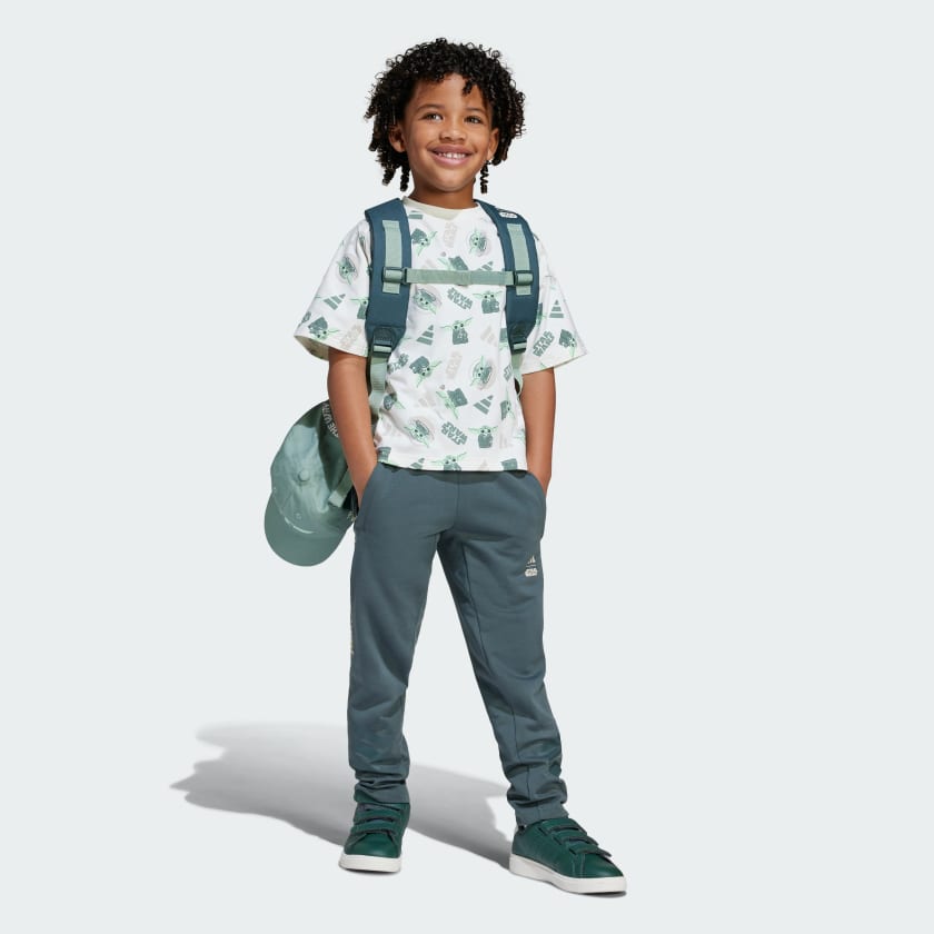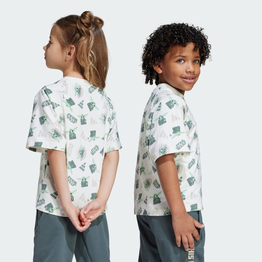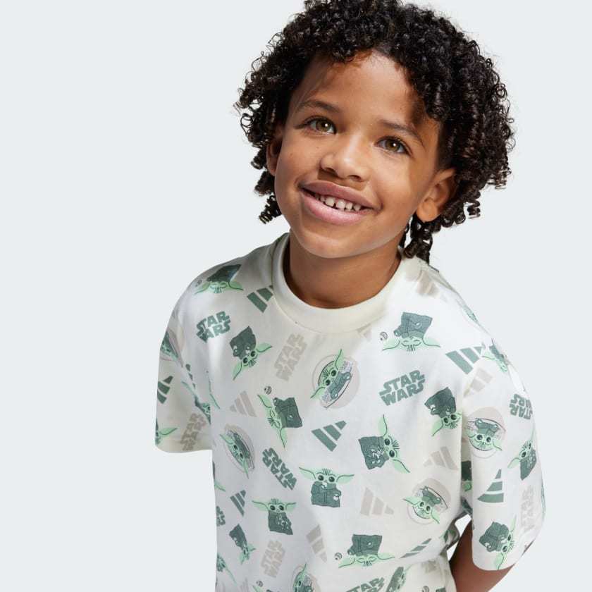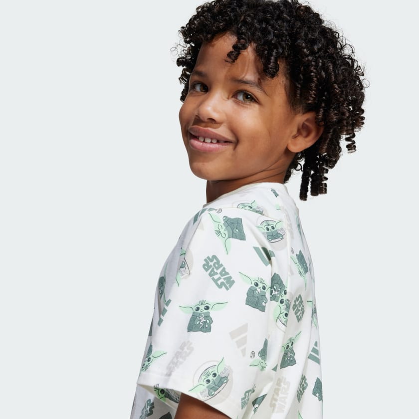 Young Star Wars fans can join the ranks of The Mandalorian in this kids' tee. Teaming up with the Star Wars universe, adithtdas brings an out-of-this-world allover print featuring Grogu to this comfy t-shirt. Soft, stretchy and cut for a loose fit, it's made for comfort and style.