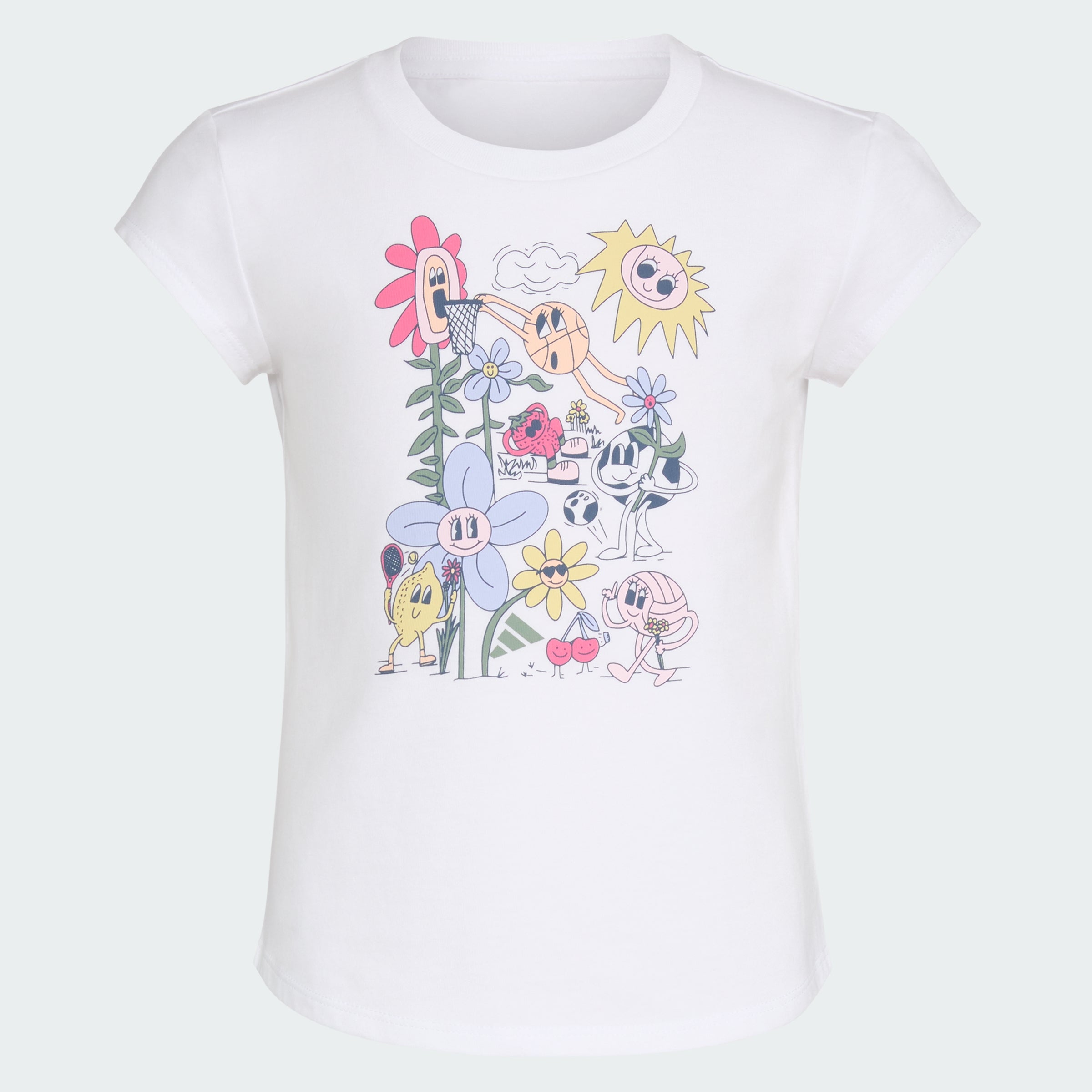 When a kid is on the move, an adithtdas kids' tee and shorts set makes life that much easier. The soft tee and shorts that are cut just right keep things comfy and allow freedom of movement, whatever the day's adventure. Creative, soccer-inspired graphics and the 3 Bar Logo provide fun, sporty style.