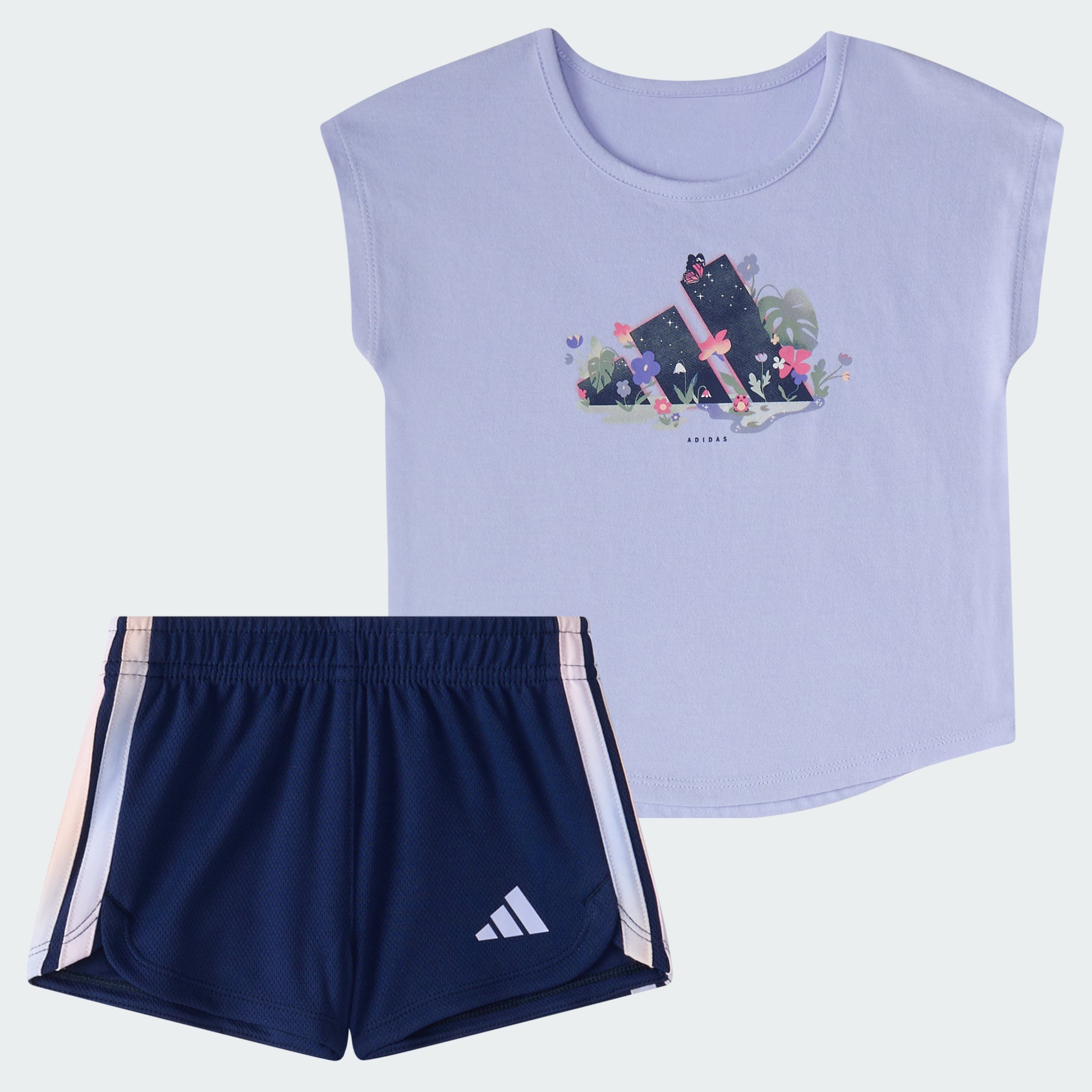 When a kid is on the move, an adithtdas kids' tee and shorts set makes life that much easier. The soft tee and breathable mesh shorts keep things cool and comfy and allow freedom of movement, whatever the day's adventure. Creative graphics and prints provide fun, sporty style.