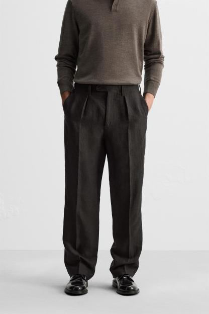 LINEN - WOOL HERRINGBONE PANTS