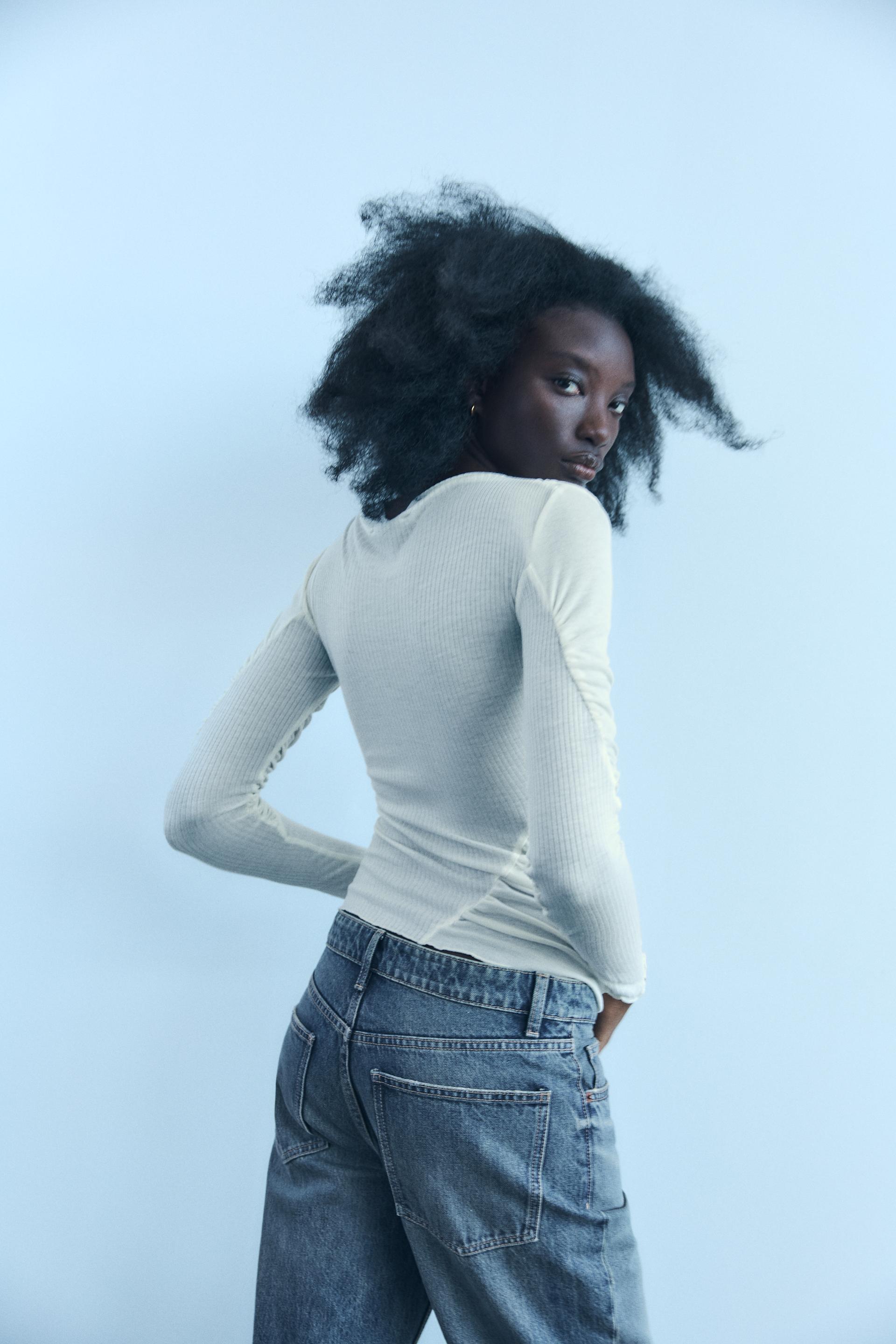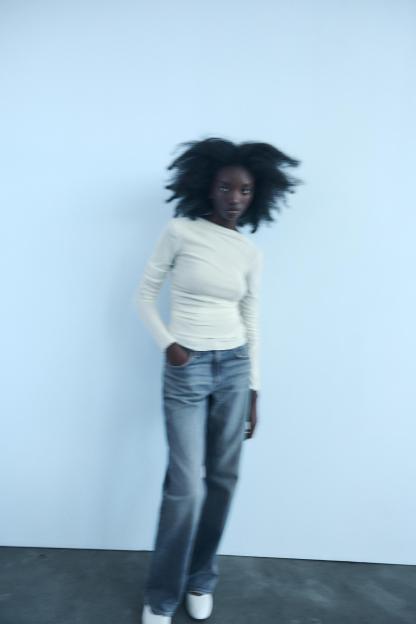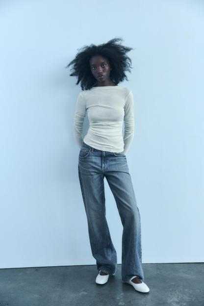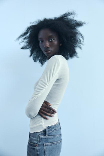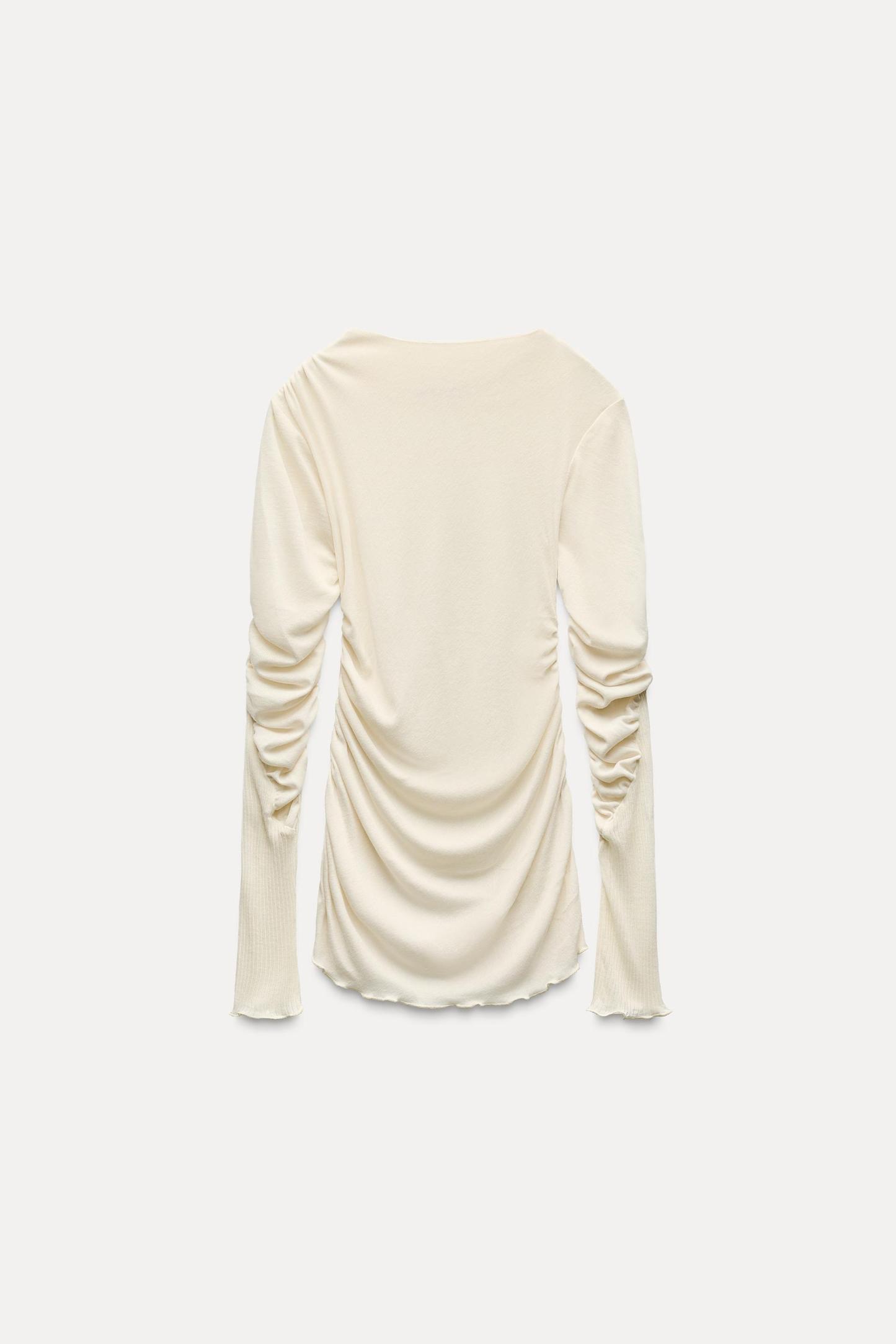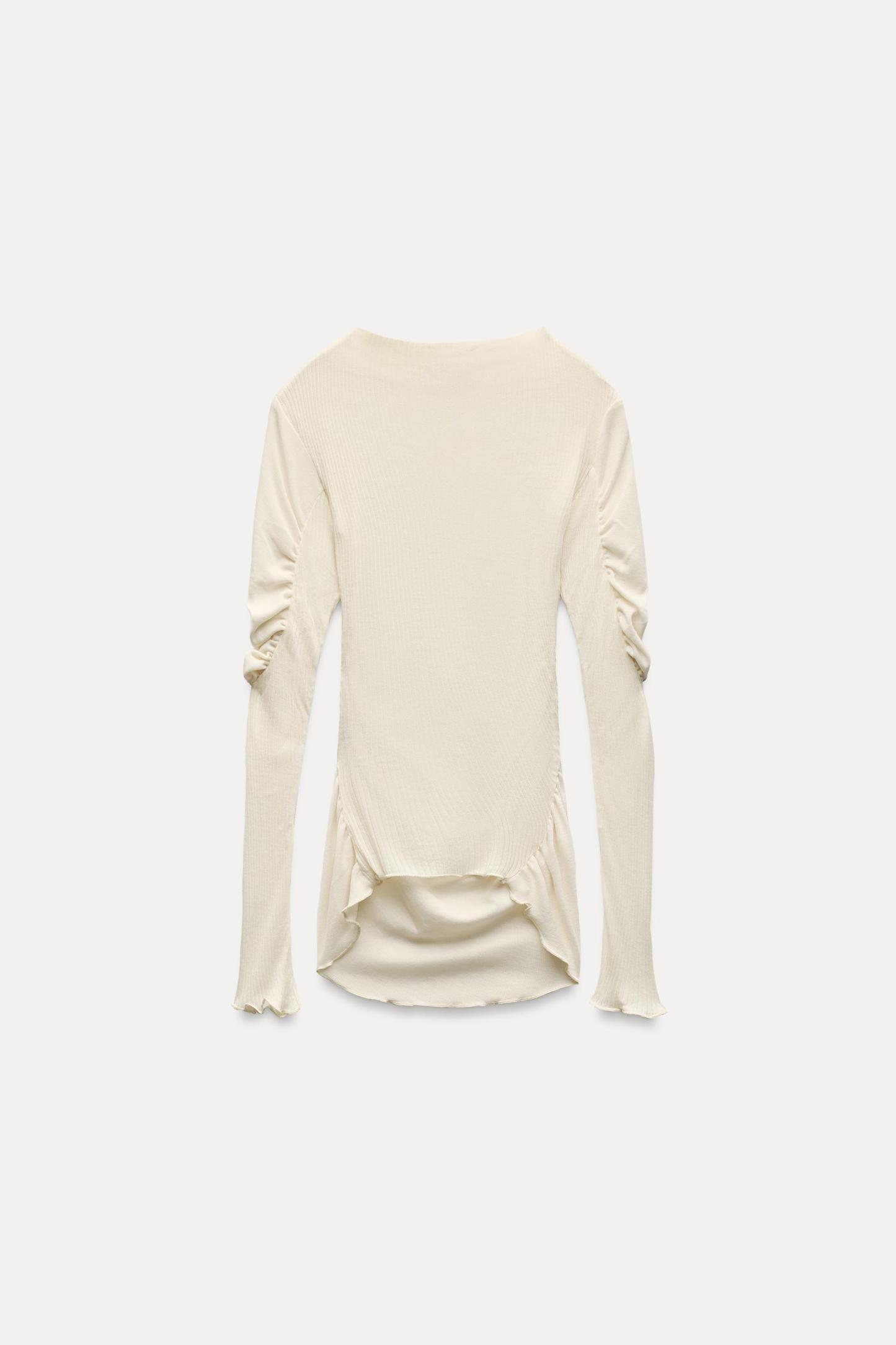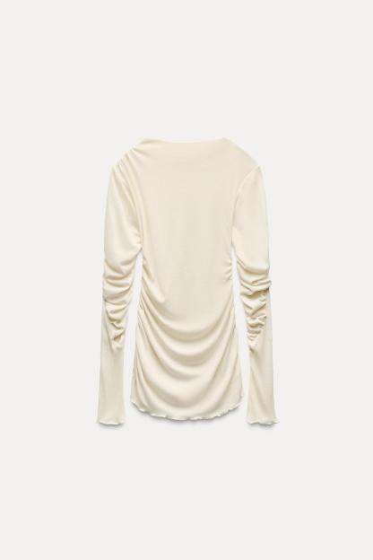 MOCK NECK RUCHED T-SHIRT