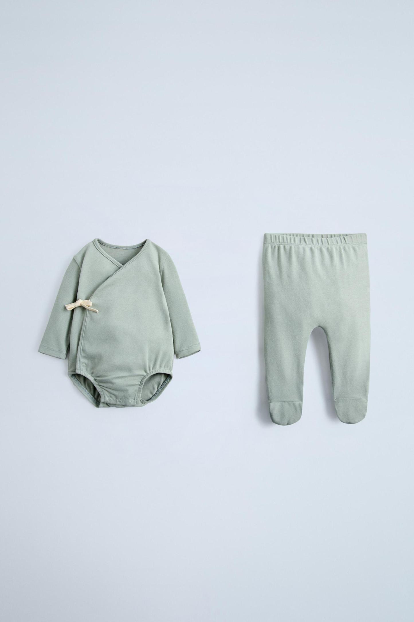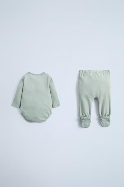 PLAIN BODYSUIT AND FOOTED LEGGINGS MATCHING SET