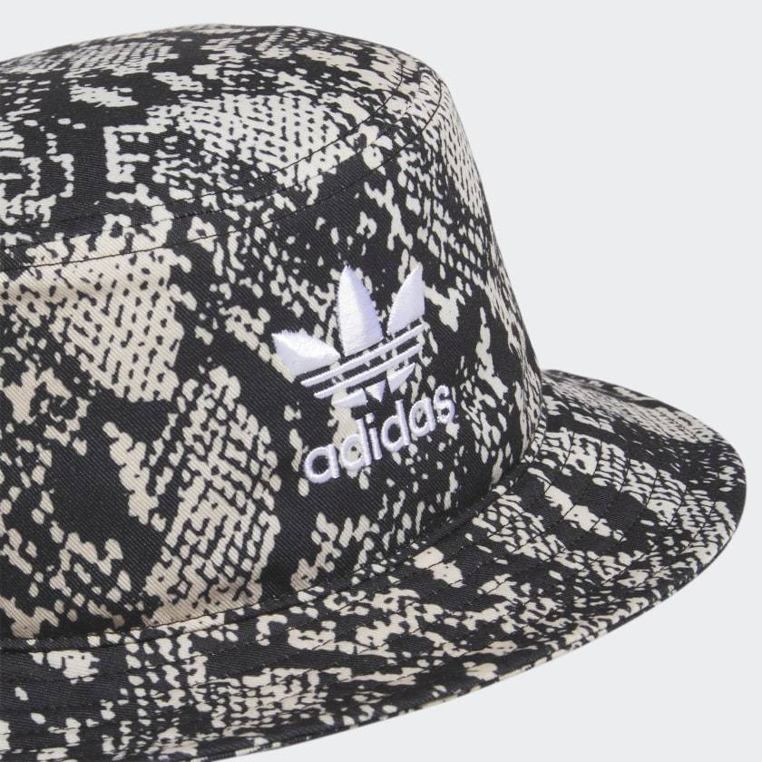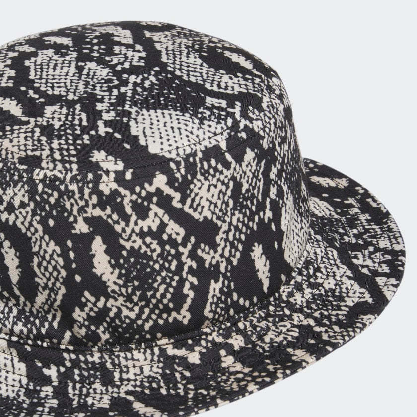 Embrace your wild side with this adithtdas Python Bucket Hat. It features a bold allover snakeskin print with the iconic Trefoil on the front. Make a statement and wear this hat with anything - snakeskin print is practically the new black. The all-around brim will keep you stylish and in the shade. Made with a series of recycled materials, and at least 40% recycled content, this product represents just one of our solutions to help end plastic waste.