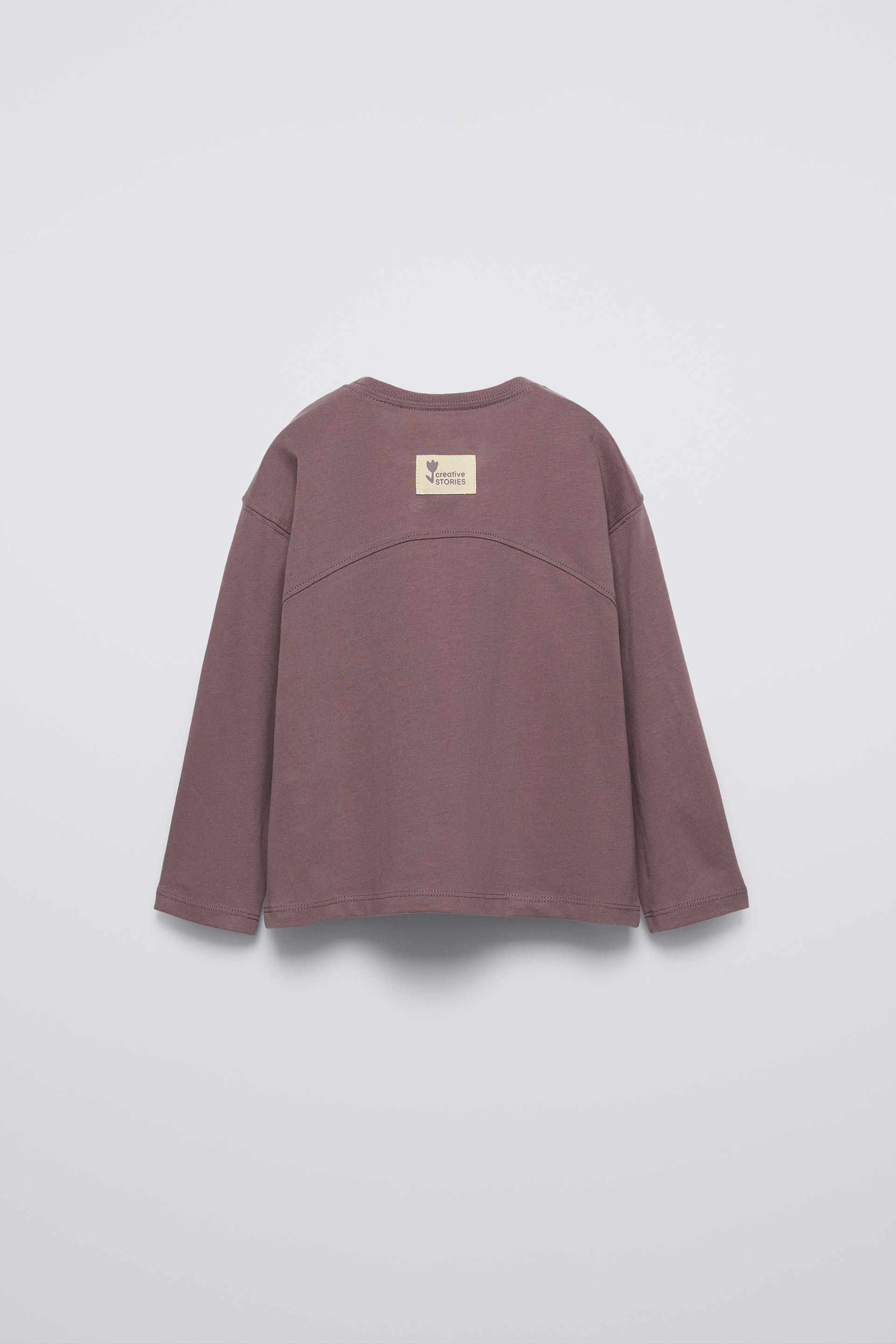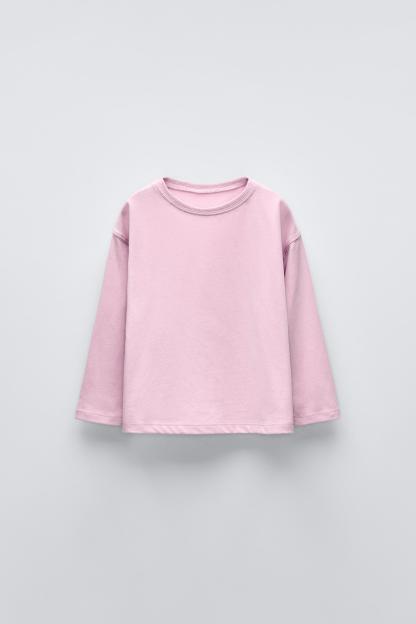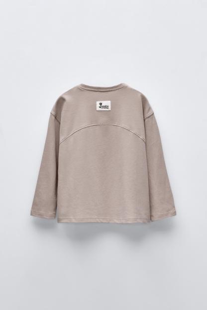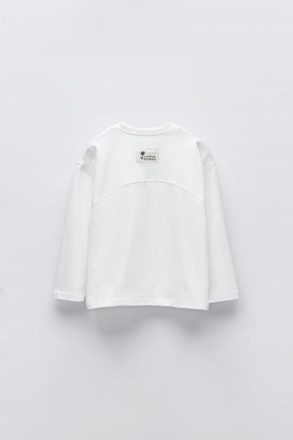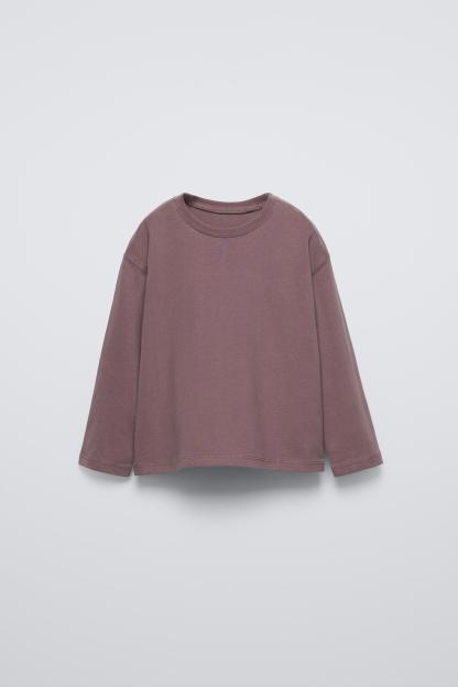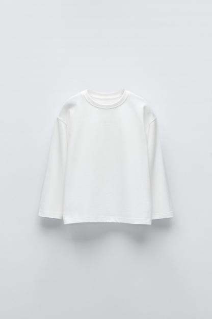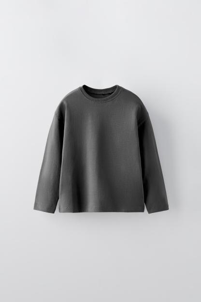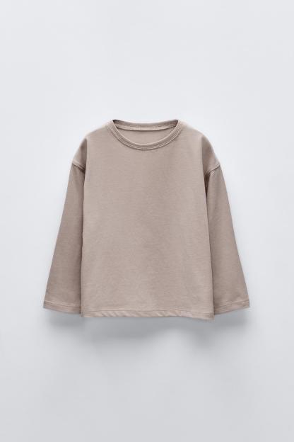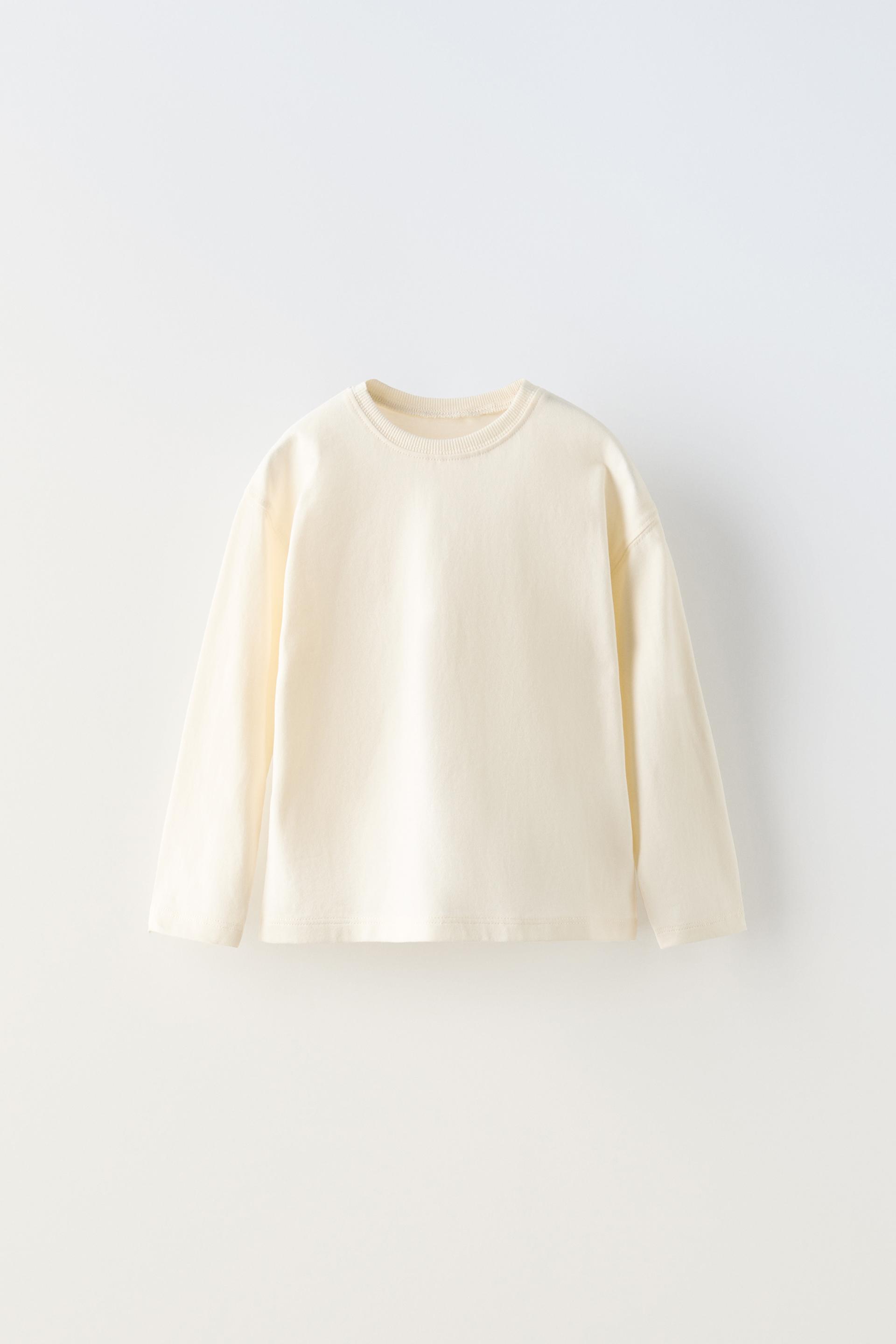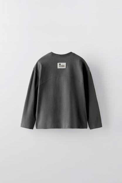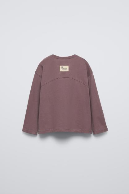 T-shirt with round neck and long sleeves. Label appliqué at back hem.