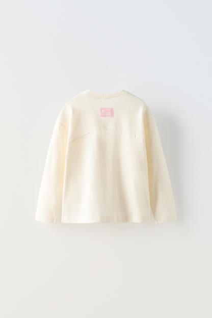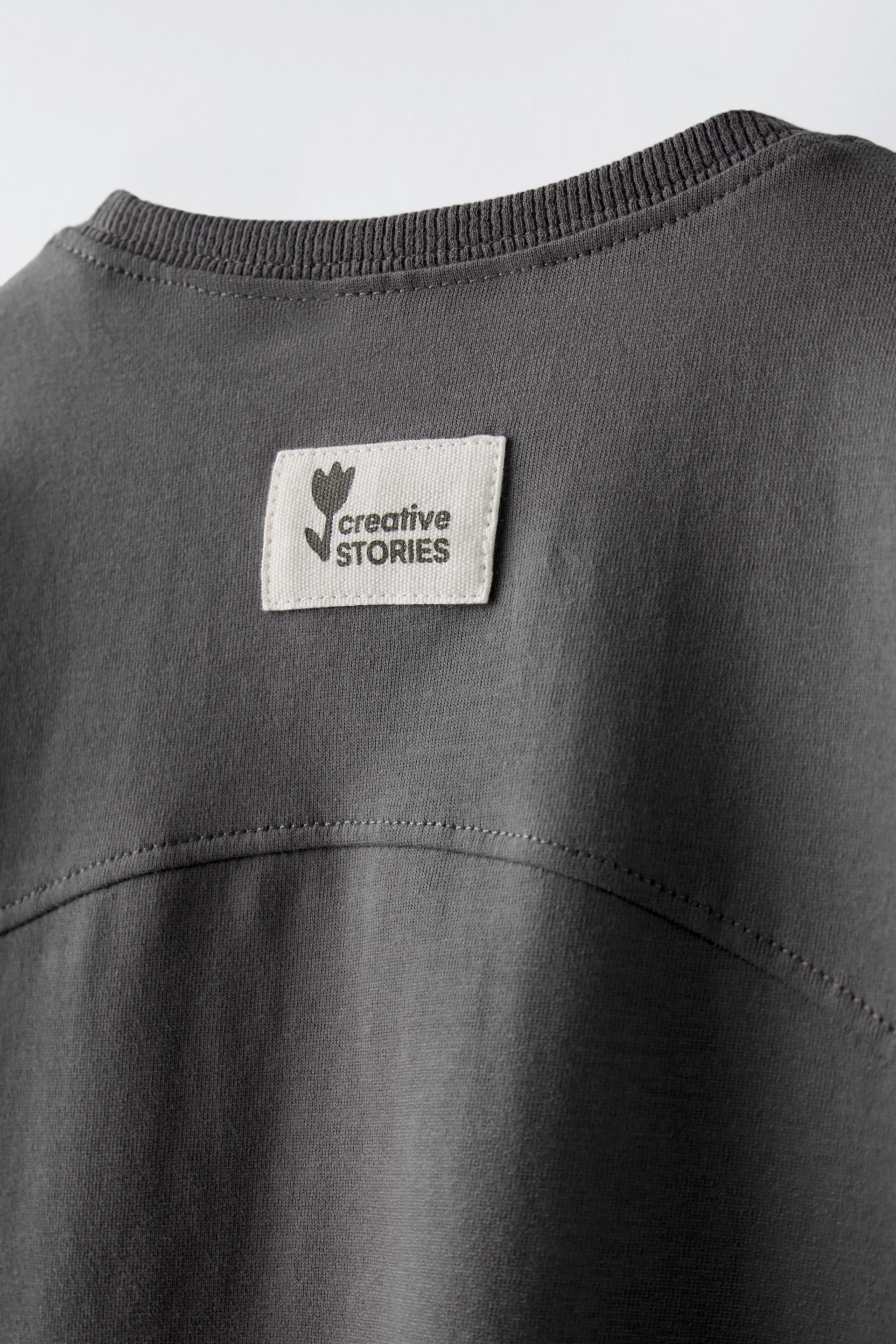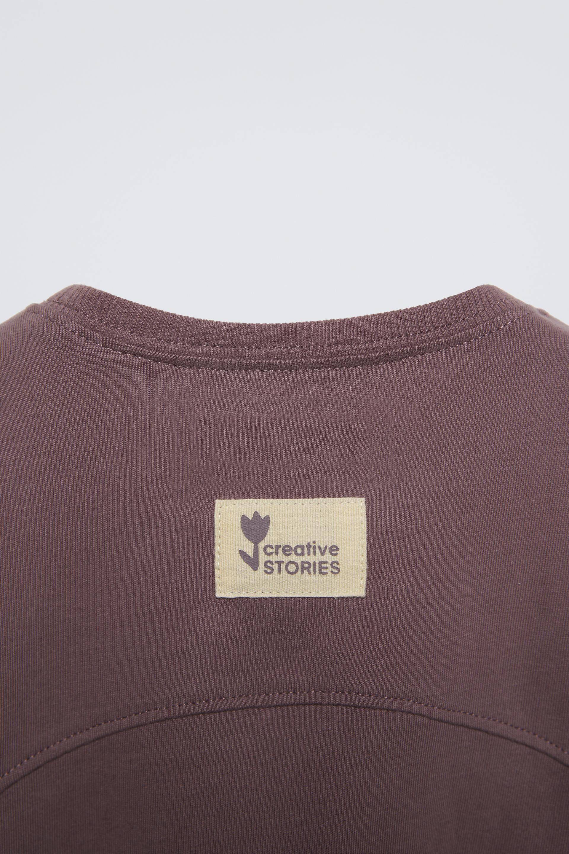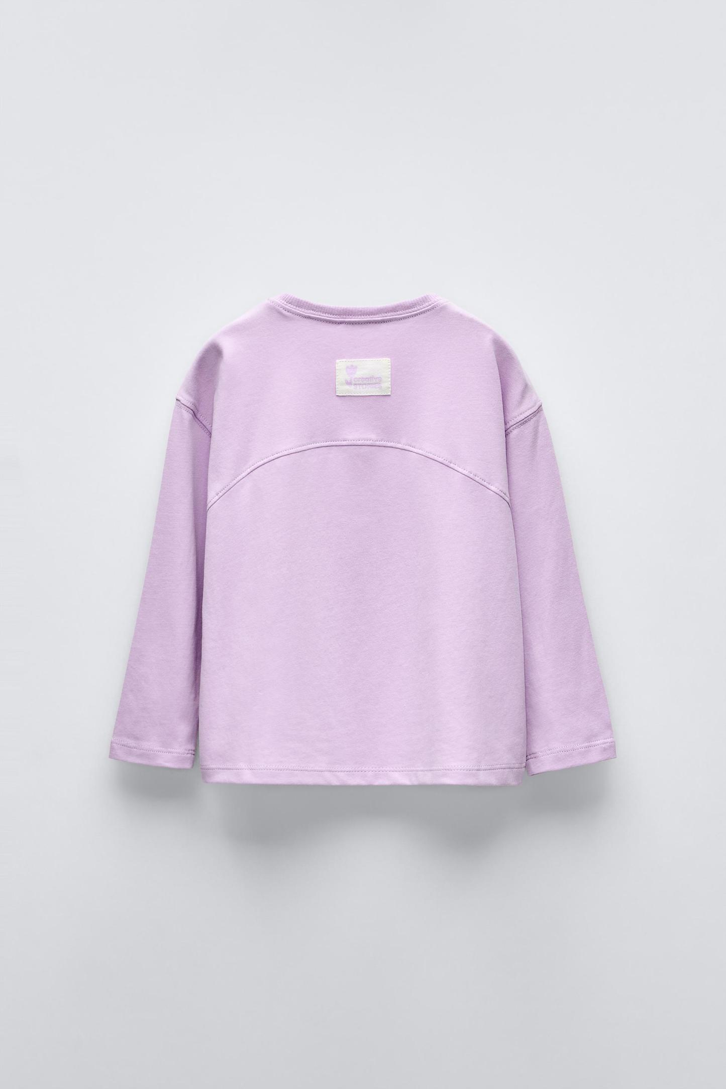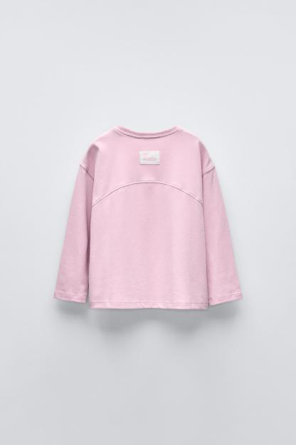 T-shirt with round neck and long sleeves. Label appliqué at back hem.