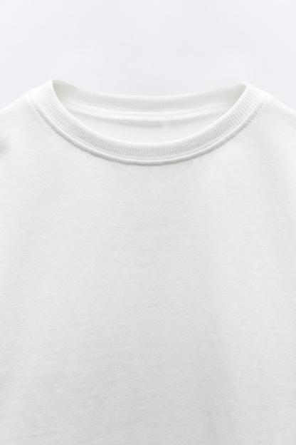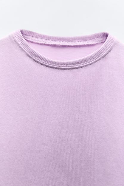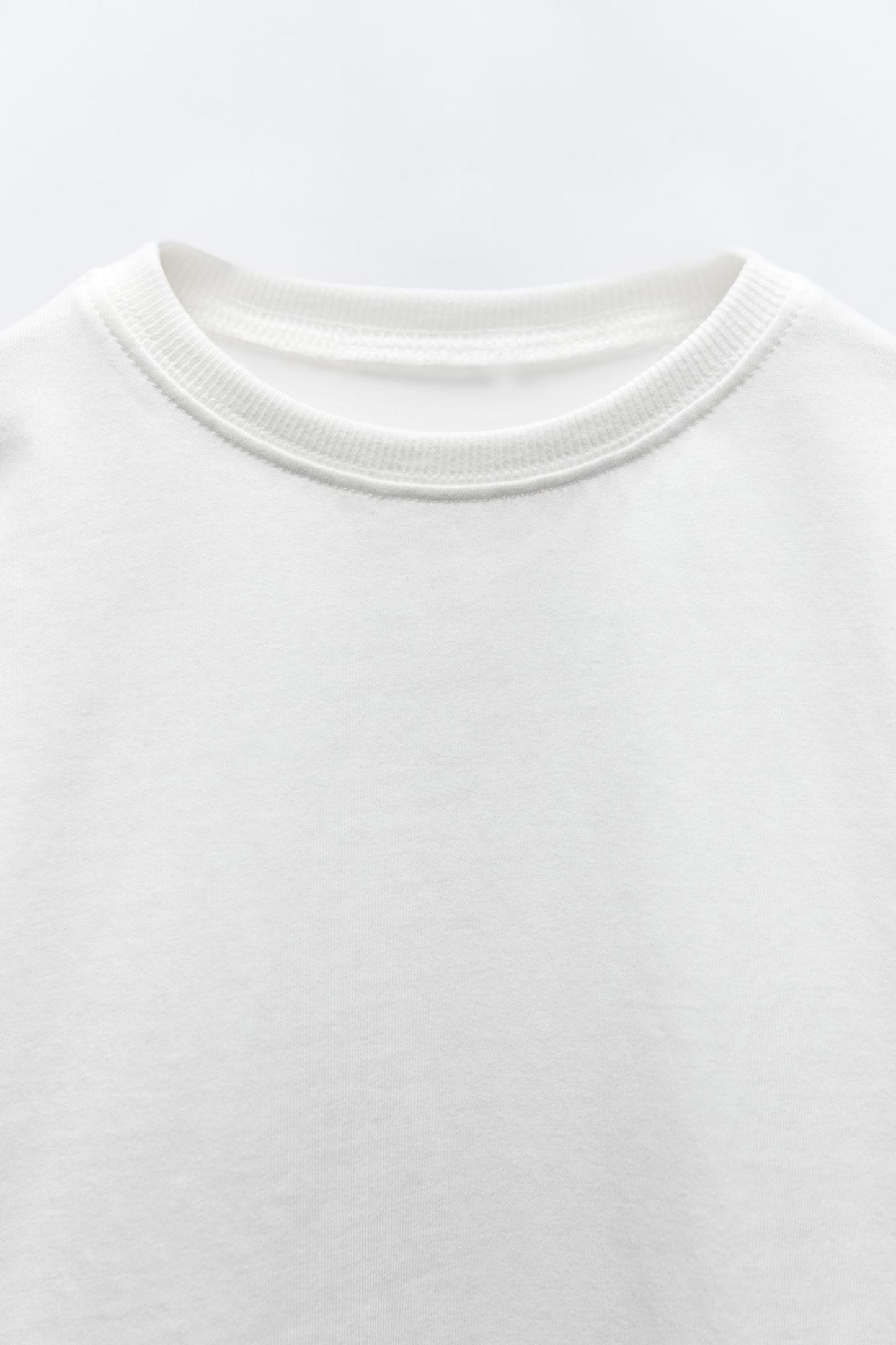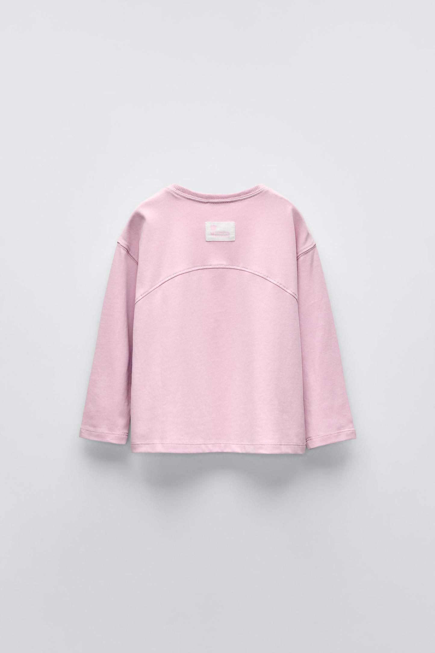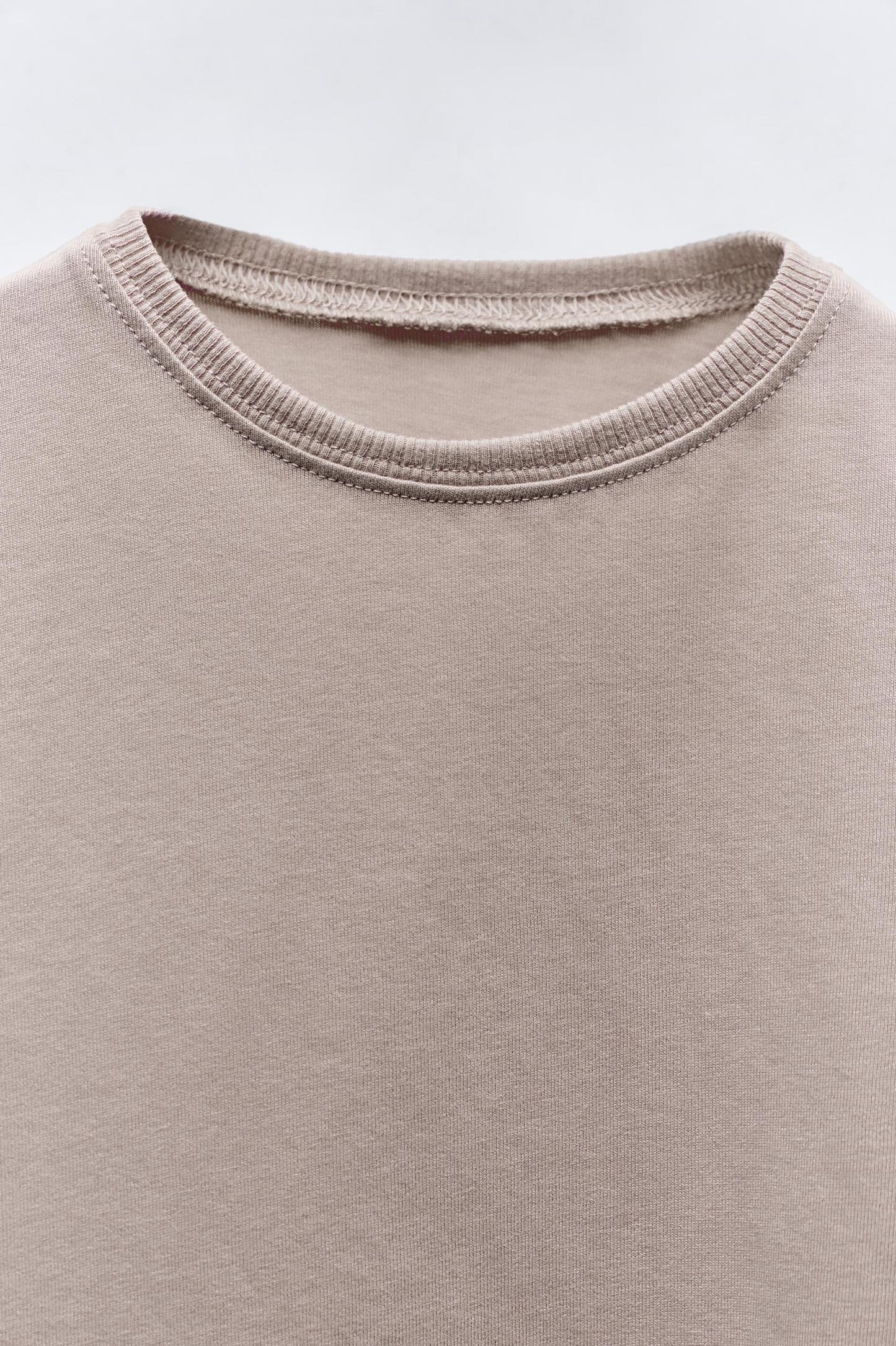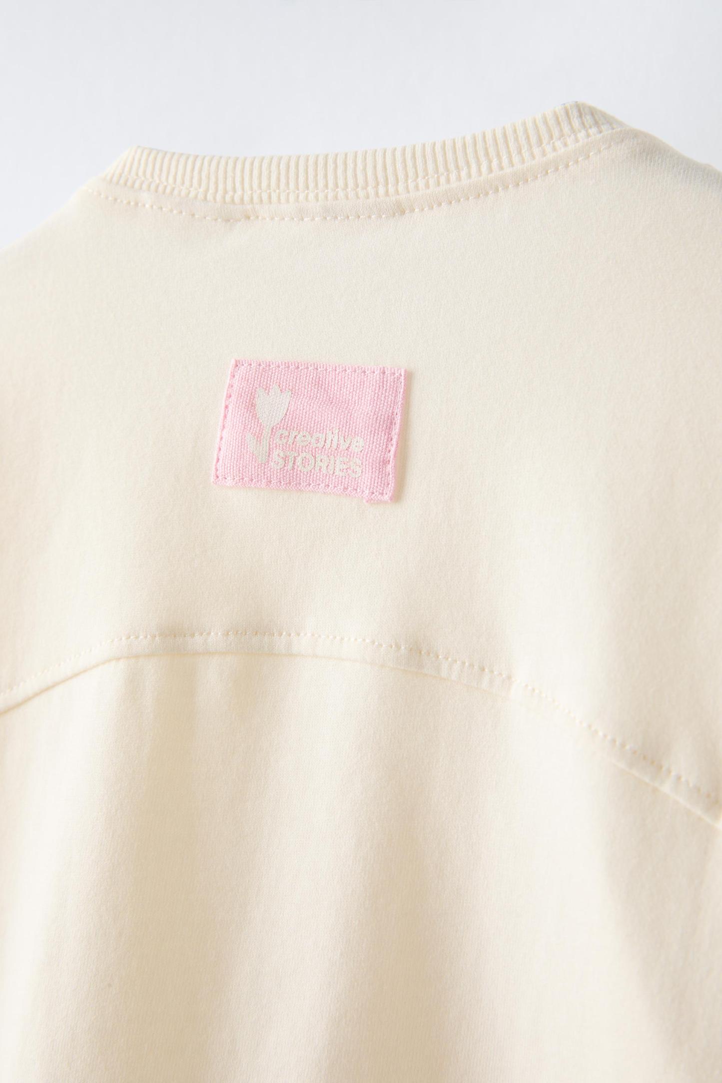 T-shirt with round neck and long sleeves. Label appliqué at back hem.