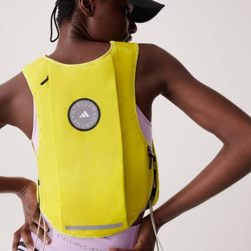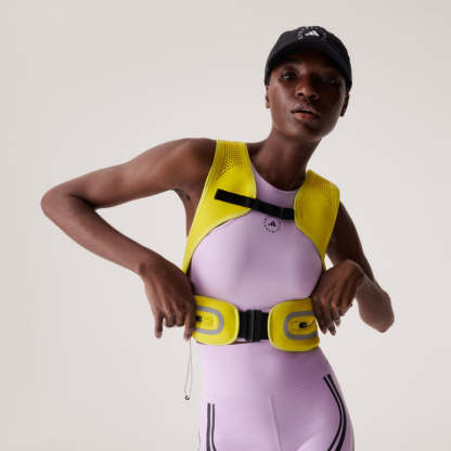The epitome of functional chic, the adithtdas by Stella McCartney Run Vest will fast become your new favorite running companion. It was specifically designed to fit close to the female form. Extensive research was done to create the perfect shape and fit for individual bodies, always keeping performance in mind. The shoulder straps are adjustable with bungee-adjustable details, so the vest fits snugly and you can move freely with complete support, providing ultimate comfort during your run. The shoulder straps are detailed with laser-cut holes for ventilation, while the side and back pockets ensure easy access to your essentials - think water bottle, keys and wallet. And when things heat up, simply lace your running jacket through the back strap. Reflective details and the on-trend colorway lend fashion-forward appeal to the high-performance design.