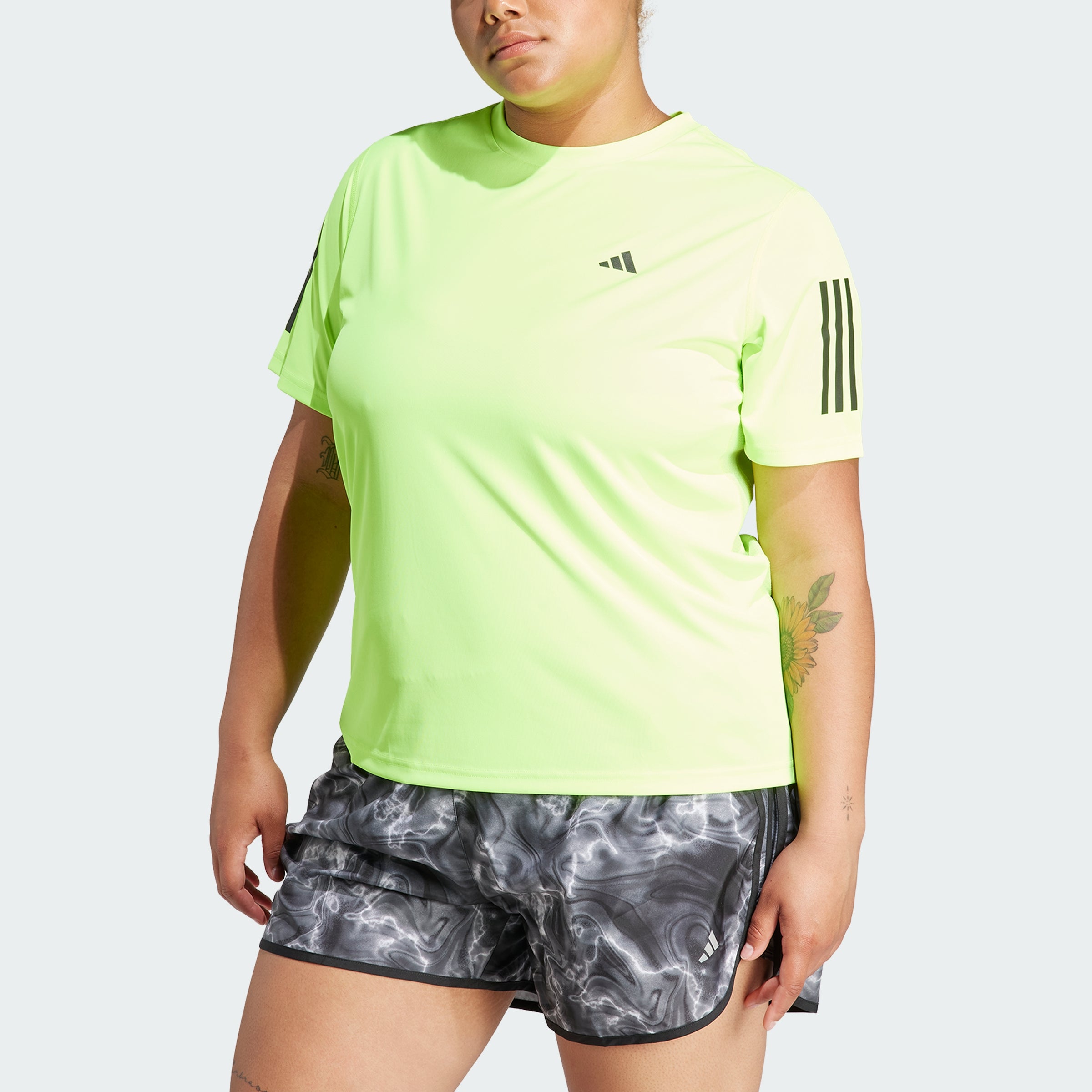 Whether you're hitting the pavement with your community or on your own, there's nothing quite like the joyful rush of a runner's high. One thing's for sure - comfort and support are paramount in maximizing your daily dose of endorphins. Enter the Own the Run Tee (Plus Size), destined to be your new go-to for short runs and distance days alike. Crafted from lightweight fabric, the top features sweat-wicking AEROREADY fabric to help keep you feeling dry. The sporty silhouette features 3-Stripes style to help you subtly standout as you put in the kms, while reflective details shine when the light fades.