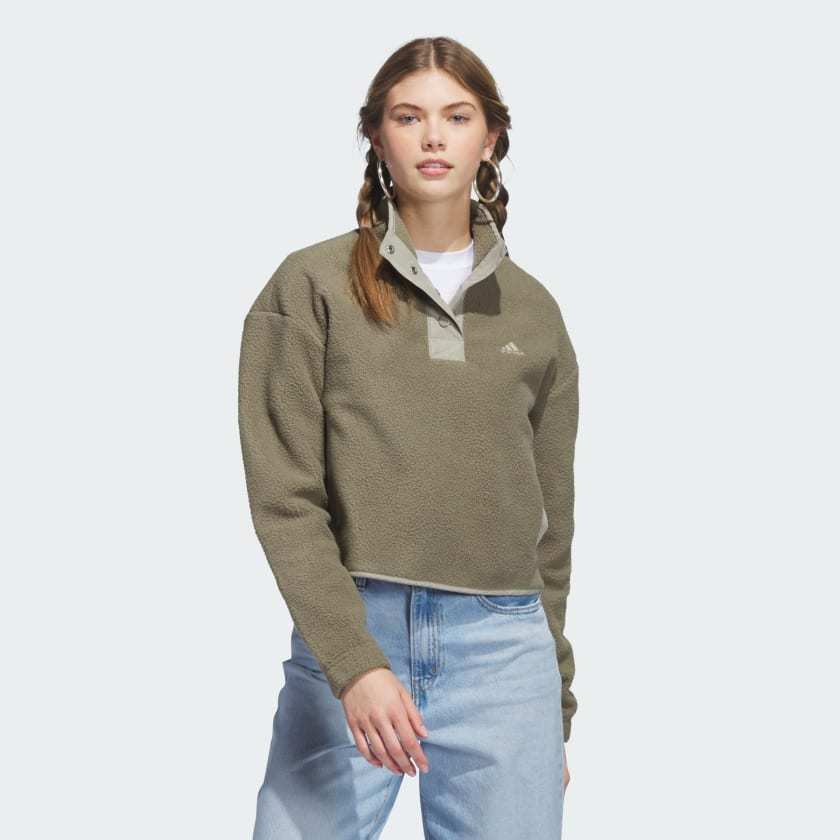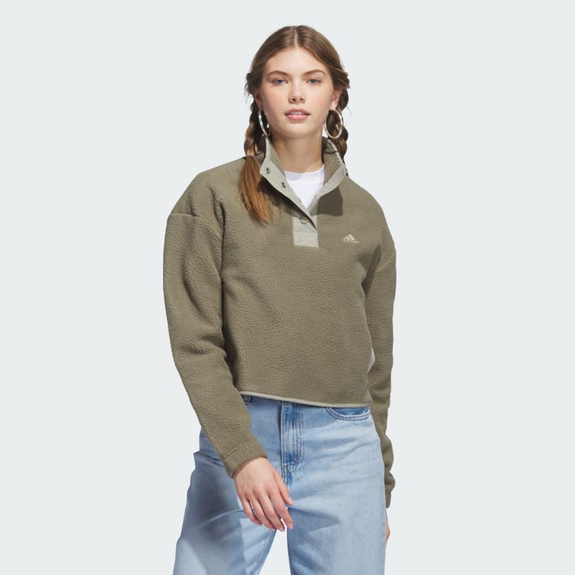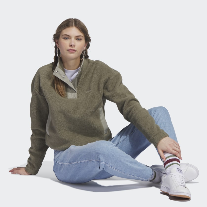 Hanging around the house or heading out for coffee, this adithtdas pullover is always a comfortable option. Made from soft fleece and finished with an adjustable stand-up collar, it adds a layer of warmth when the weather's on the chilly side. Pockets keep your phone and keys handy. A minimum of 70% of this product is a blend of recycled and renewable materials.