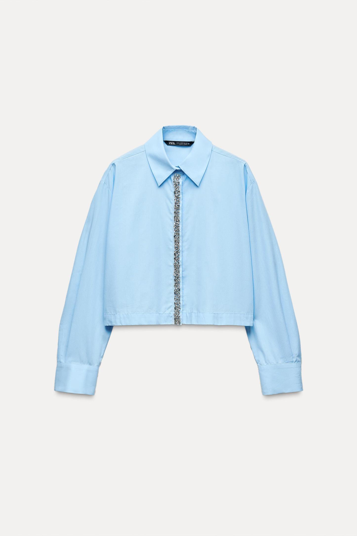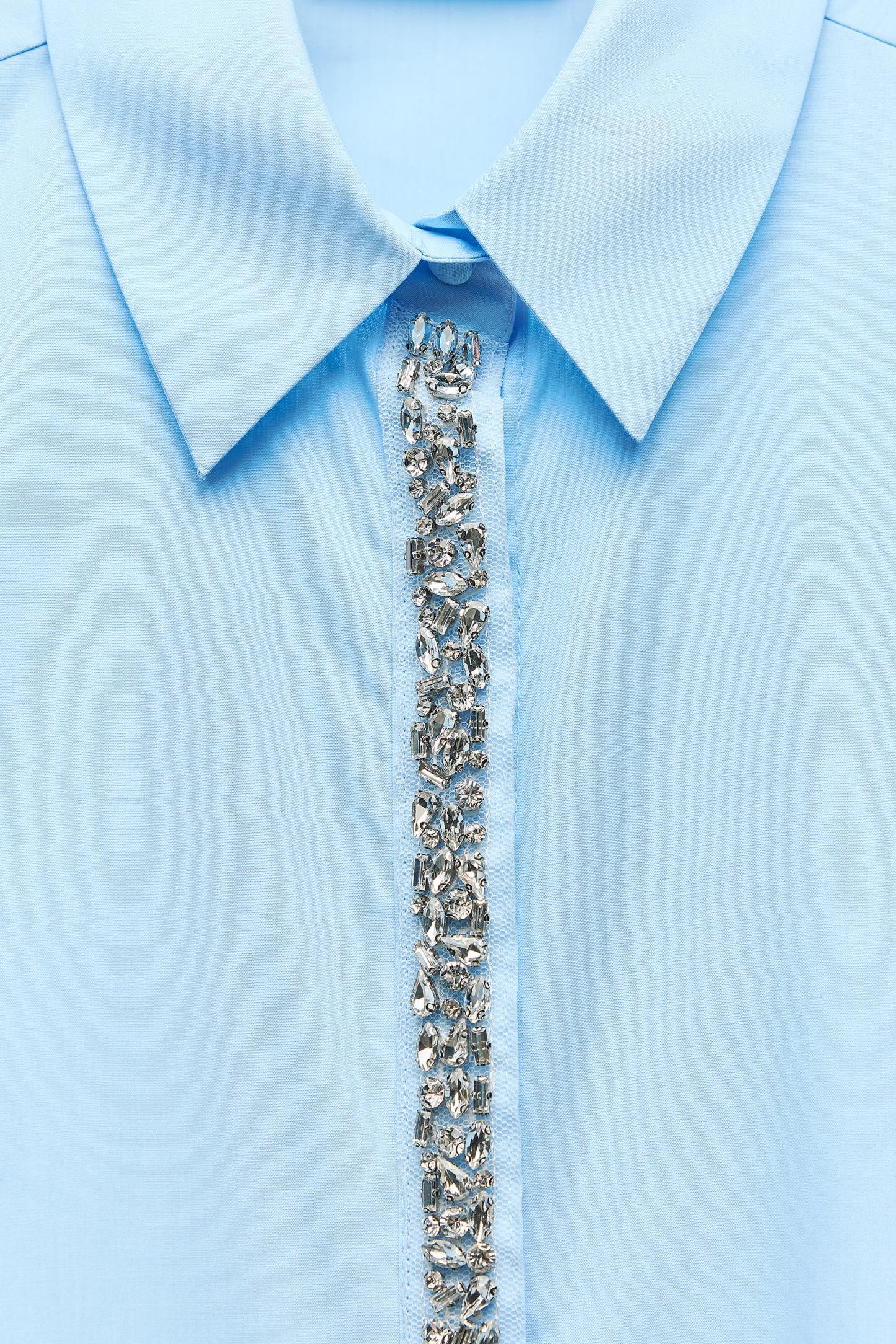 CROP POPLIN JEWEL SHIRT