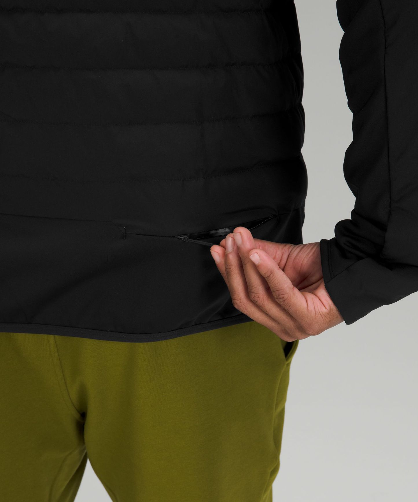 - Small zippered pocket in the back waistband