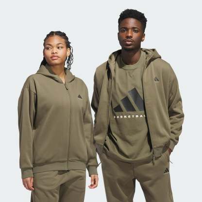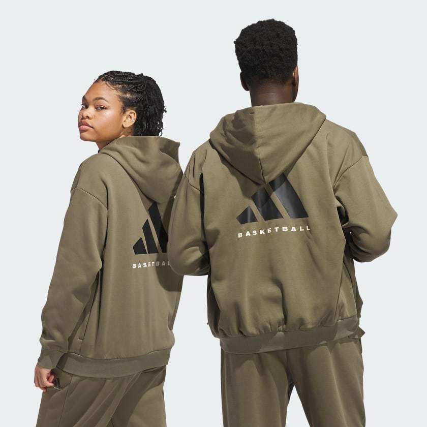 Elevate your on-court look in this adithtdas Basketball Full-Zip Hoodie. The loose fit offers plenty of room through the shoulders for outstanding movement on the court. The polyester and cotton build provides comfort and durability that lasts all season long. This sweatshirt was made using UNITEFIT - an all-gender fit system that was created with a spectrum of sizes, genders and forms in mind.