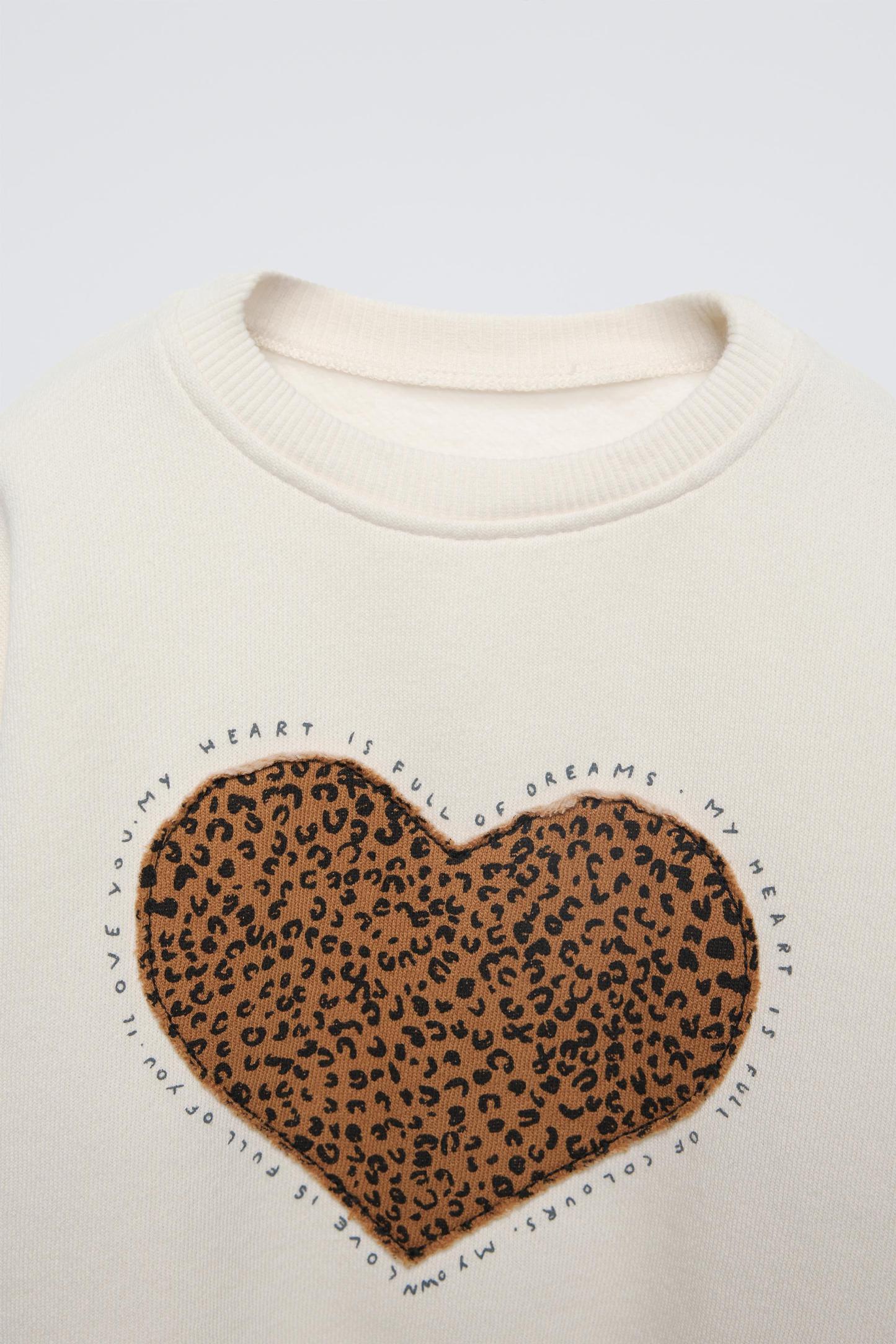 ANIMAL PRINT HEART SWEATSHIRT
