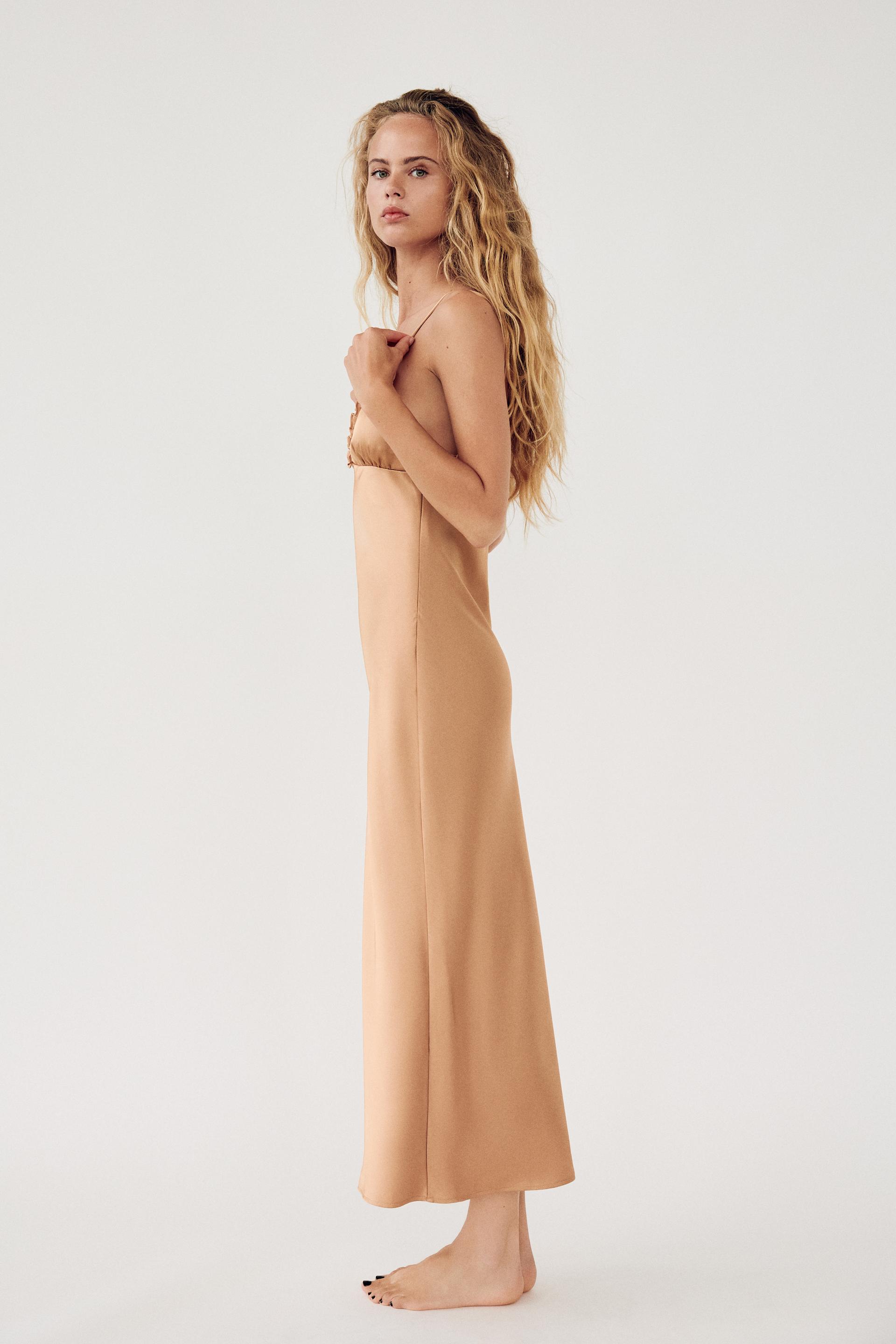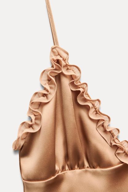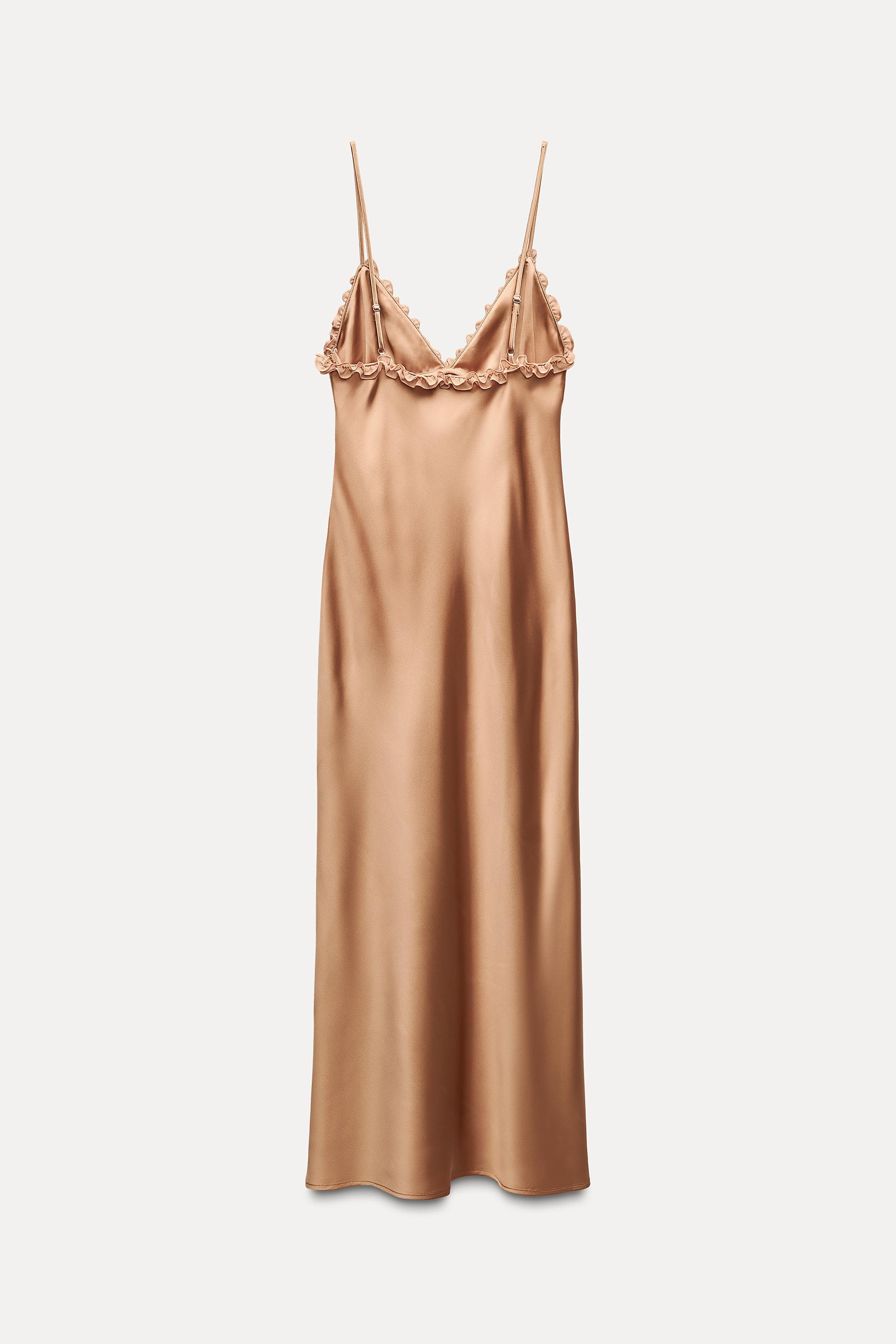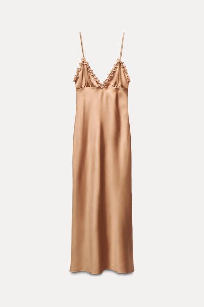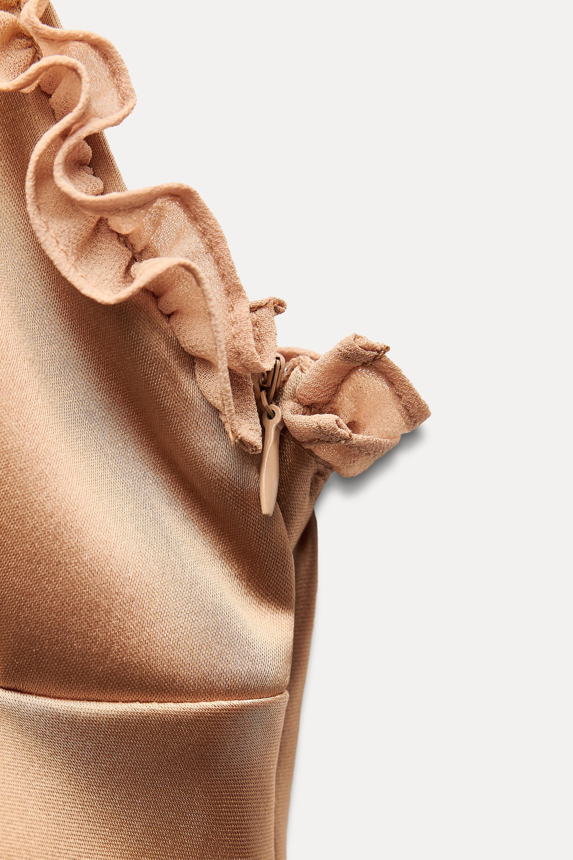 CONTRASTING RUFFLES SATIN EFFECT DRESS